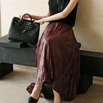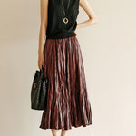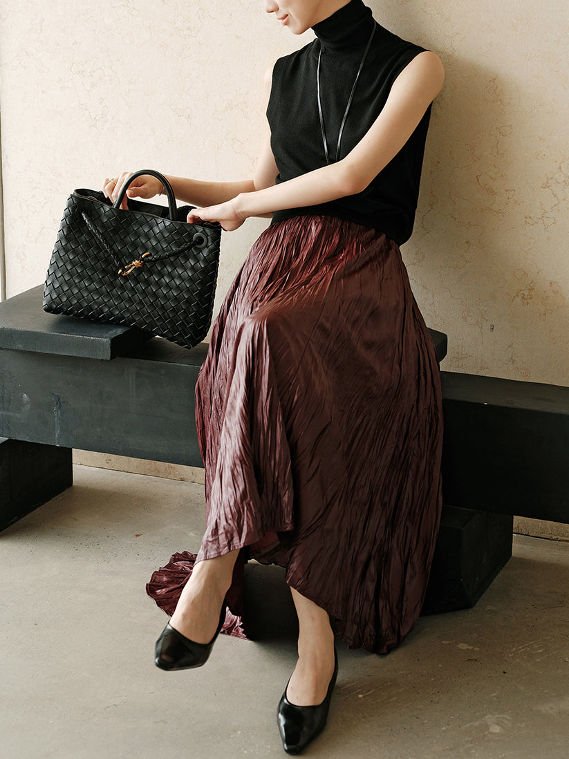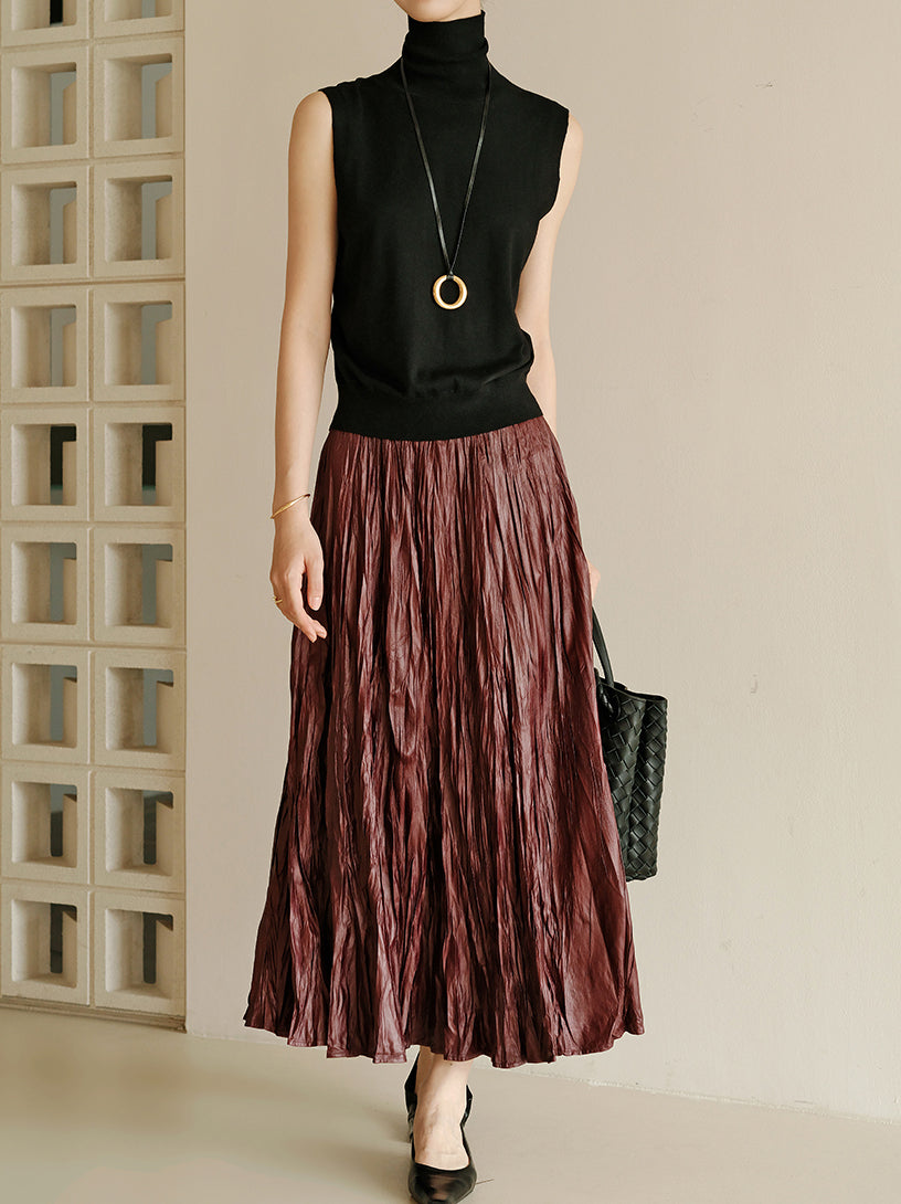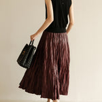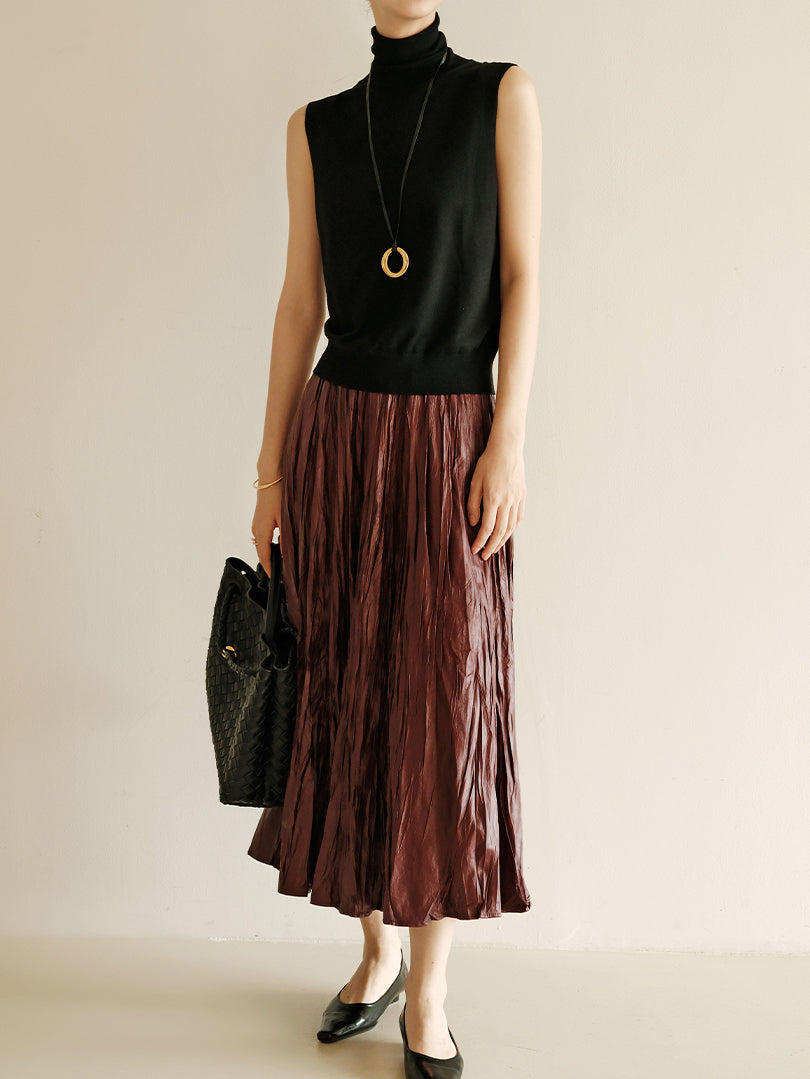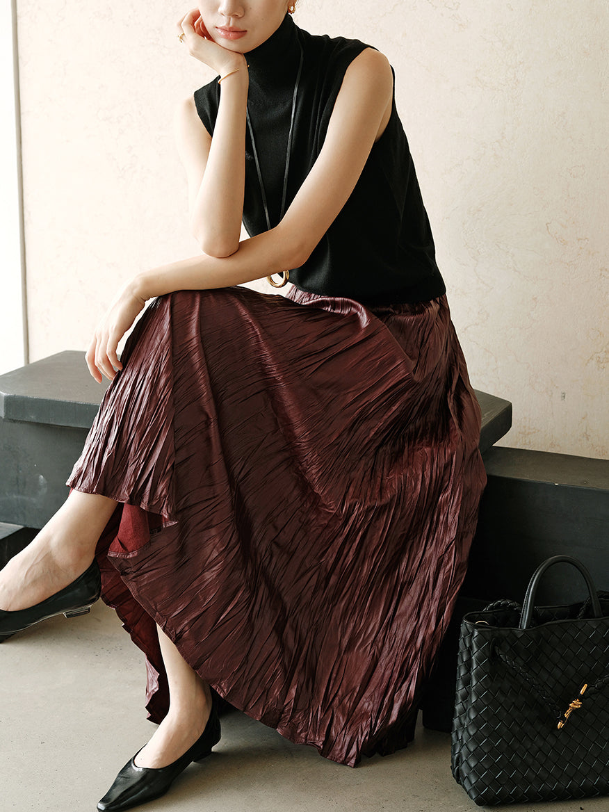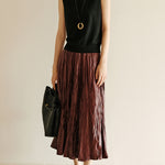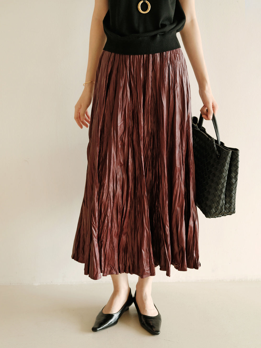A washer pleated skirt with just the right amount of sheen for a beautiful look.