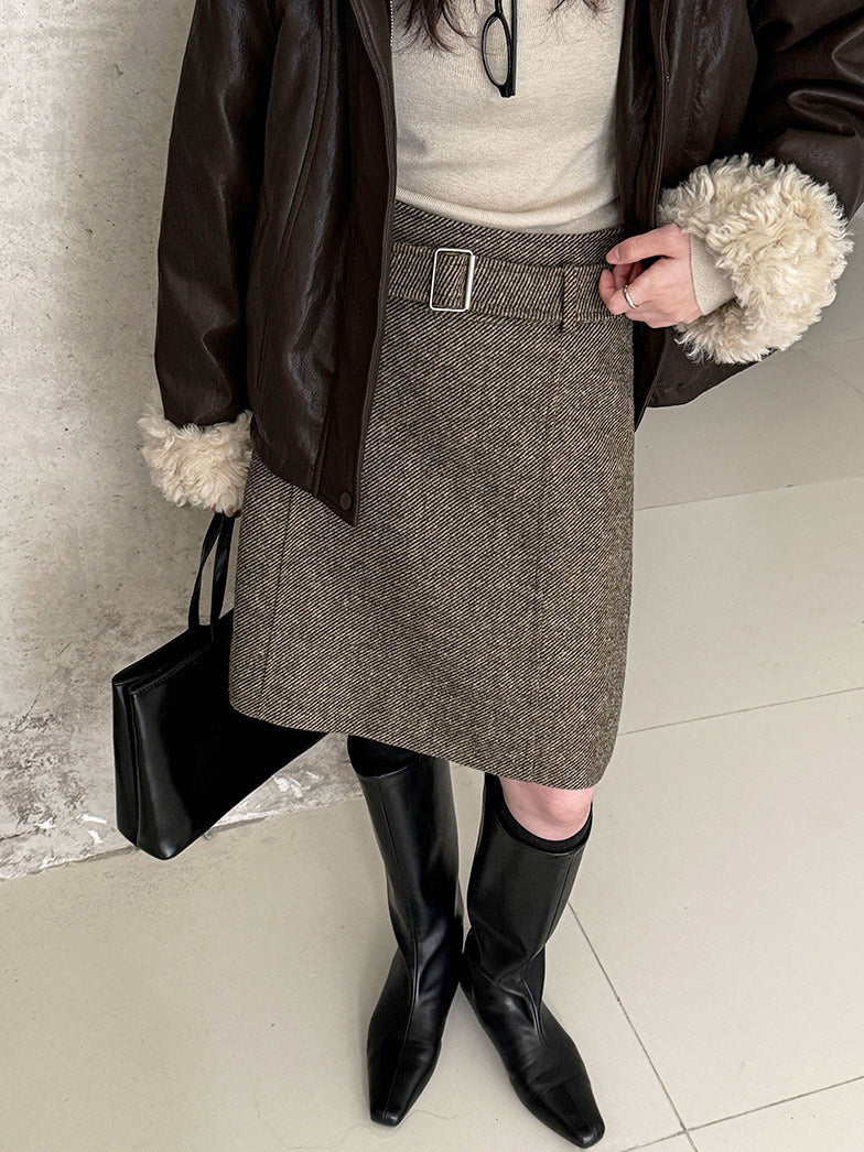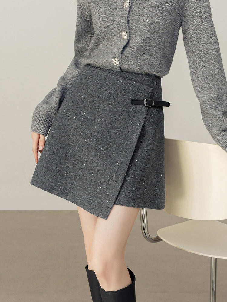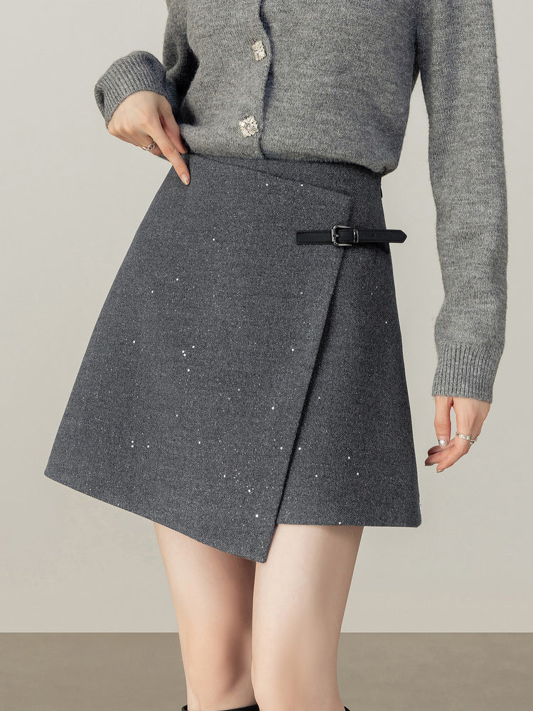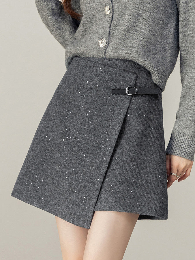 Sequined Wool Tweed Pleated Skirt (Can be coordinated)