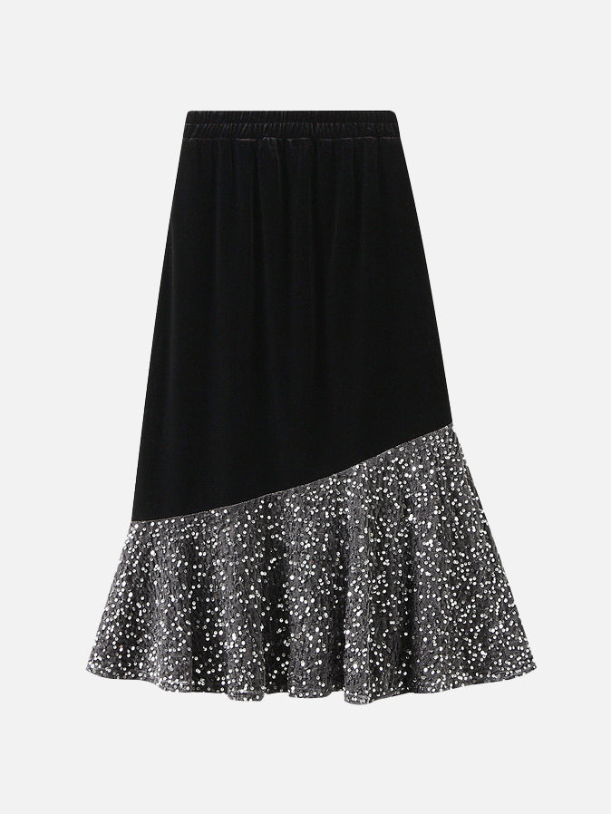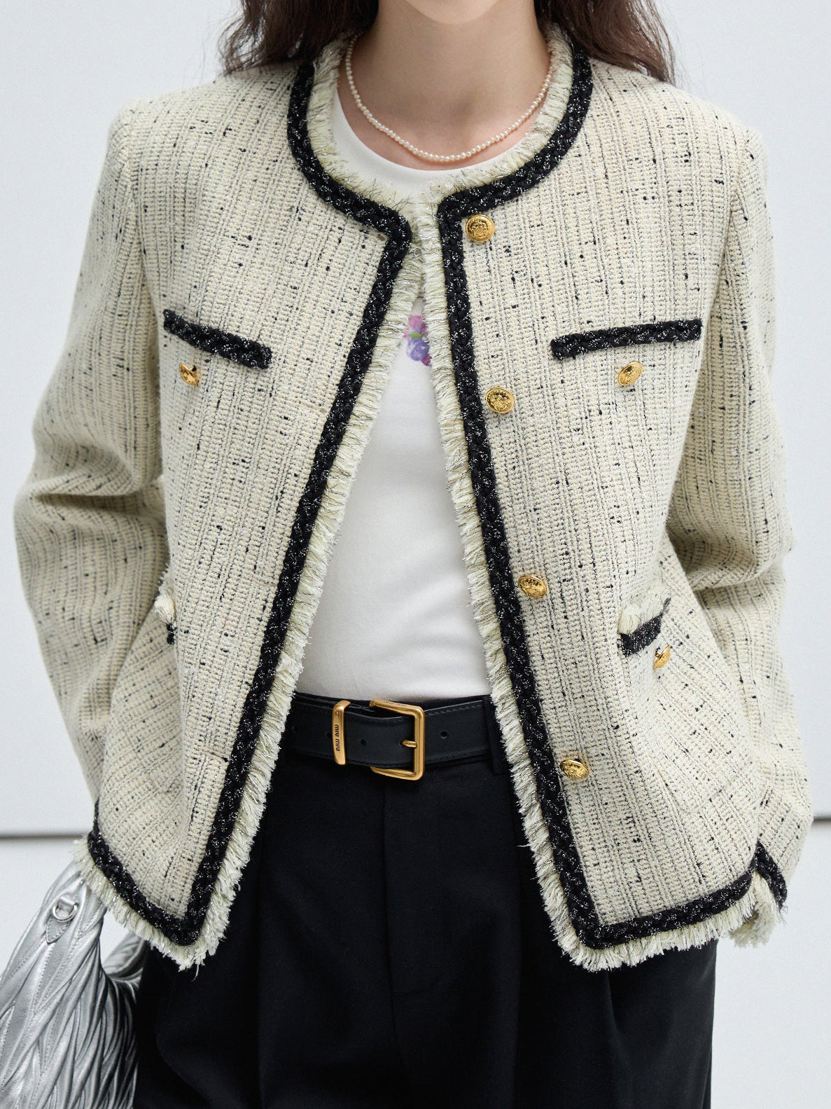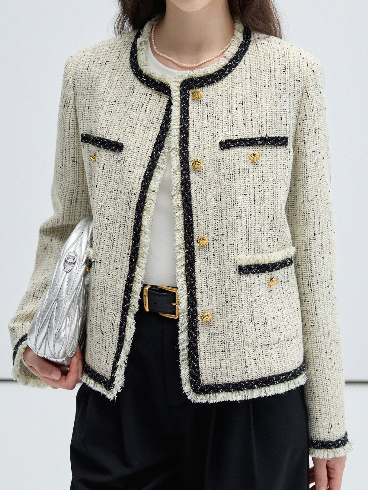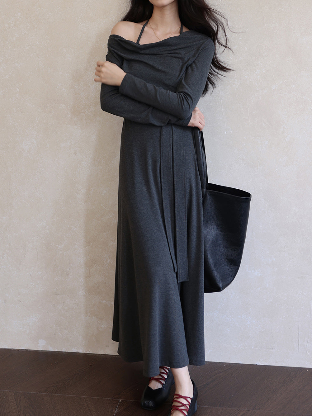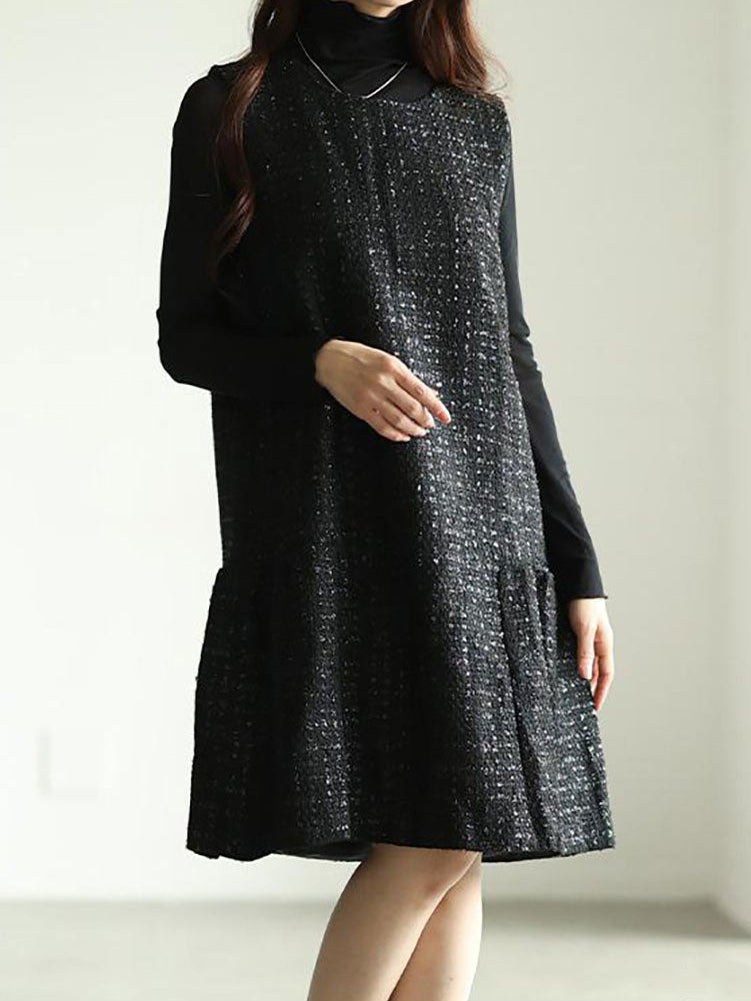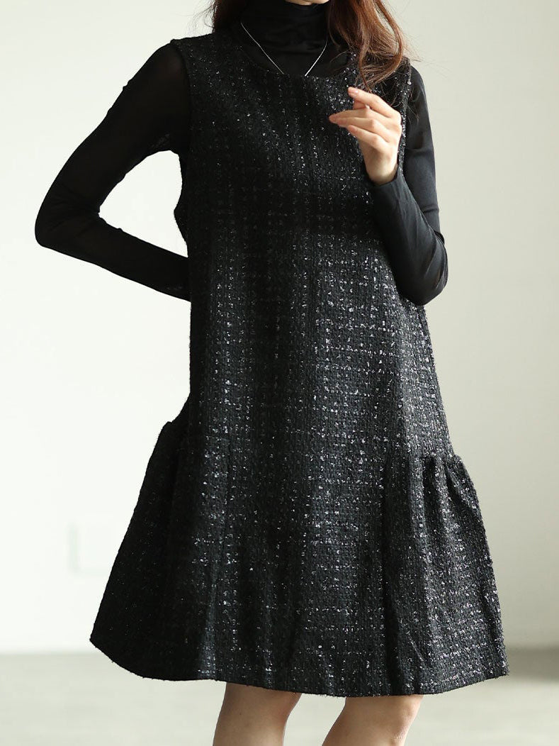 Color-coordinated fringe tweed mermaid long dress (2 colors)