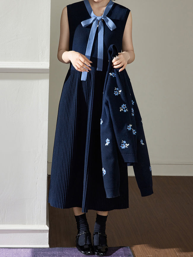 Color-coordinated ribbon sleeveless dress (can be paired)