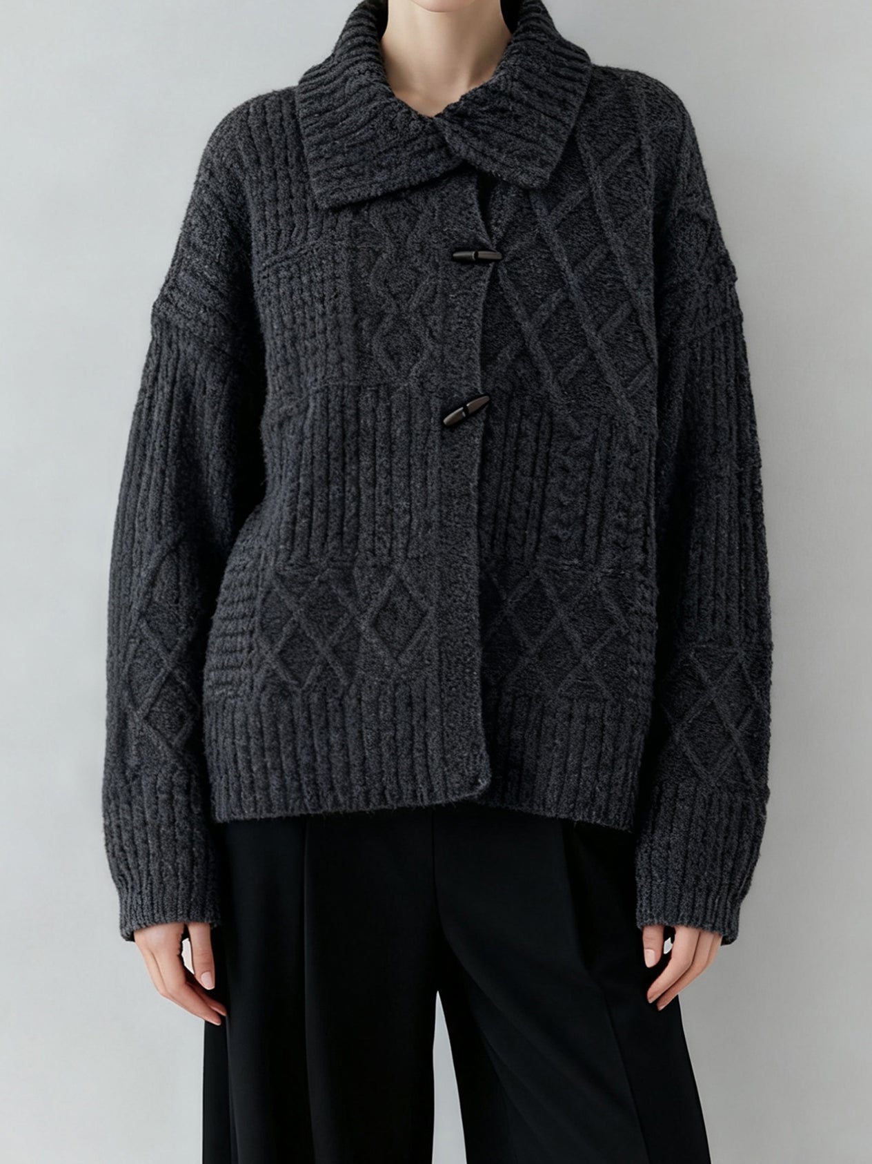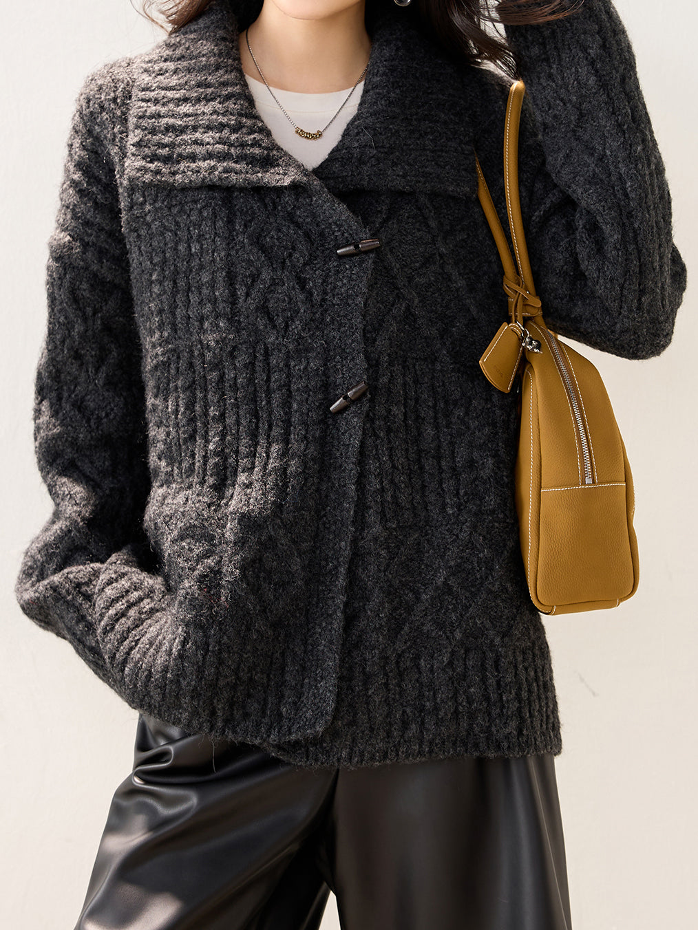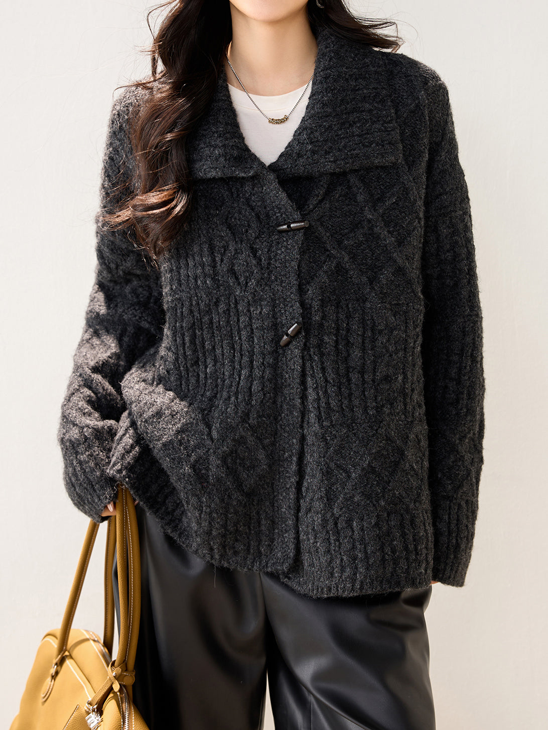 This Aran knit cardigan is stylish and stylish.