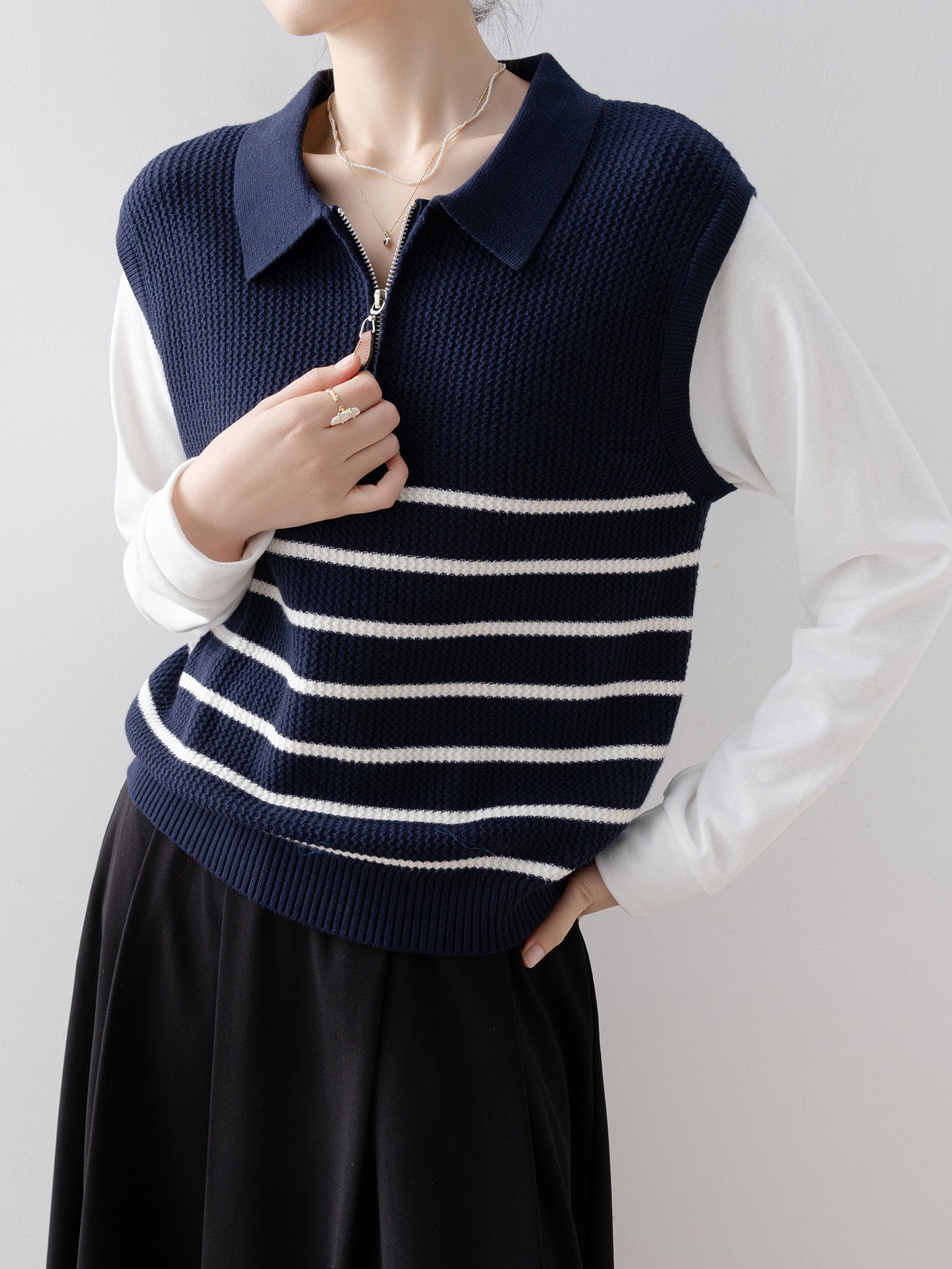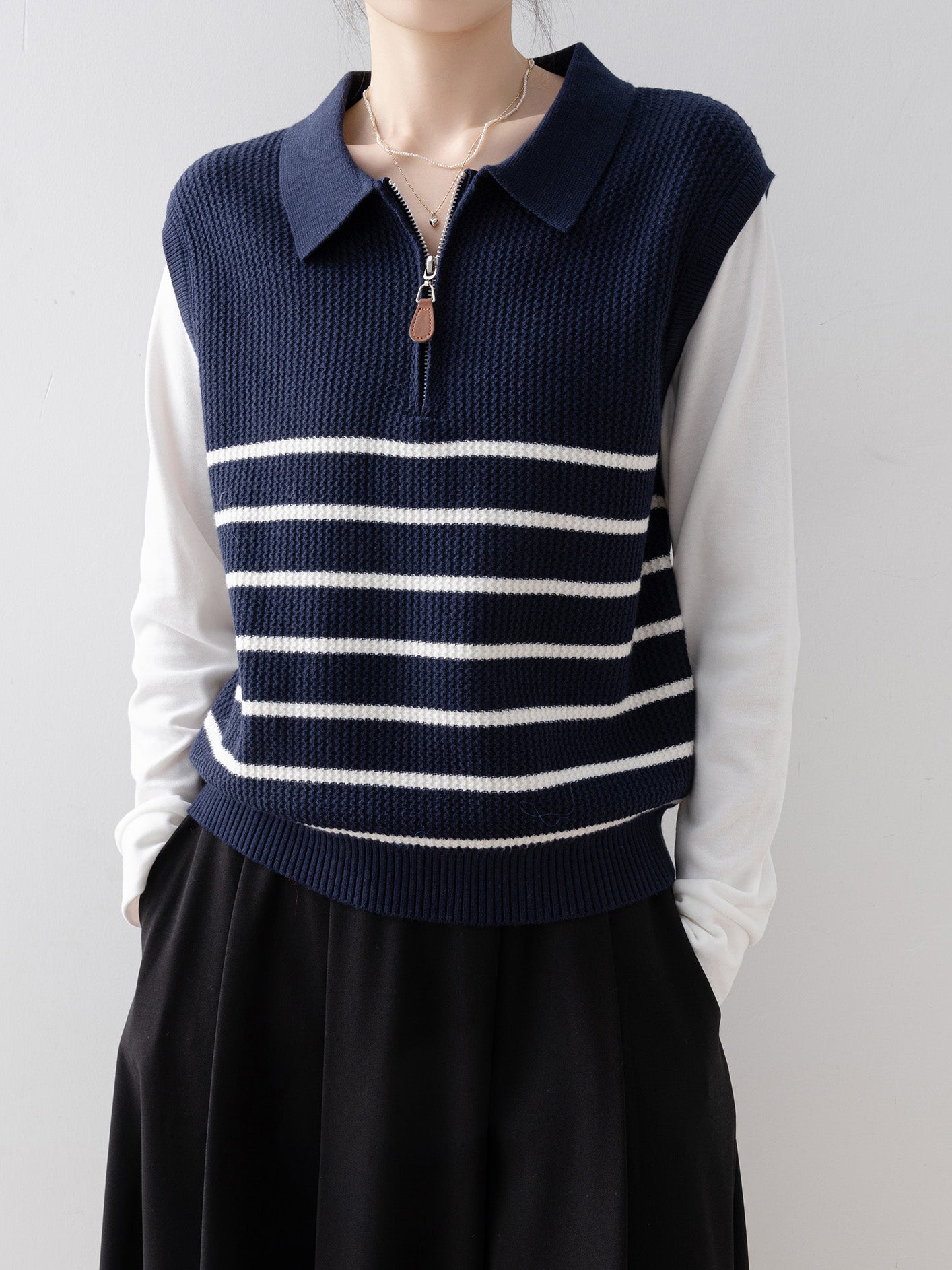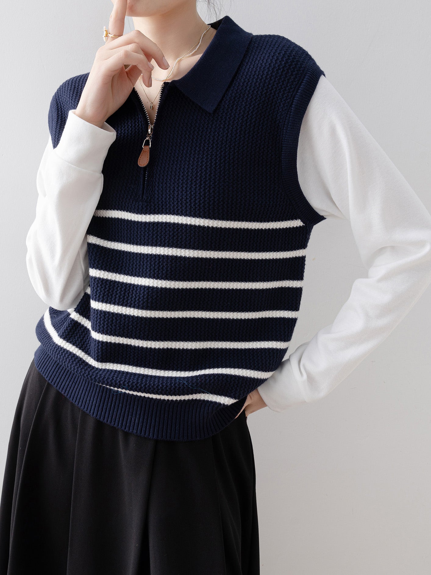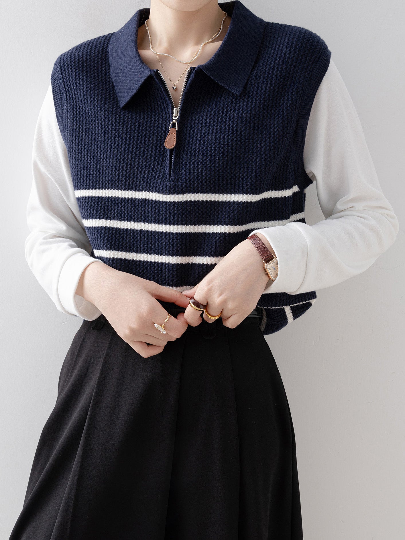 A docking design striped knit that gives a simple yet sophisticated impression.