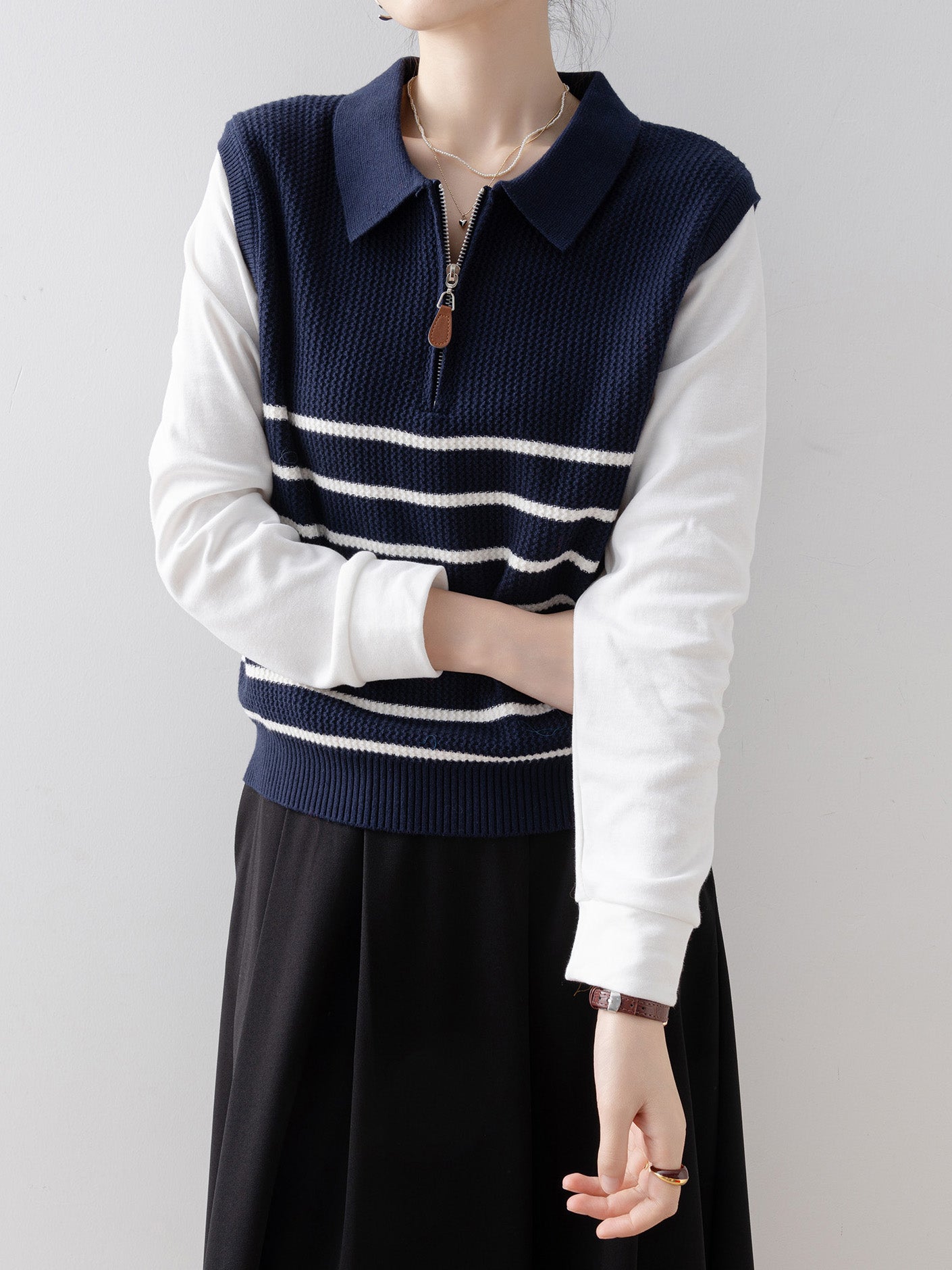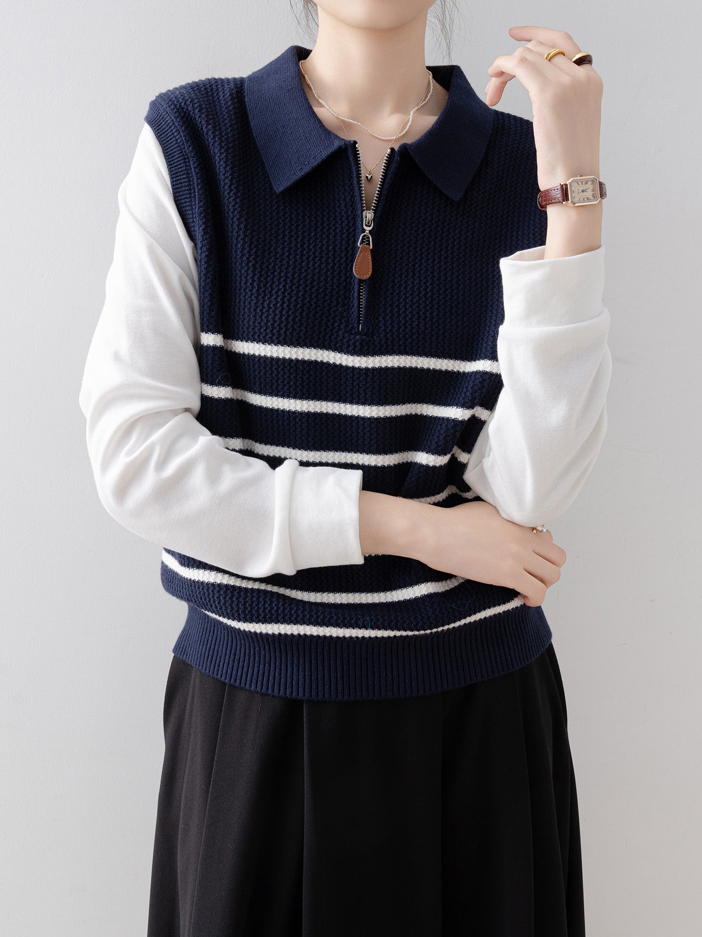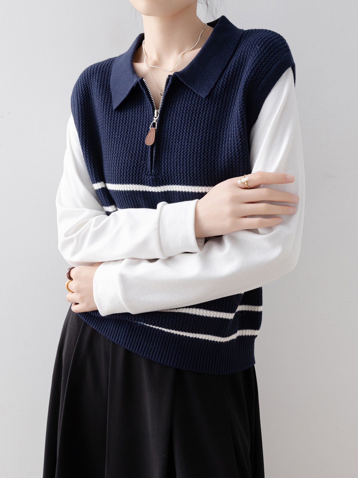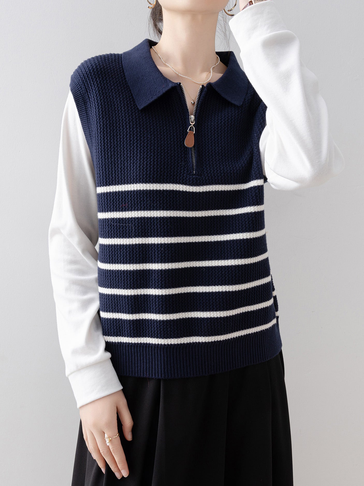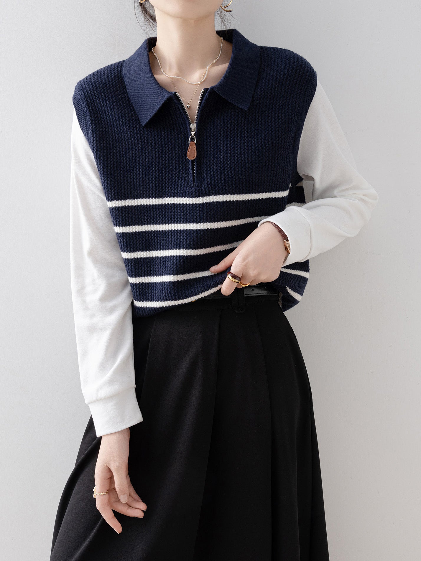 A docking design striped knit that gives a simple yet sophisticated impression.