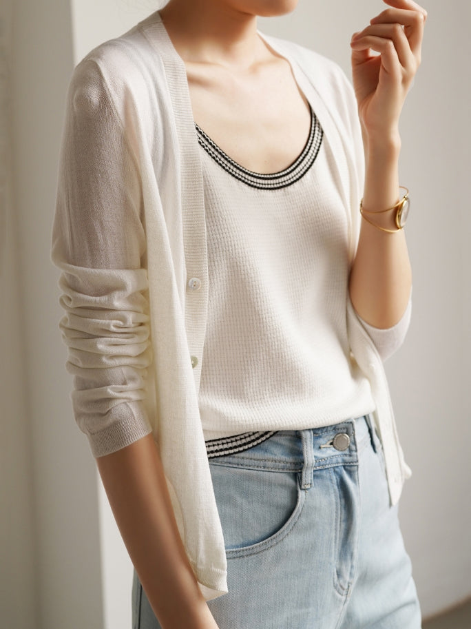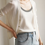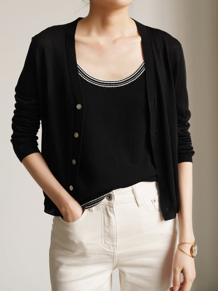 - The color scheme design reduces the feeling of it being an inner layer, and it is recommended to wear it as a main top by combining it with a shirt, sheer blouson, jacket, etc.