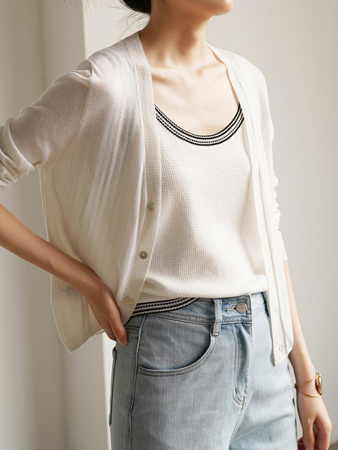 ☆The chic color-coordinated stitching on the neckline and armholes adds a nice accent.