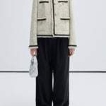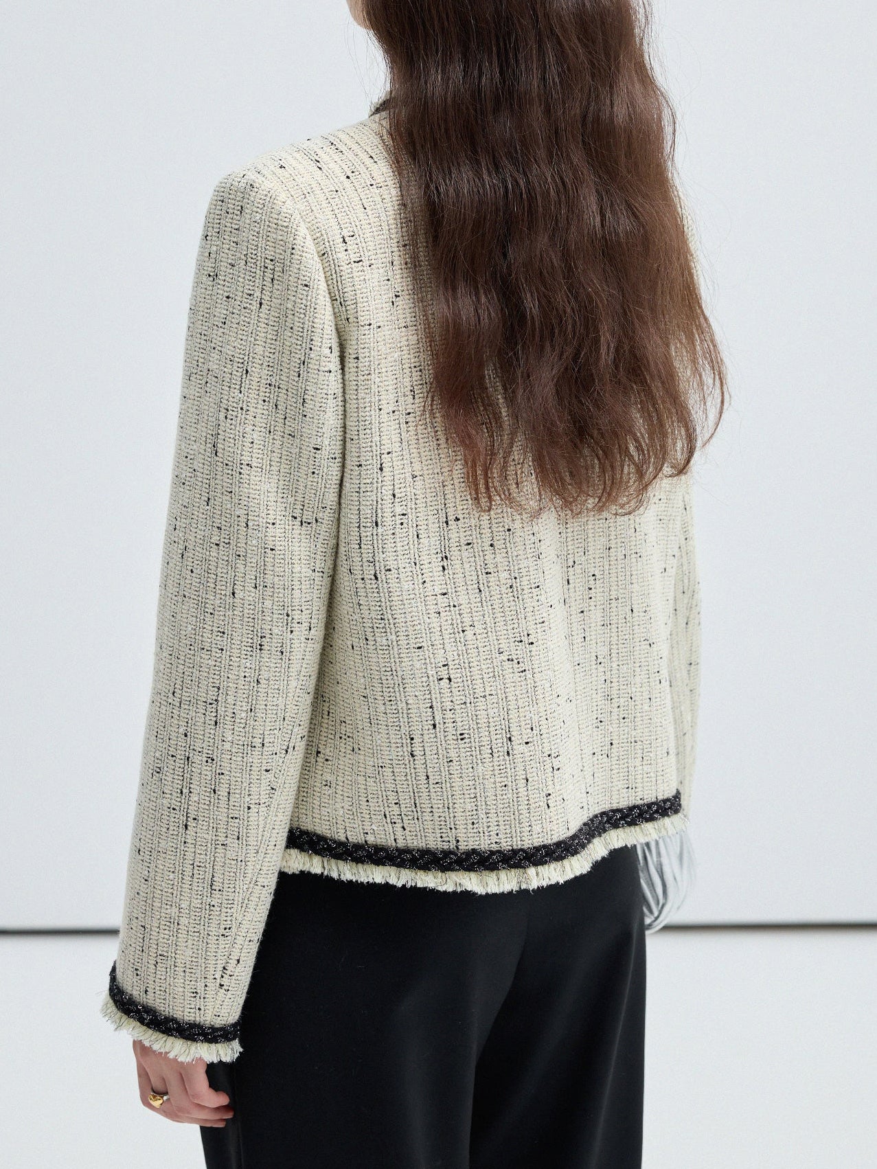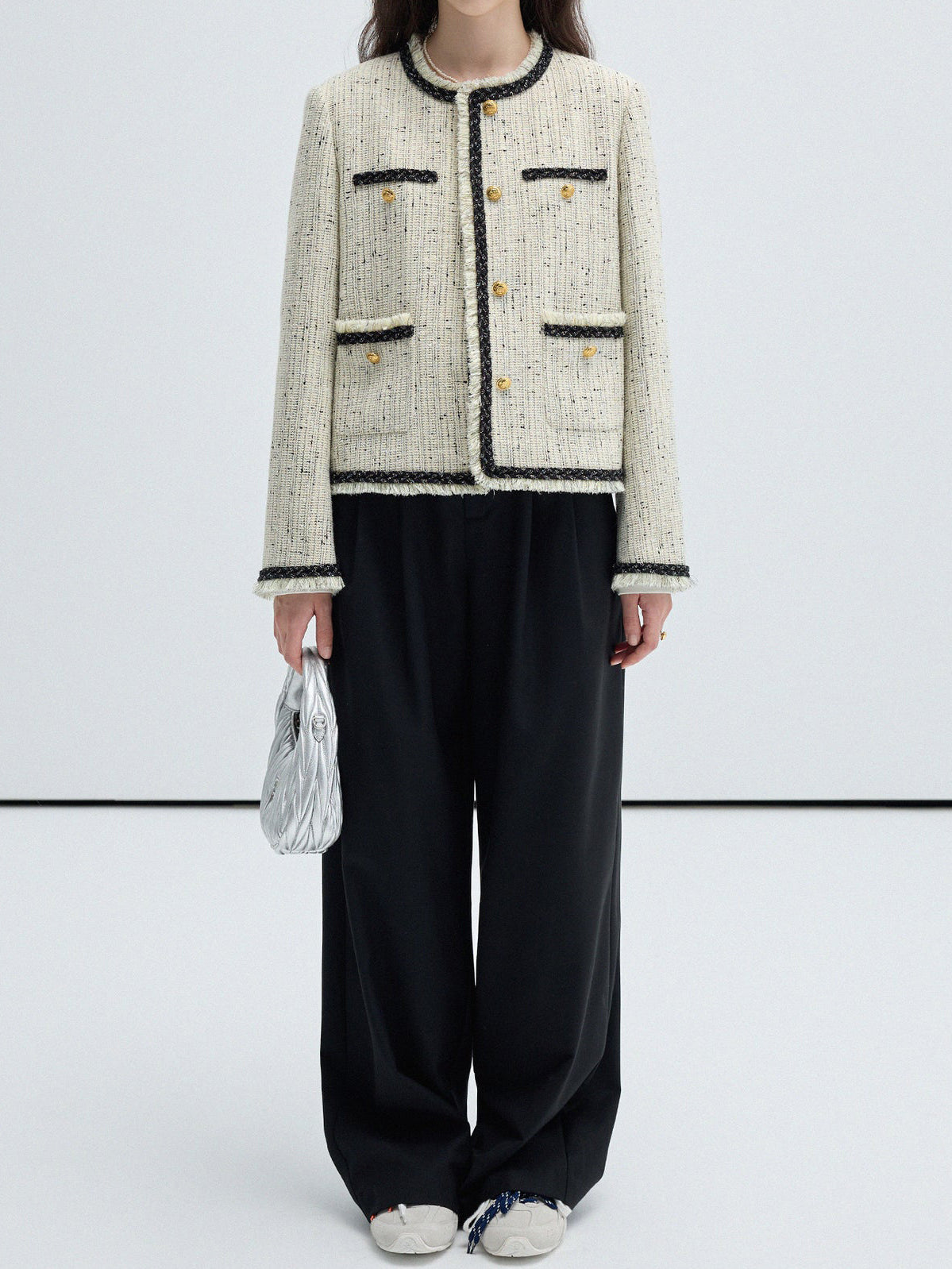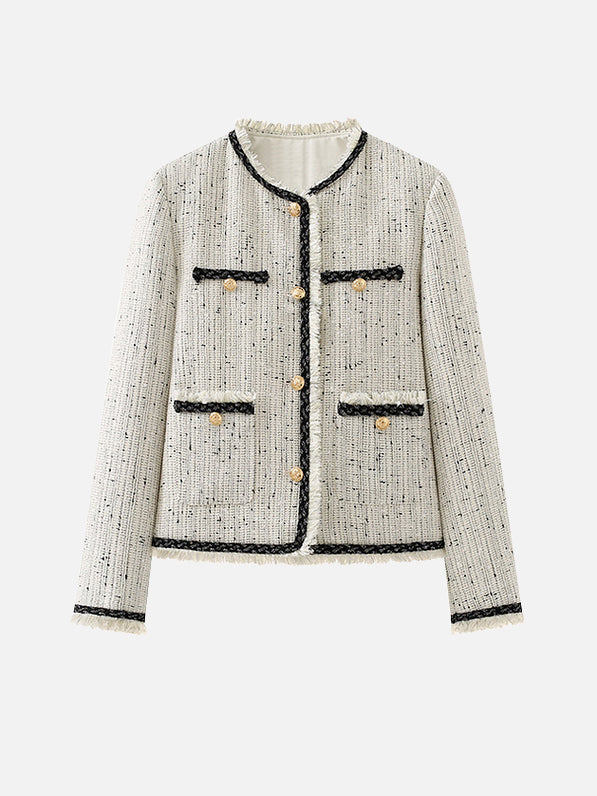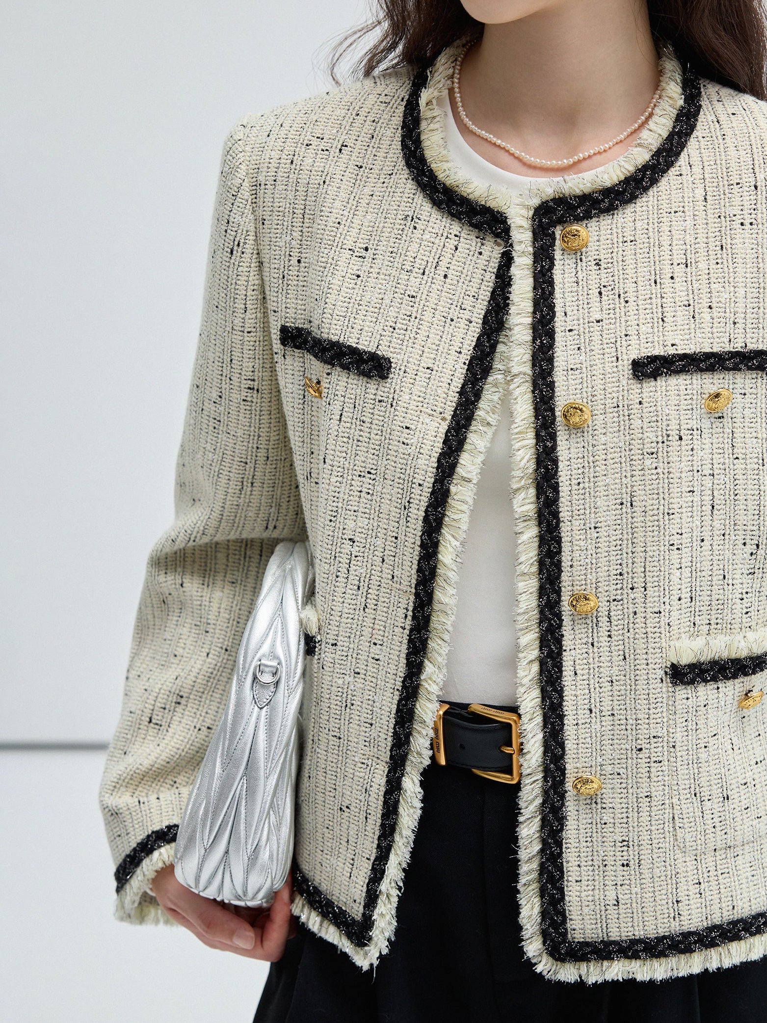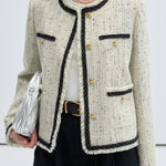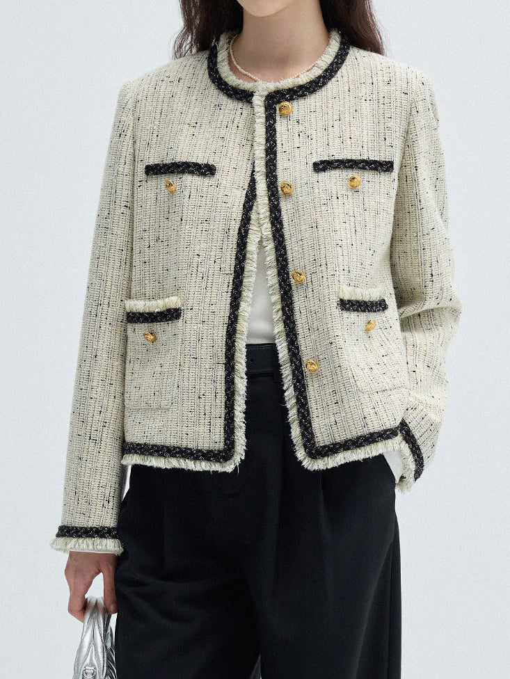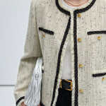 Made from elegant tweed material, the design combines luxury and trendiness.