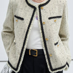 ☆Fringe details around the collar, cuffs and pockets add a touch of glamour.