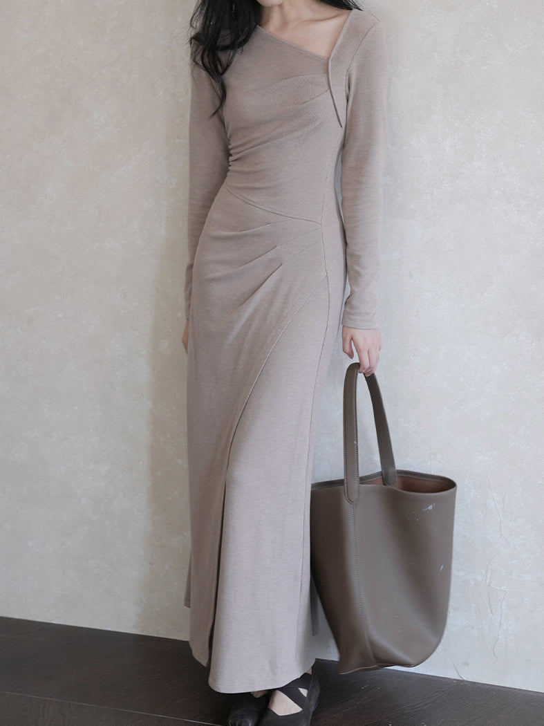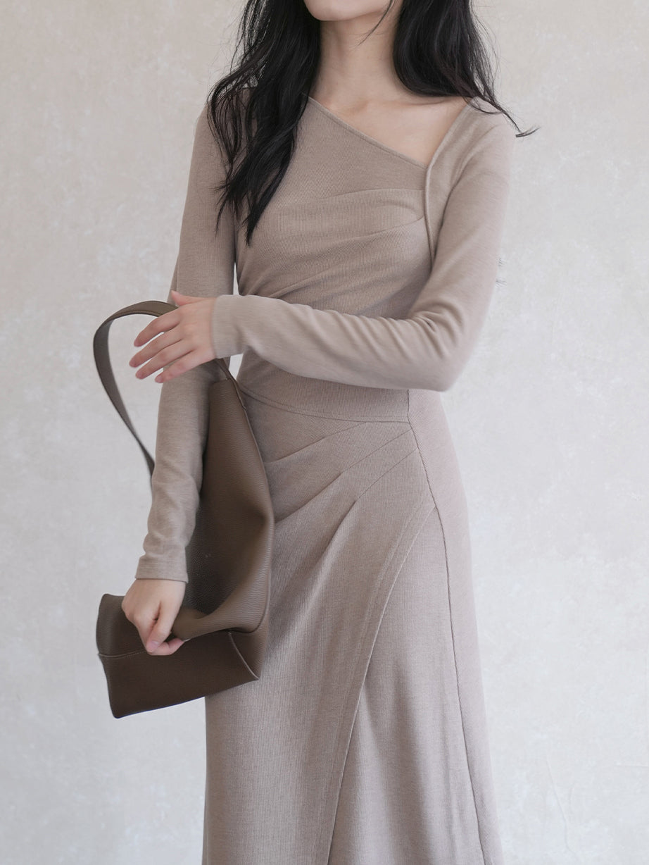 [Asymmetrical design that beautifully accentuates the décolleté line]