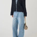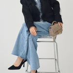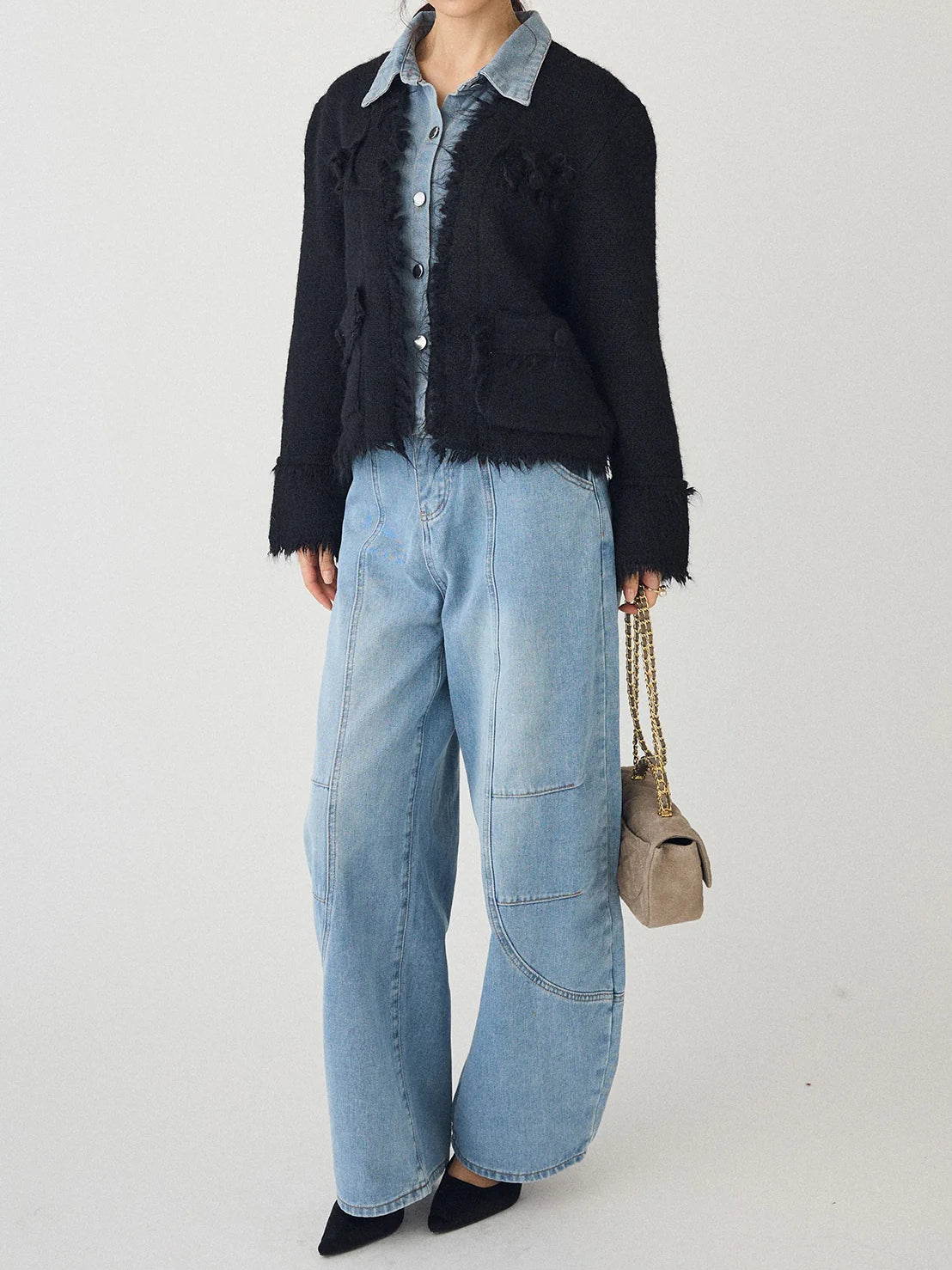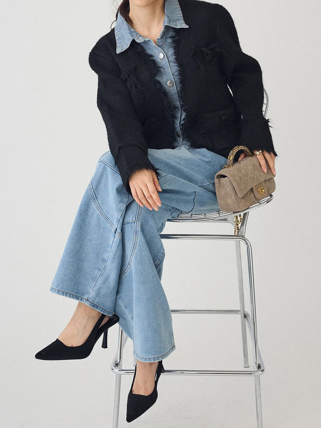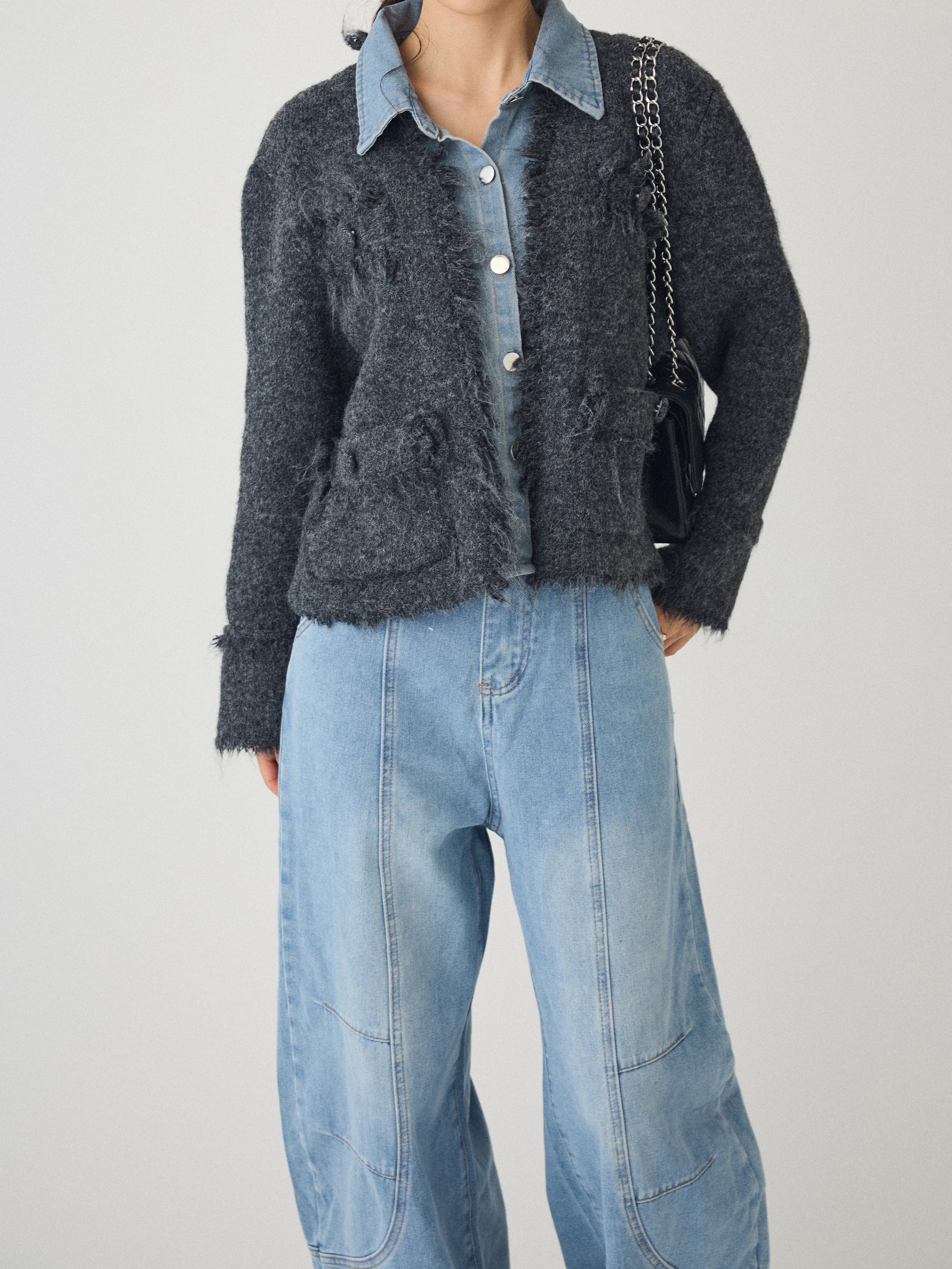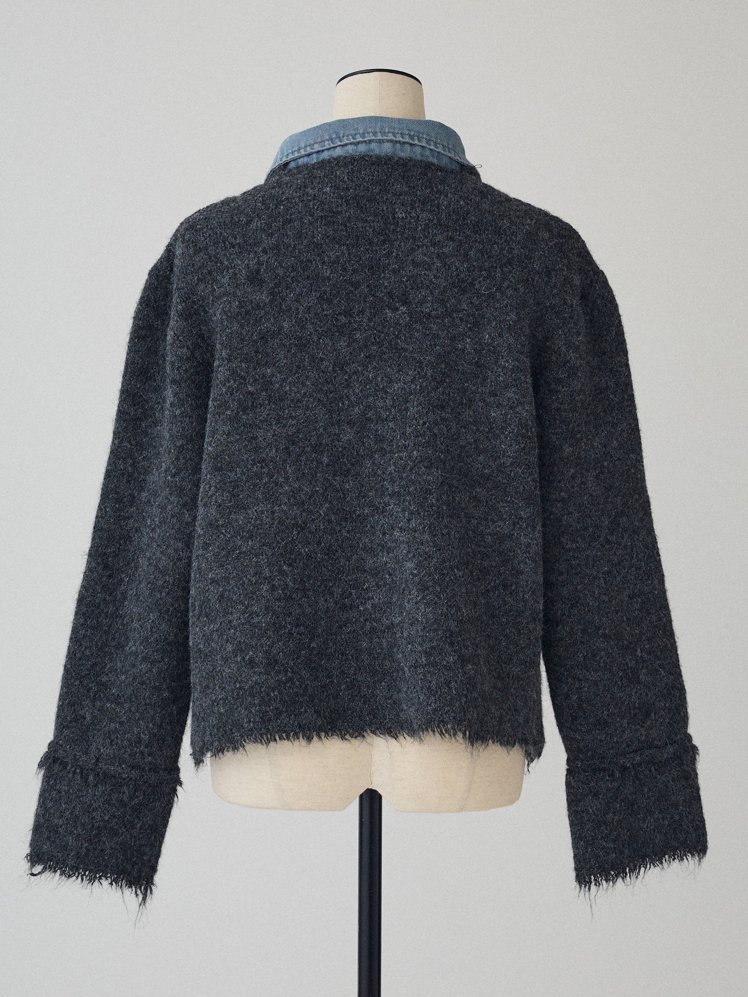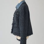 Denim shirt docking tweed cardigan (2 colors)