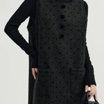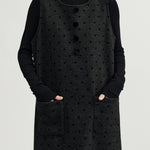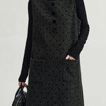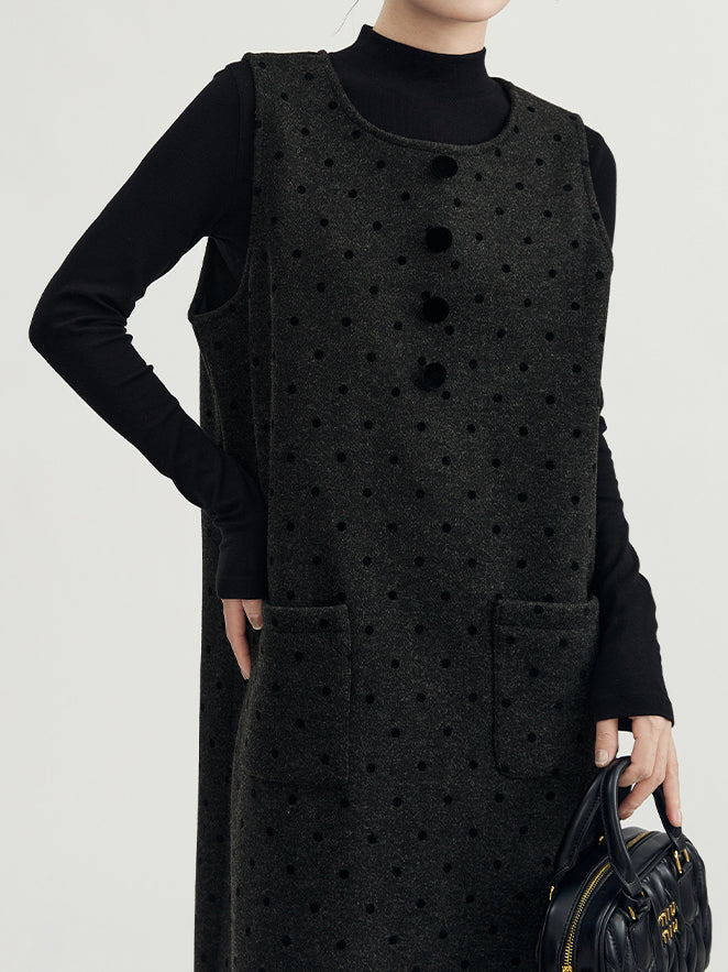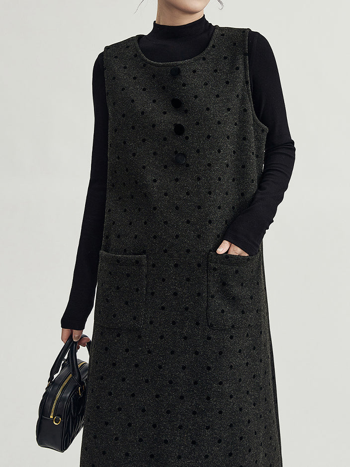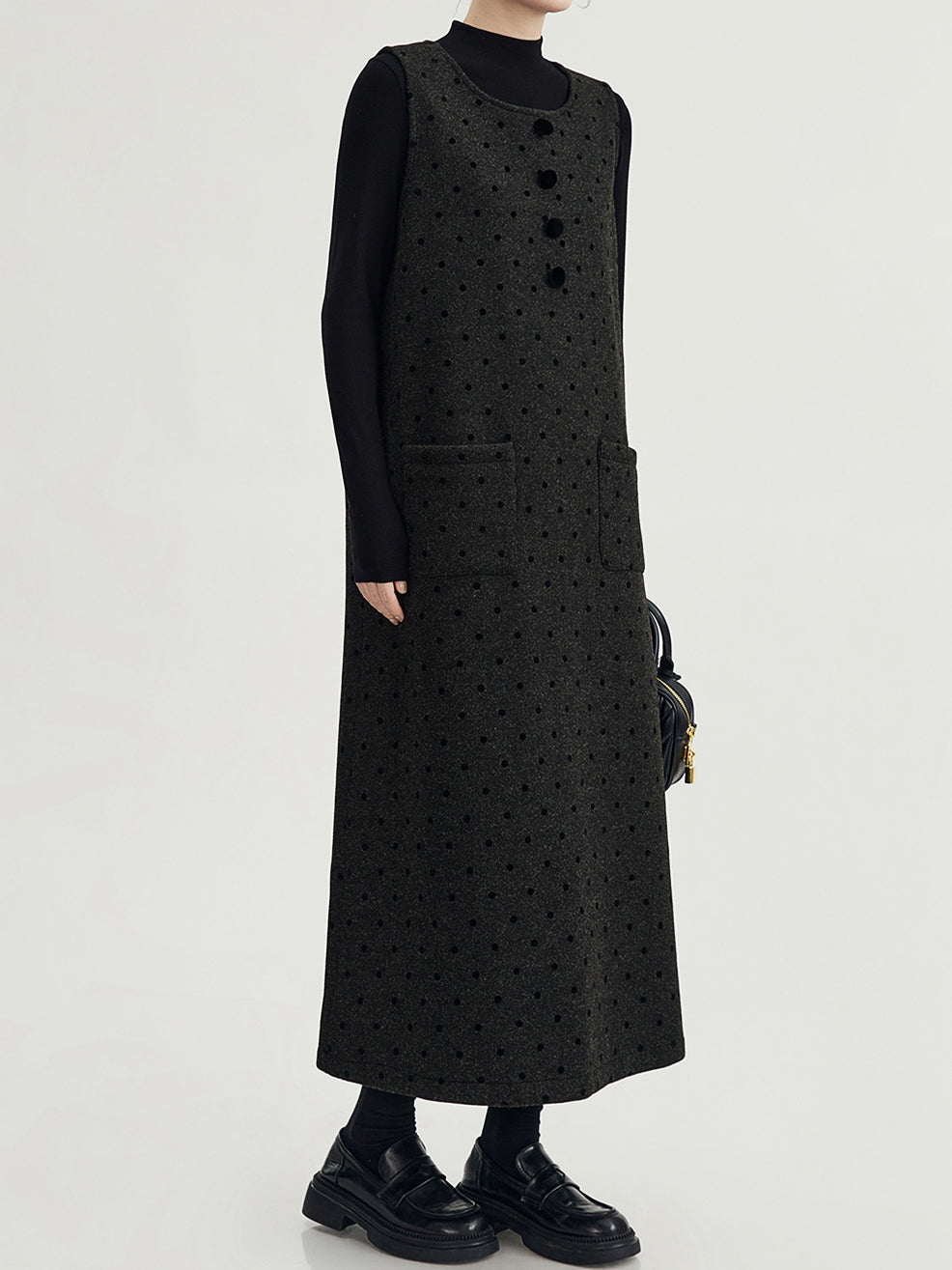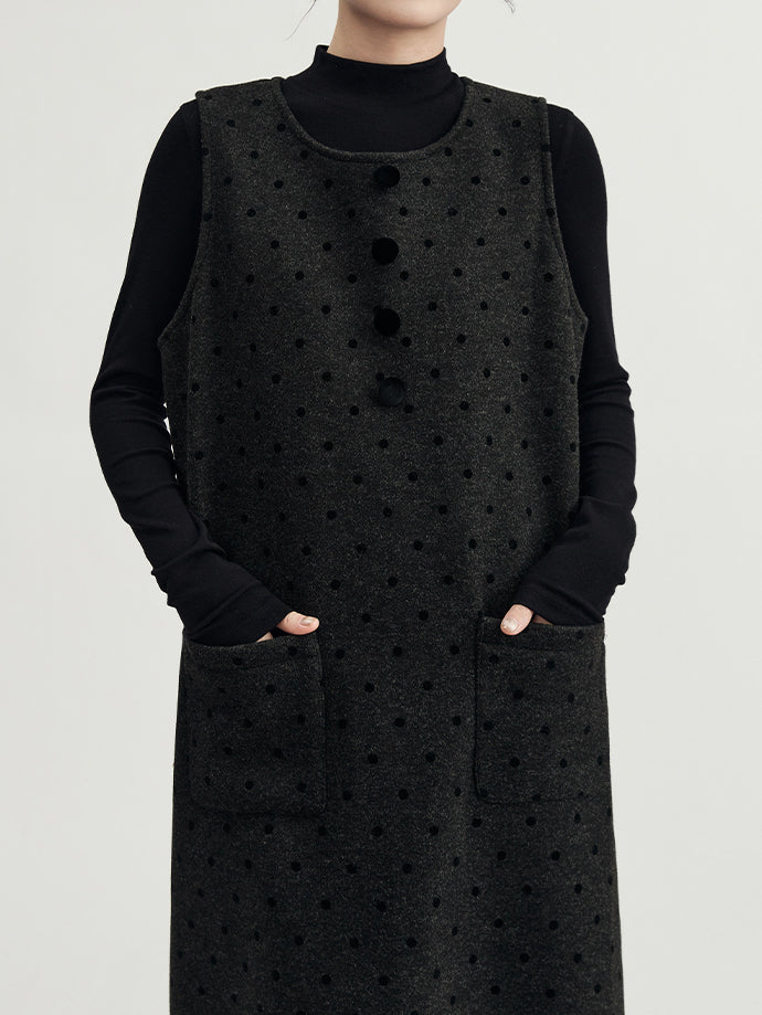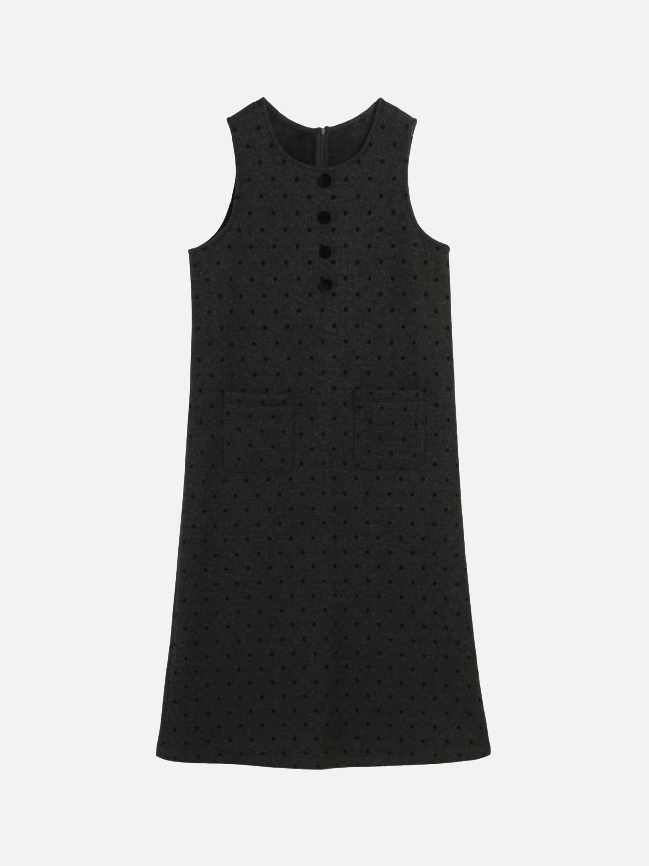 A cute and grown-up flocked dot tank dress that looks great on its own.