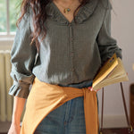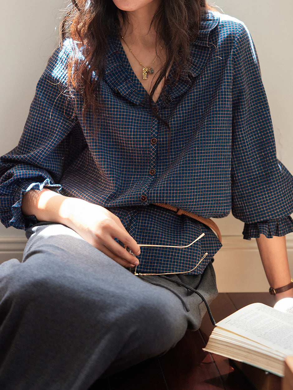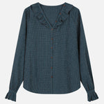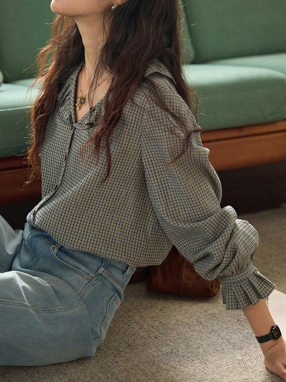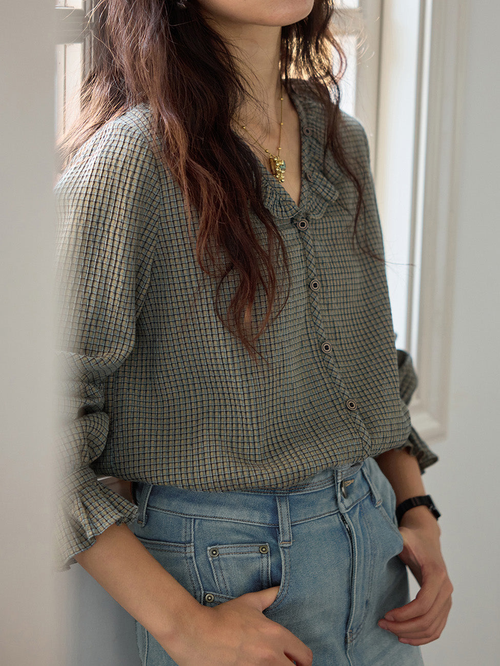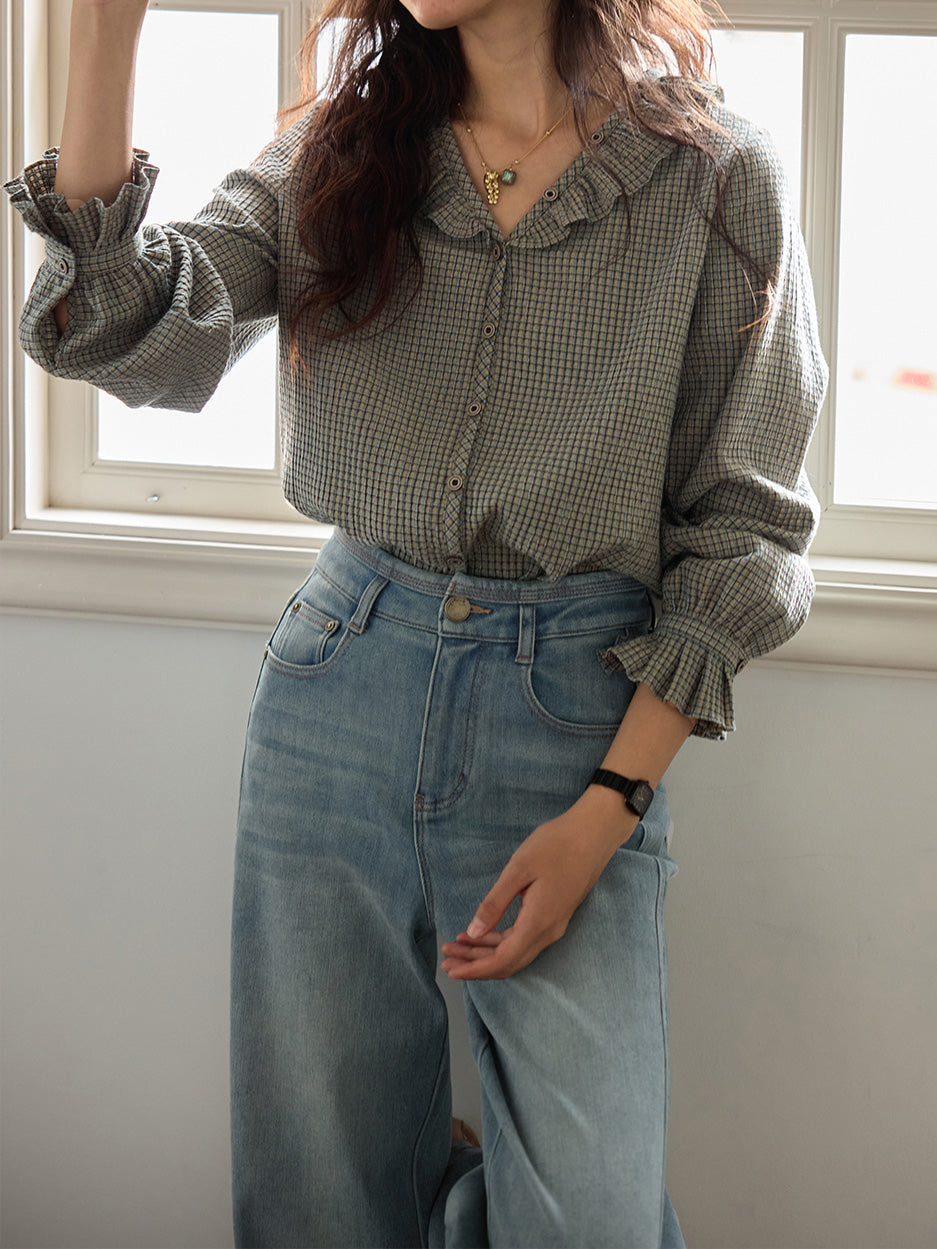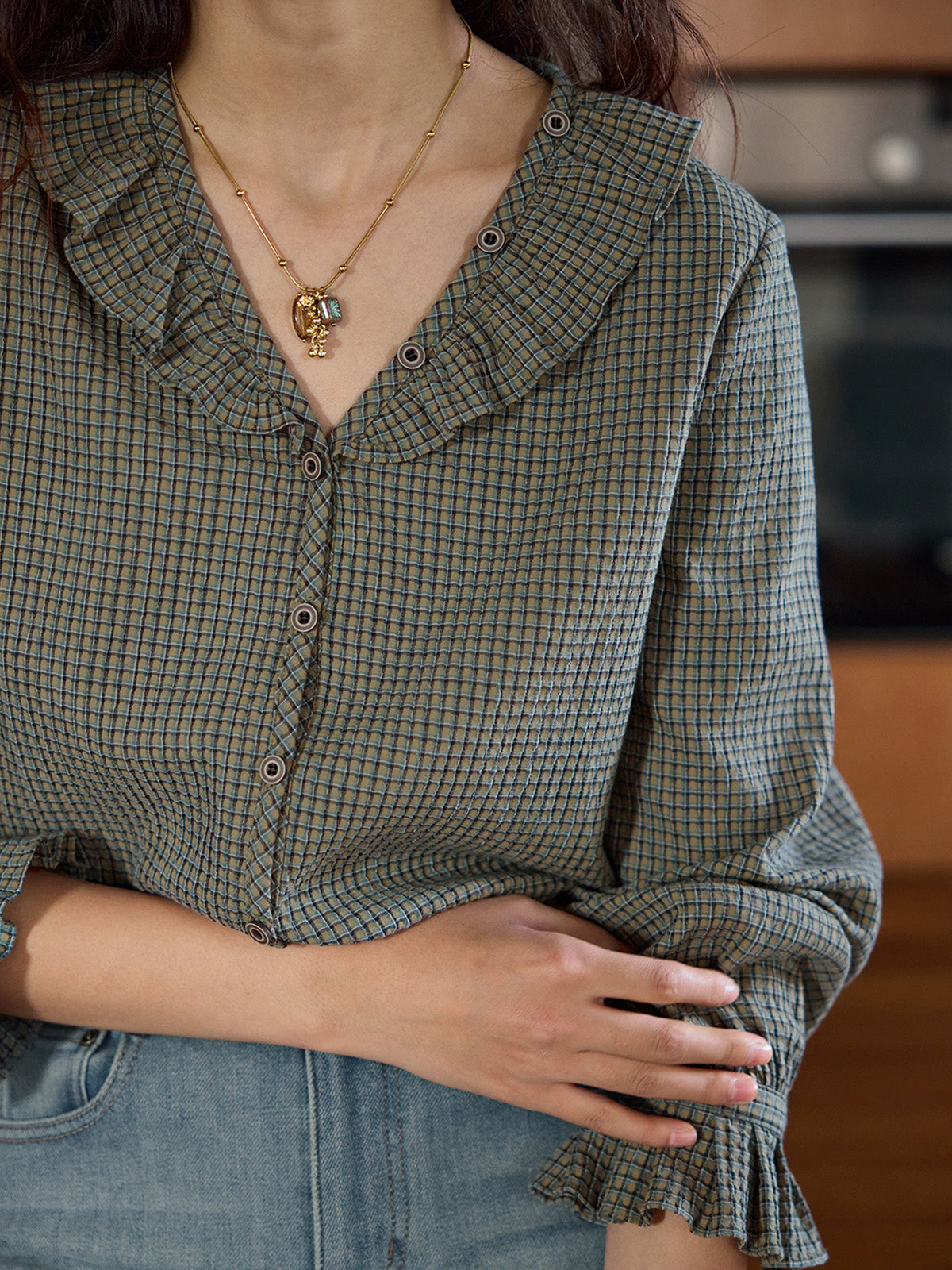 A ruffle neck blouse that adds a touch of glamour to your face.