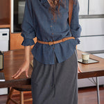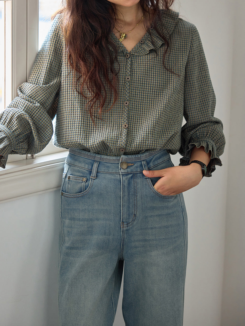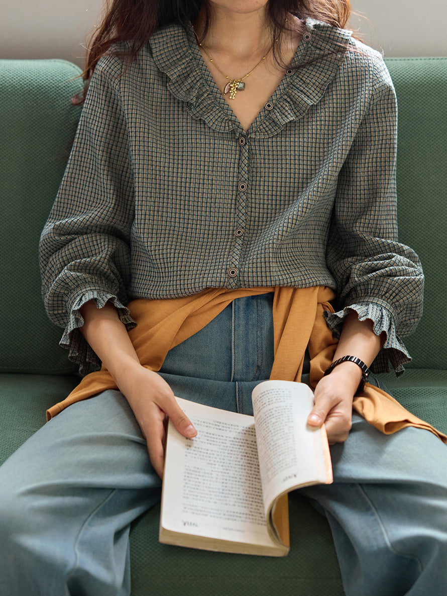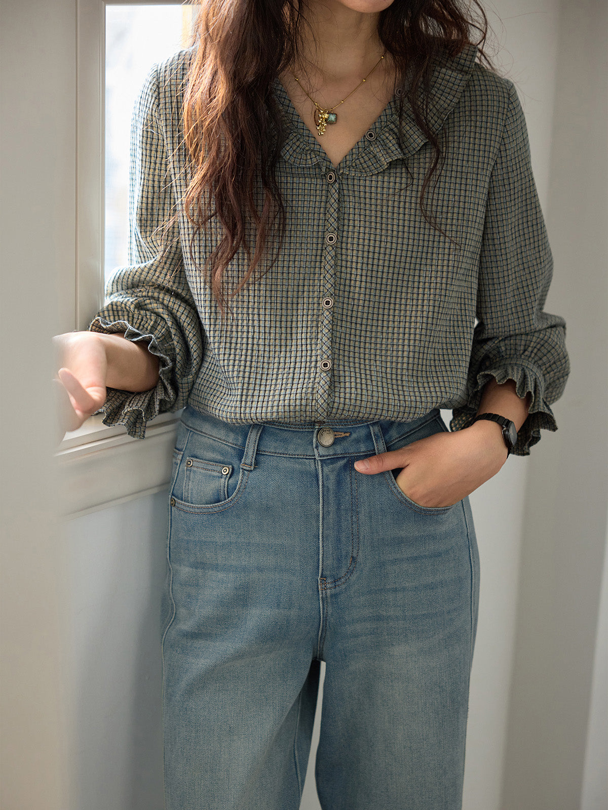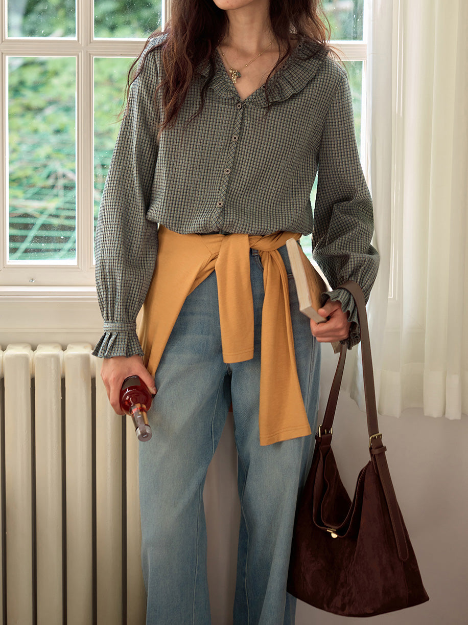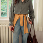 ☆The ruffles at the collar and asymmetrical buttons add a subtle accent, giving the overall look a more sophisticated look.