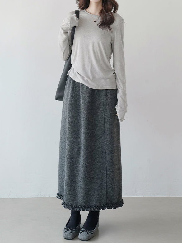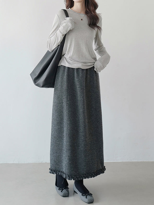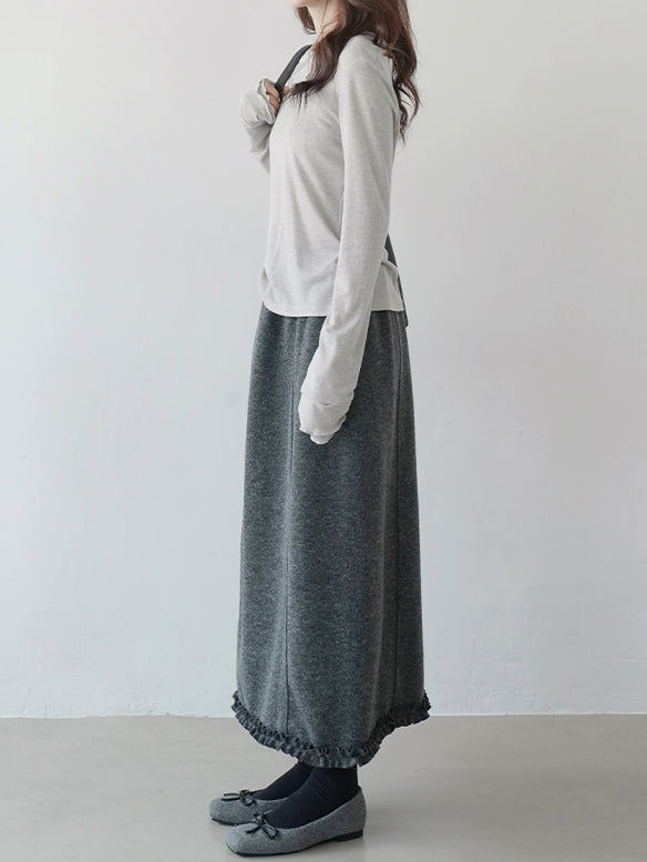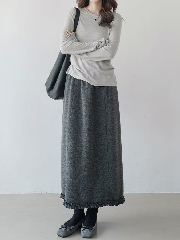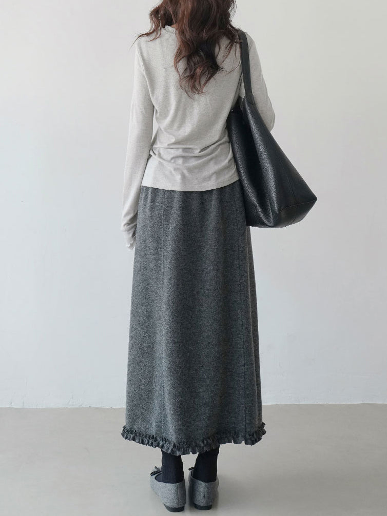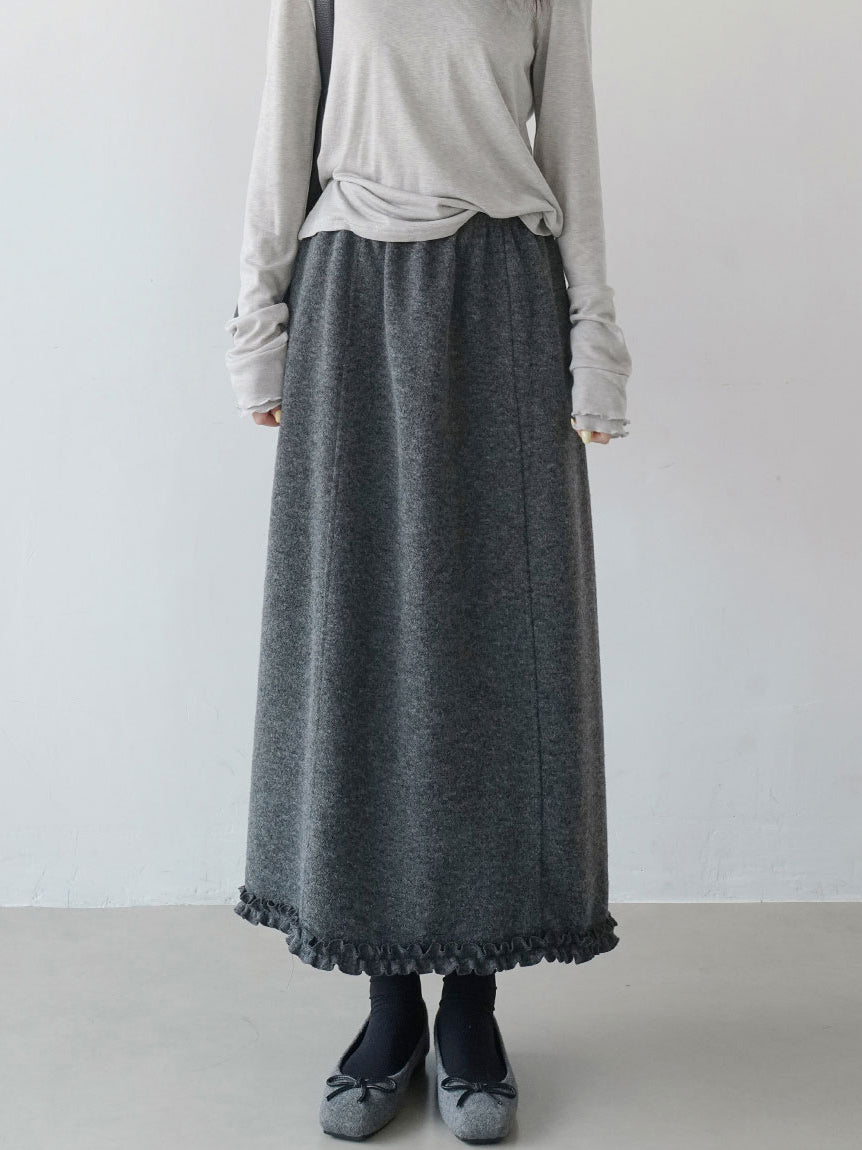 The ruffled hem adds a touch of sweetness, making this skirt look cute and grown-up.
