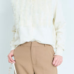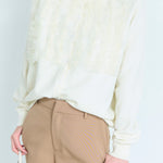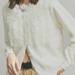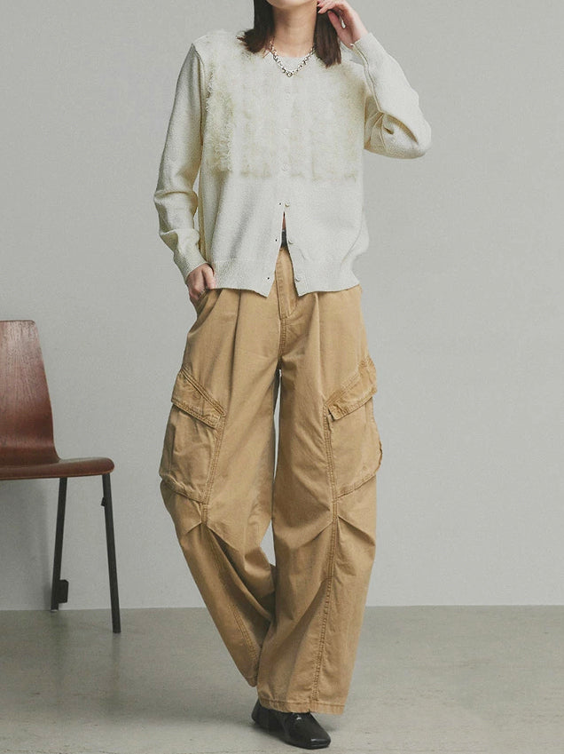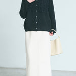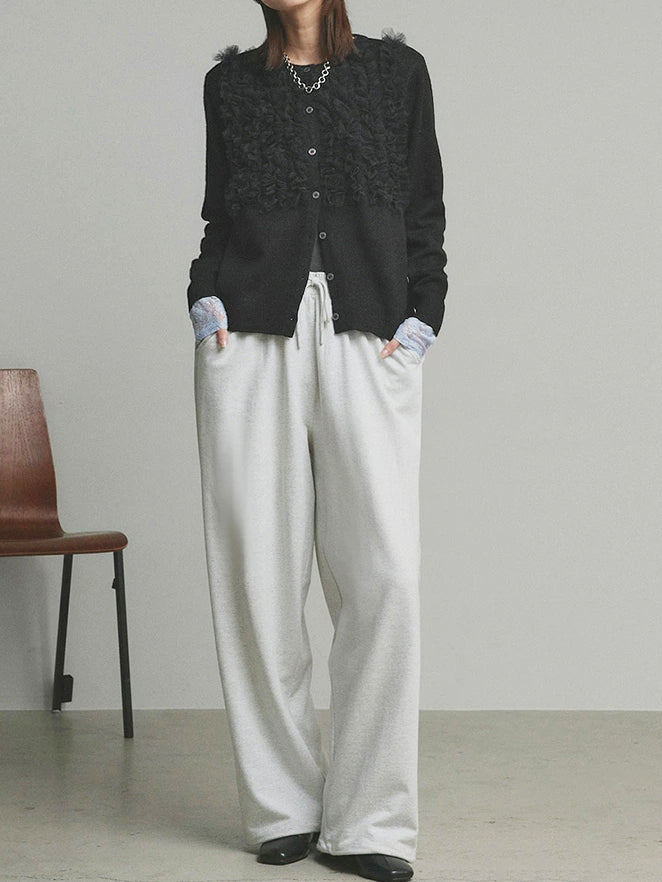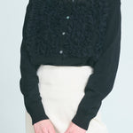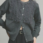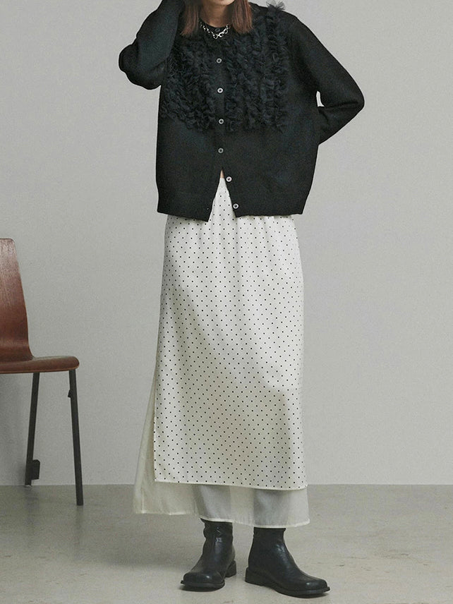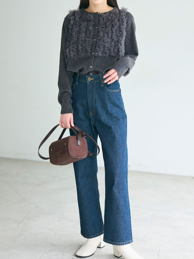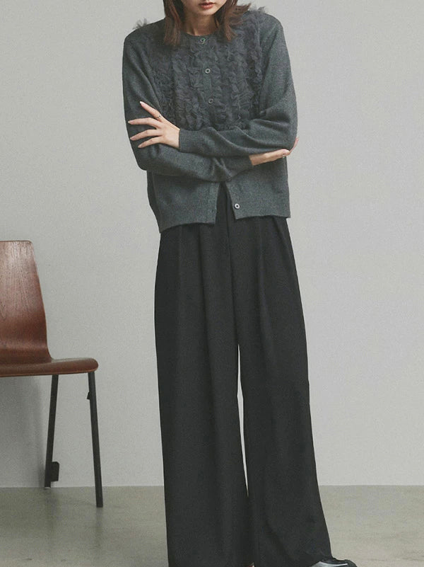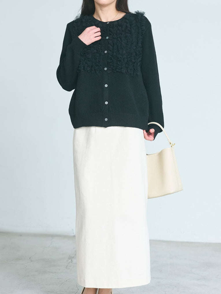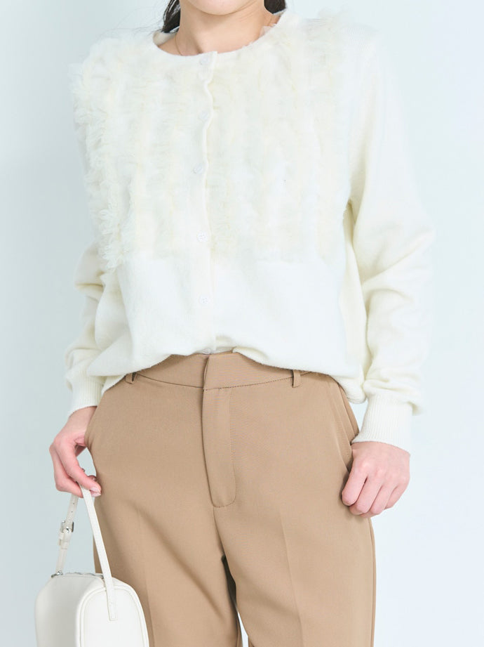 A cardigan that stands out with its gorgeous frills.
