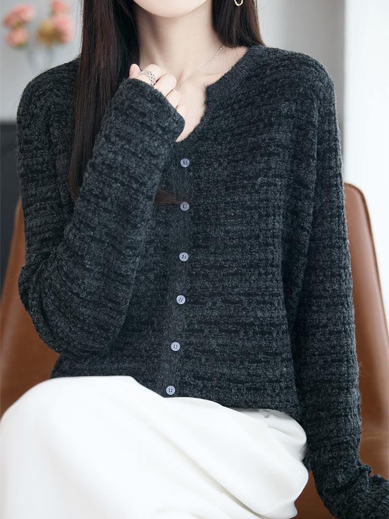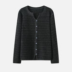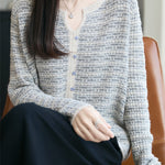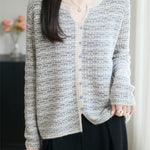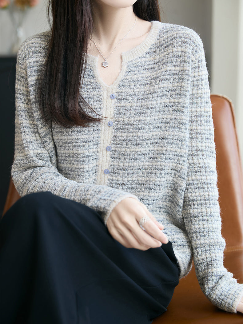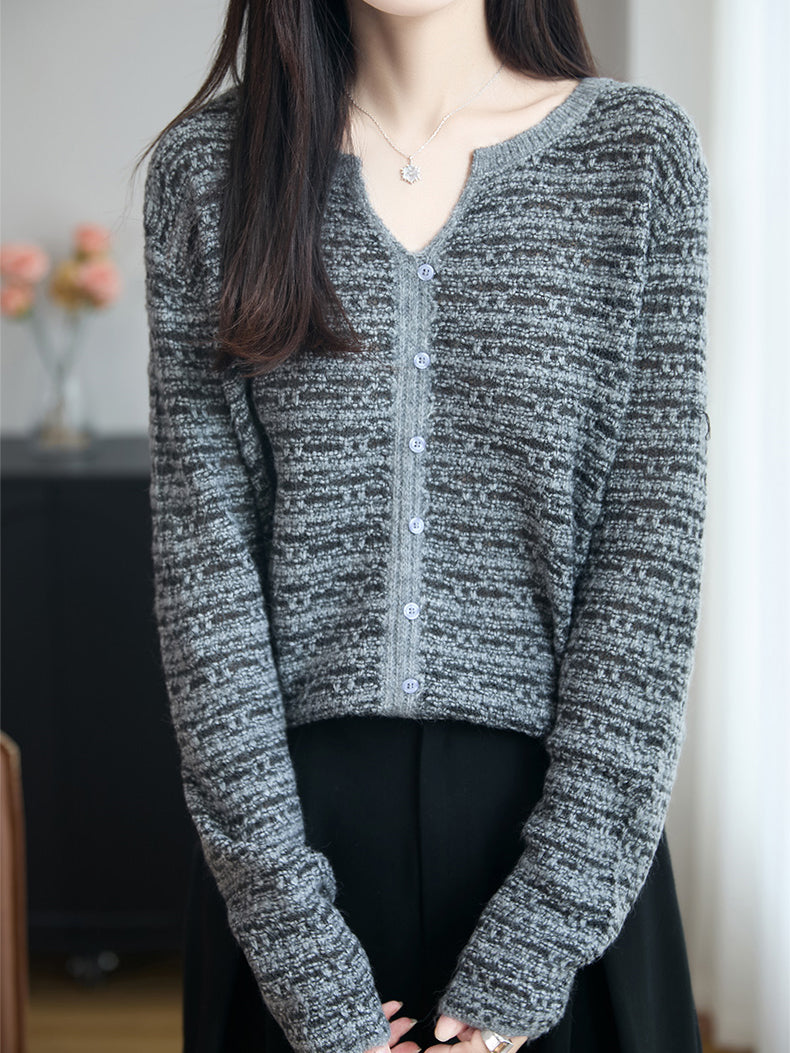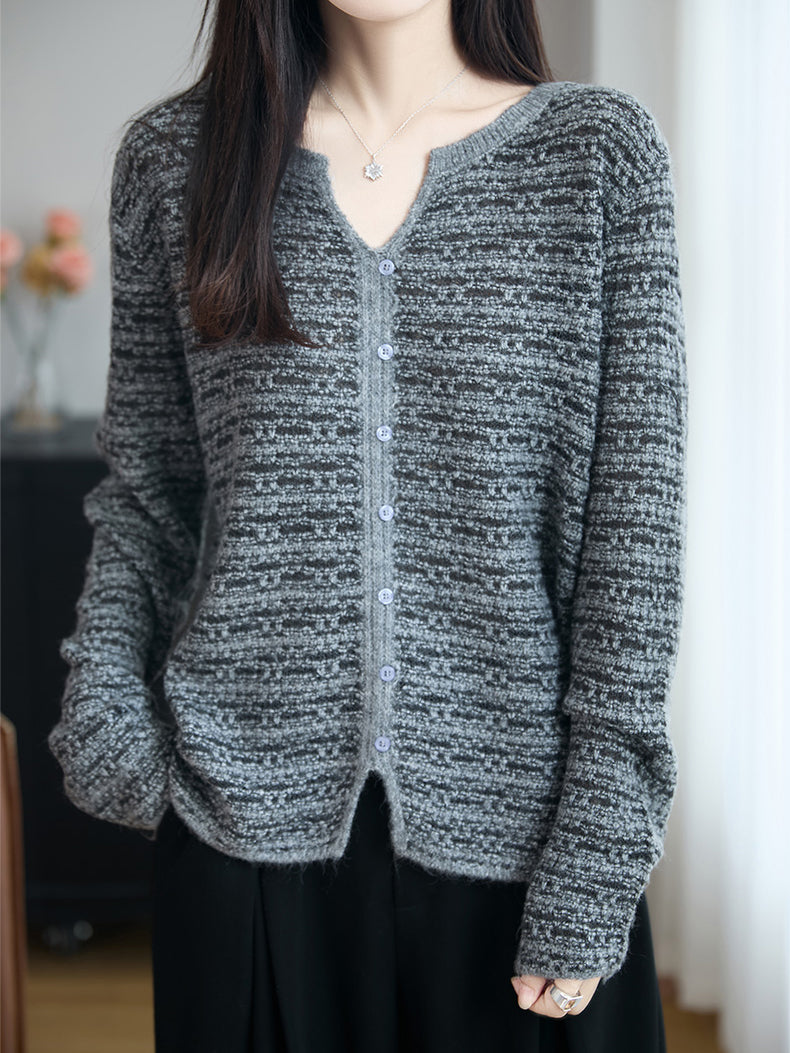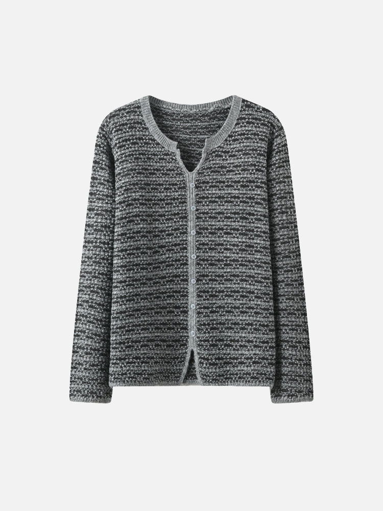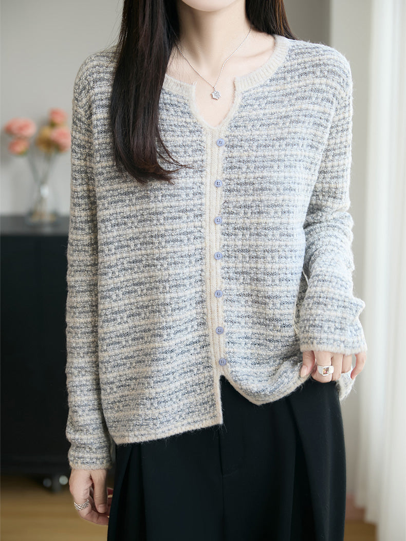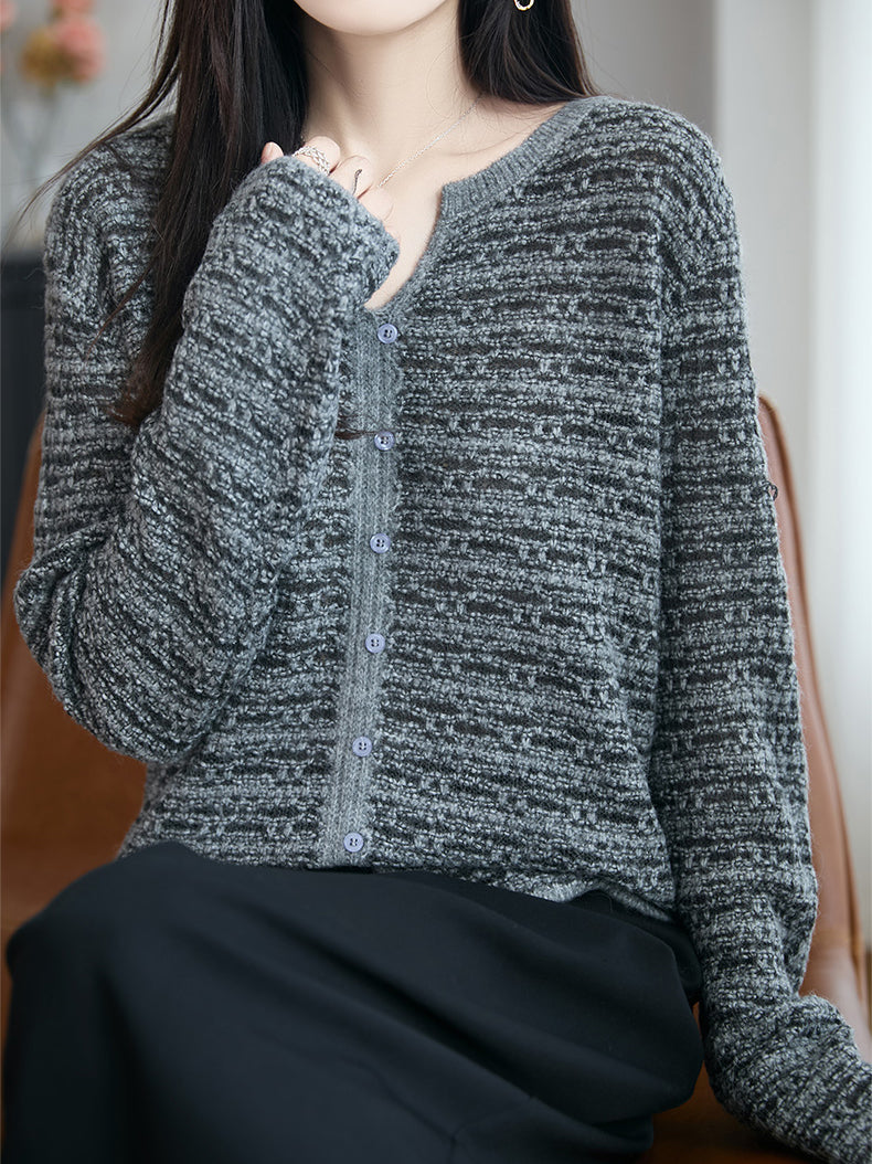 The subtle mixed yarn and casual striped pattern give it a mature look .
