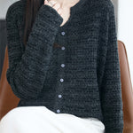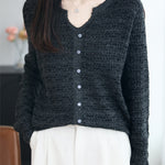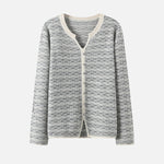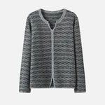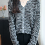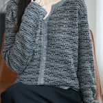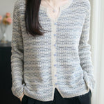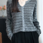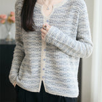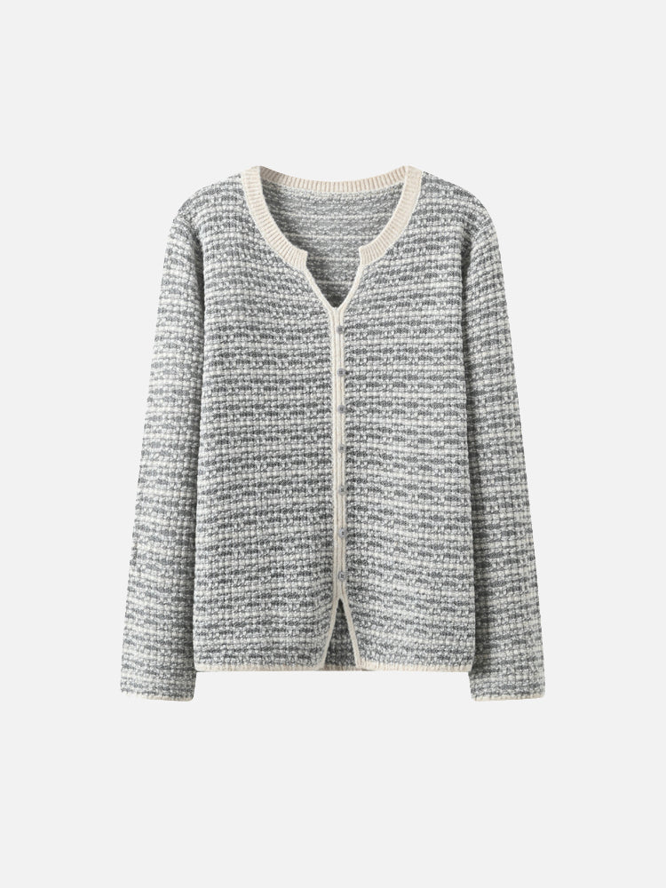 ☆The border pattern knitted with mixed yarn is not too cute but has a mature, casual look.