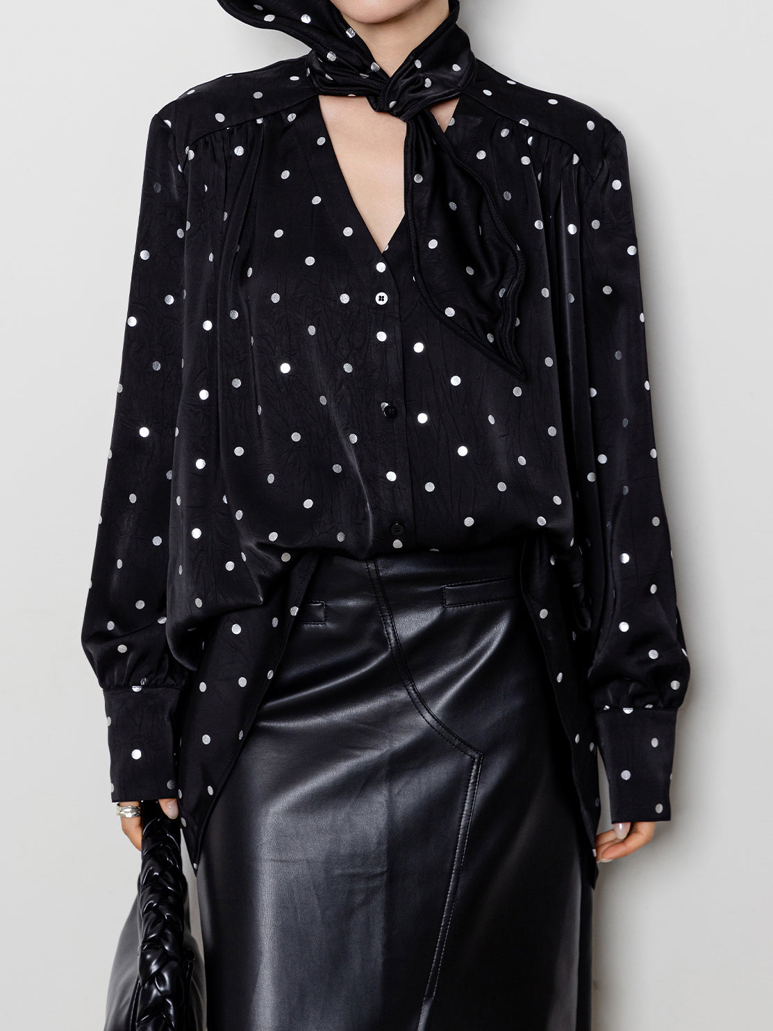 Silver dot bow tie collar blouse