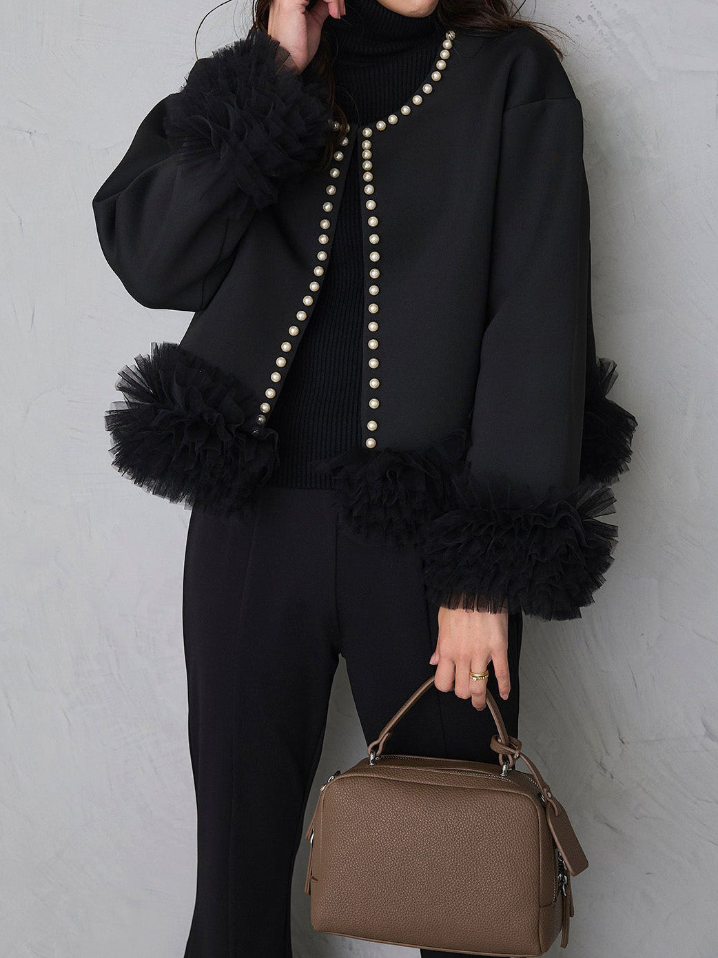 Whipped tulle pearl bonded jacket