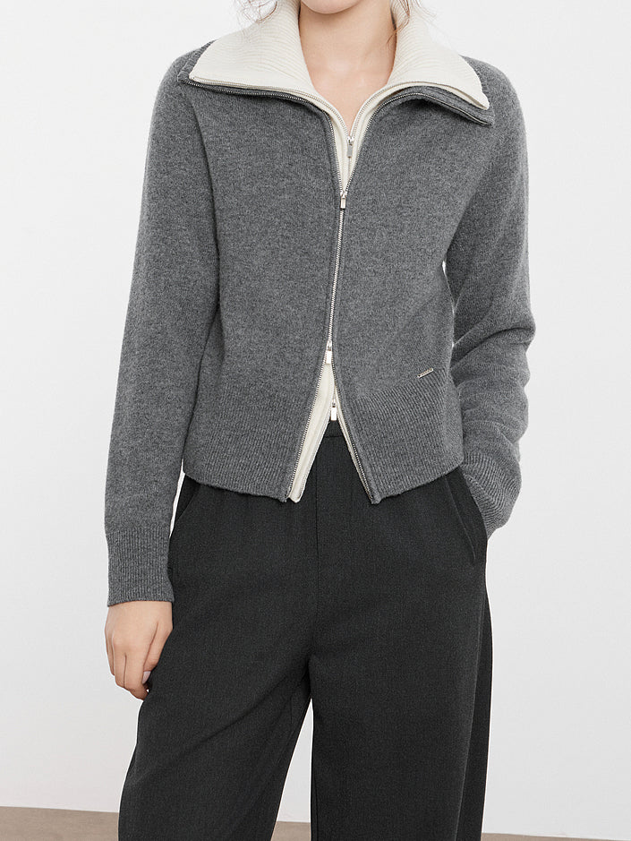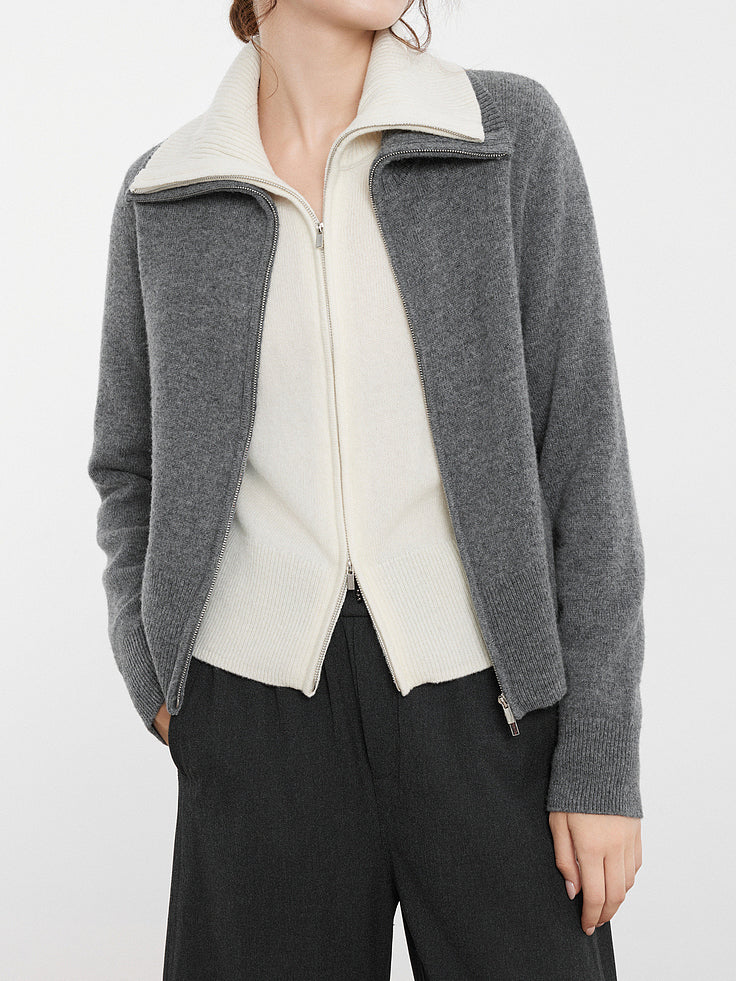 High-neck zip-up knit in 2 colors