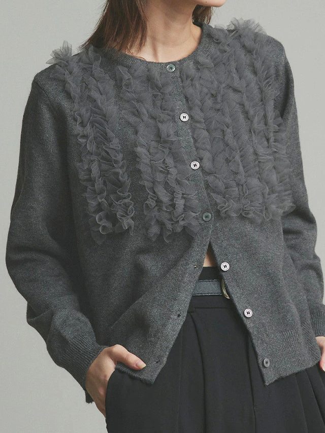 Frilled tulle cardigan in 3 colors