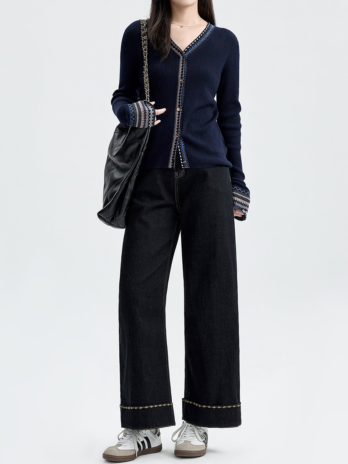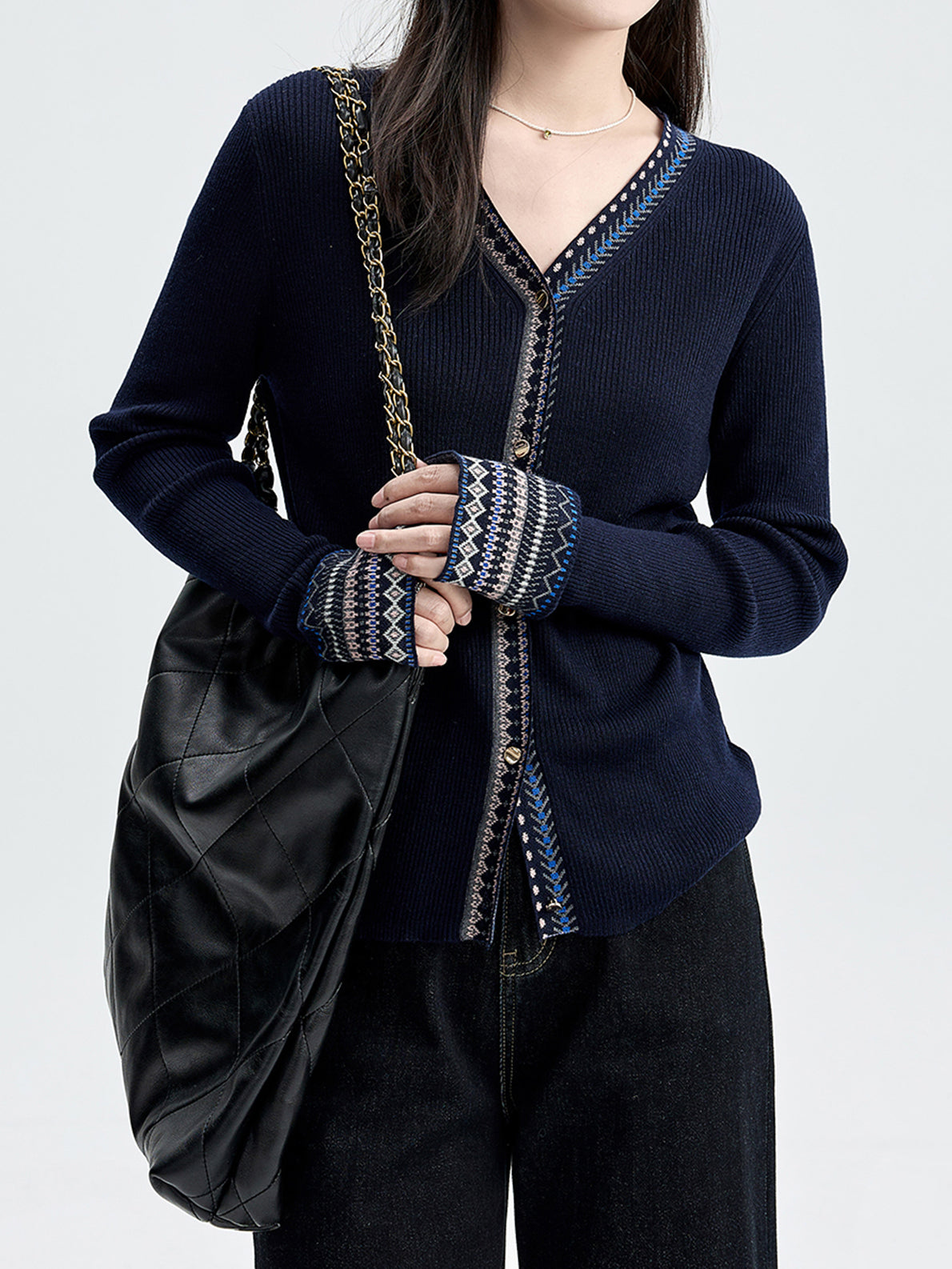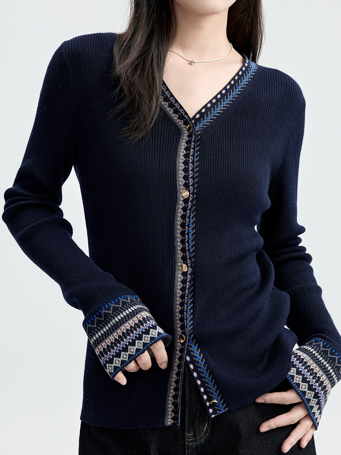 Ethnic design ribbed knit cardigan