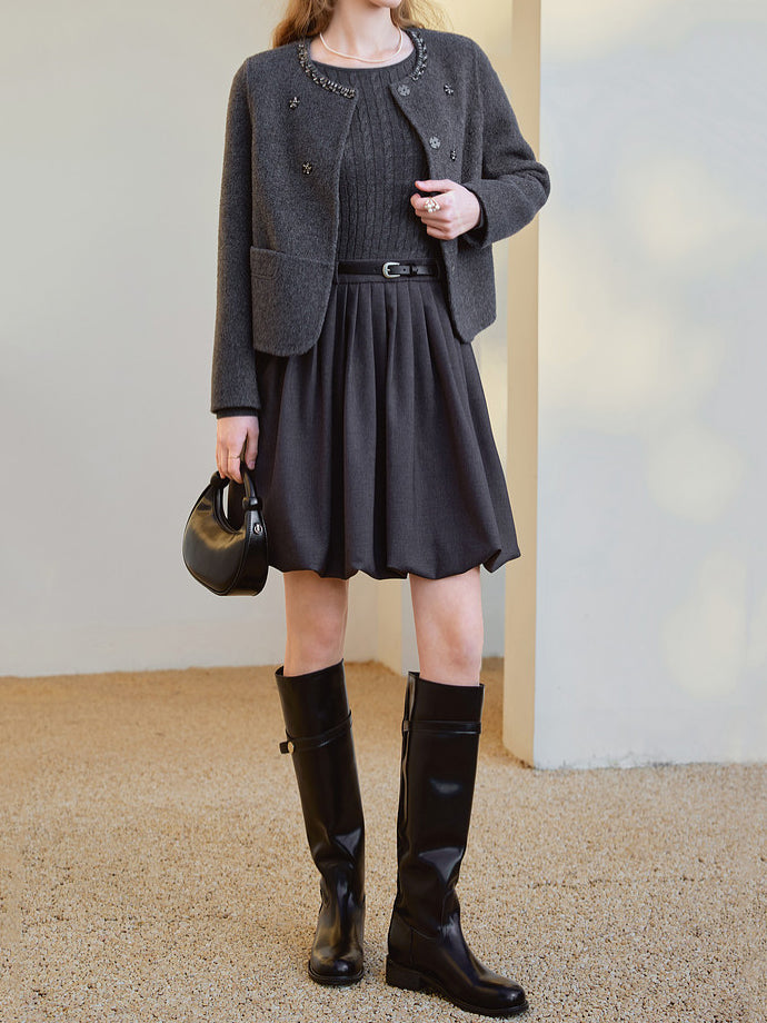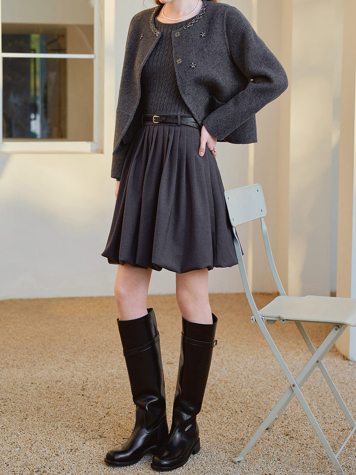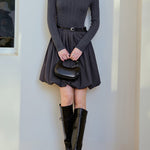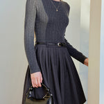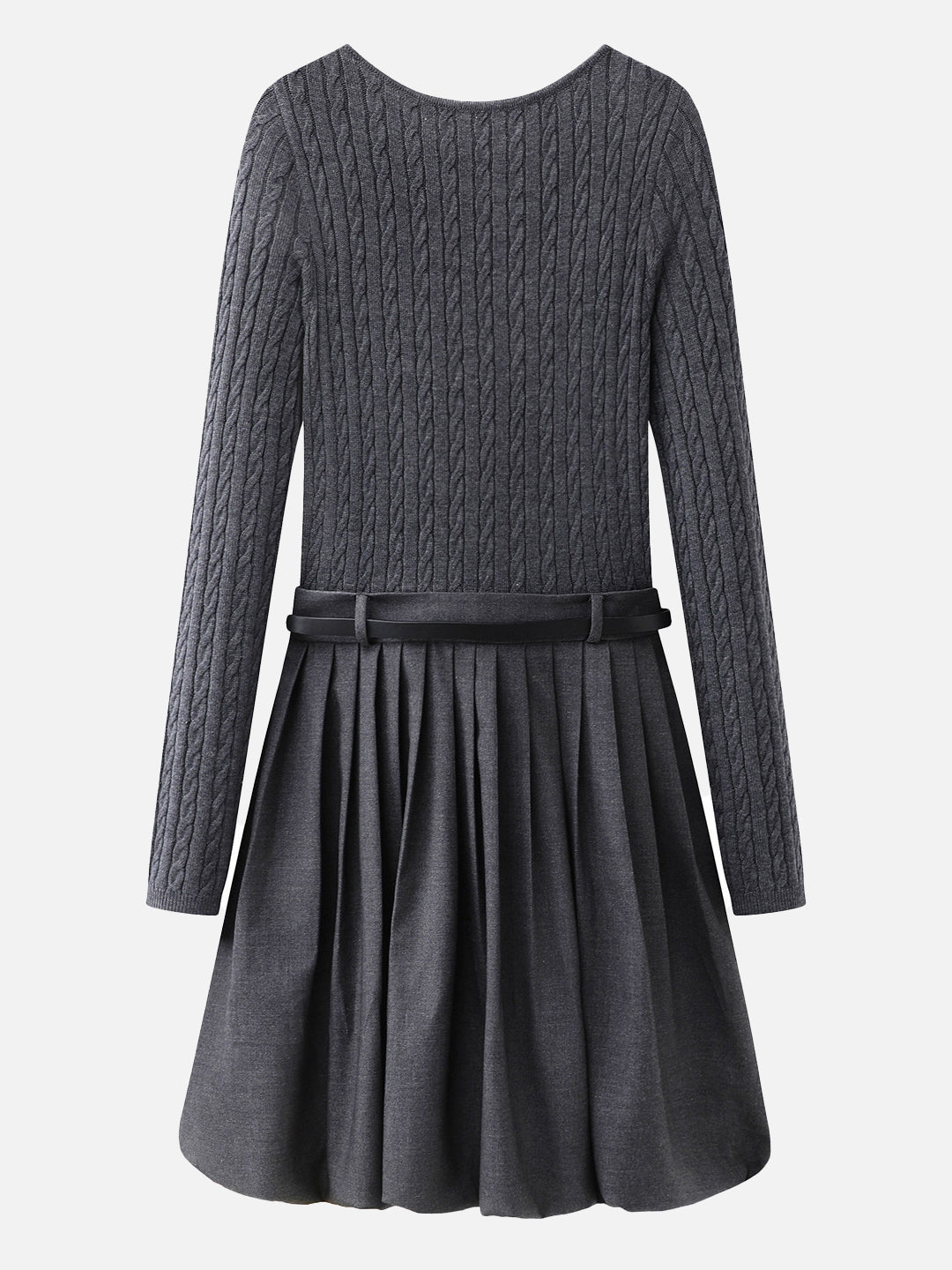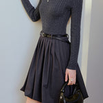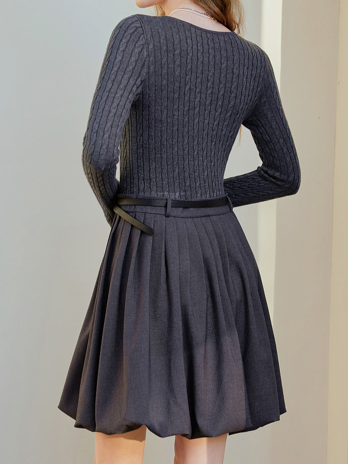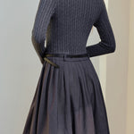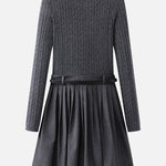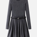 Belted cable knit docking pleated dress
