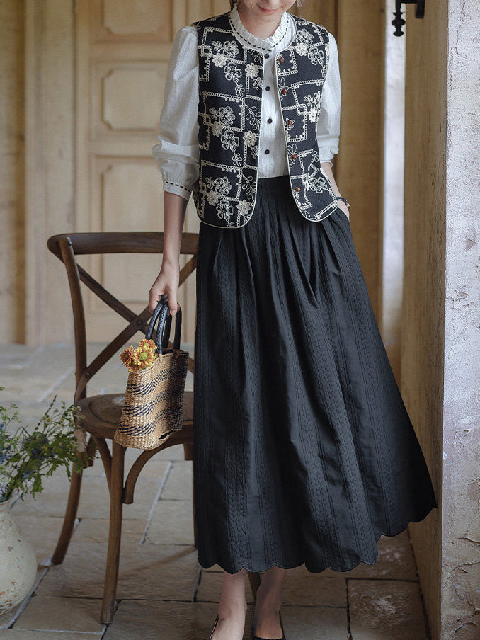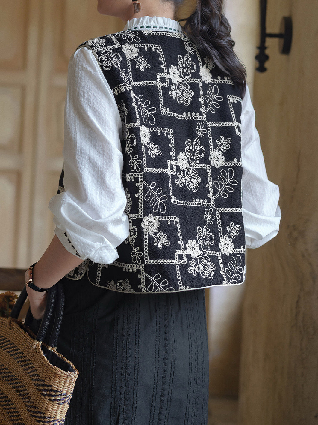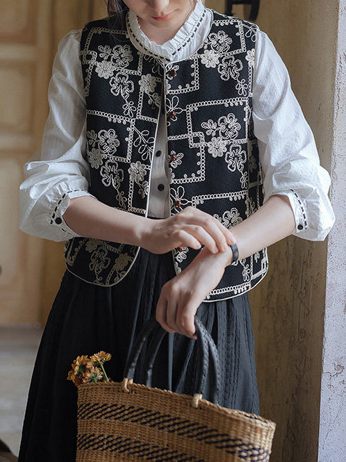 An adult casual embroidered vest featuring elegant embroidery.
