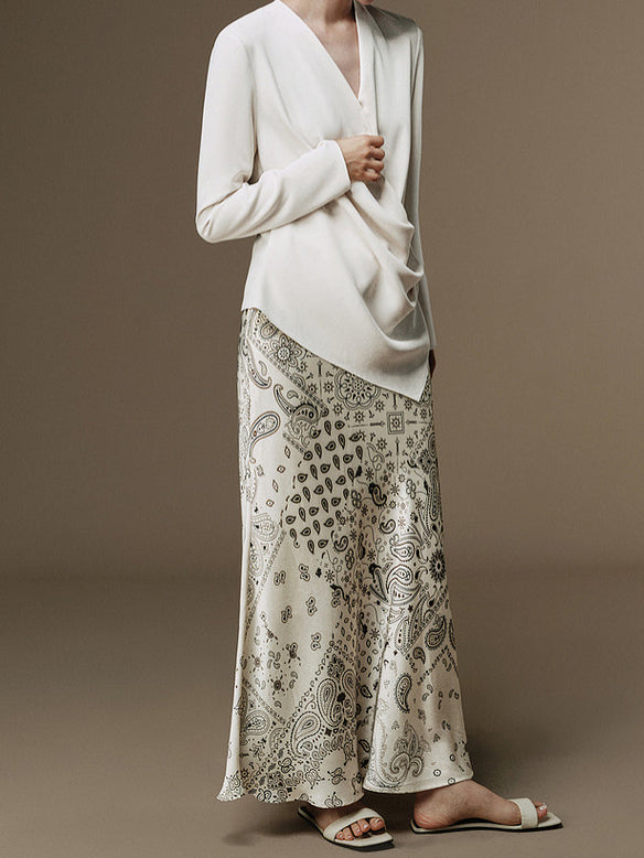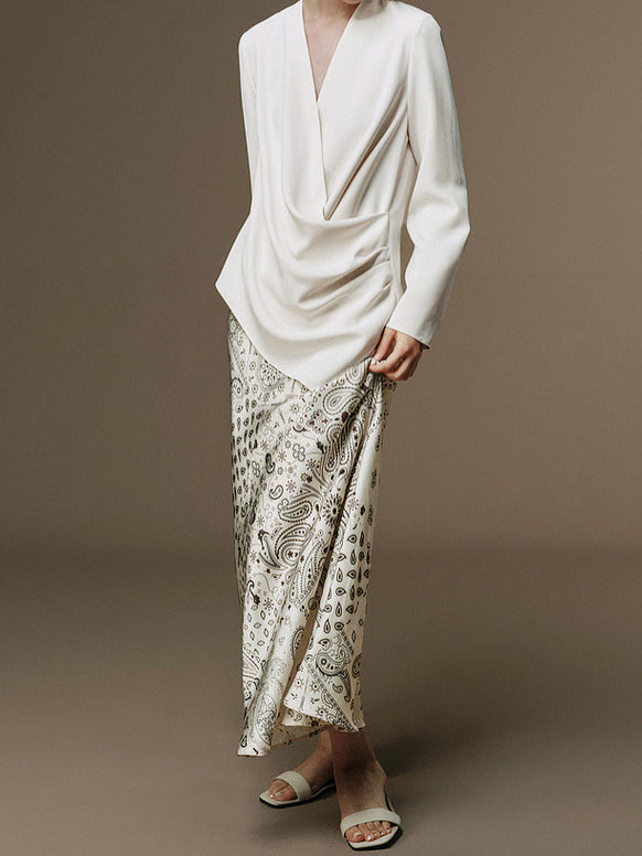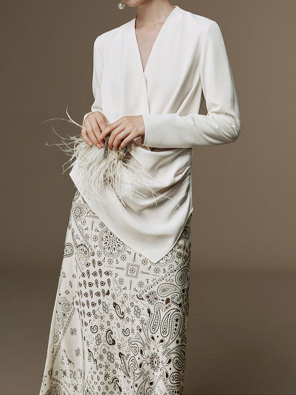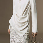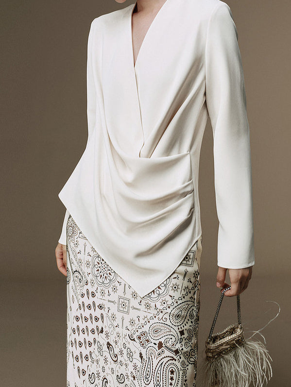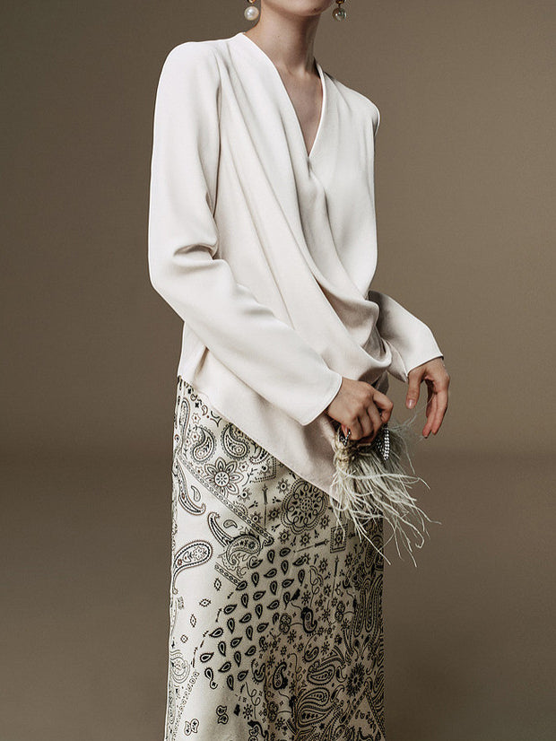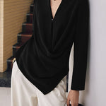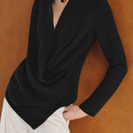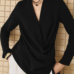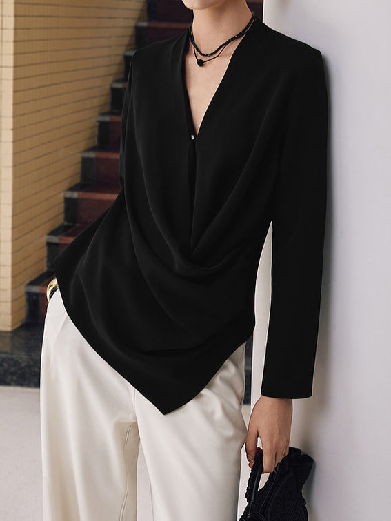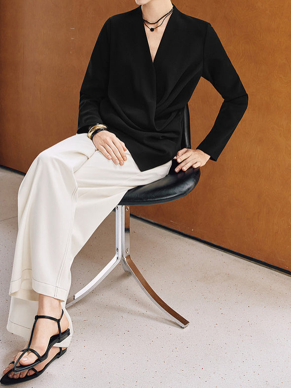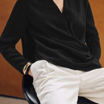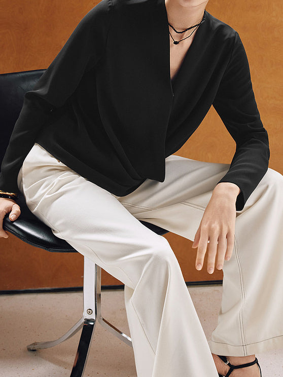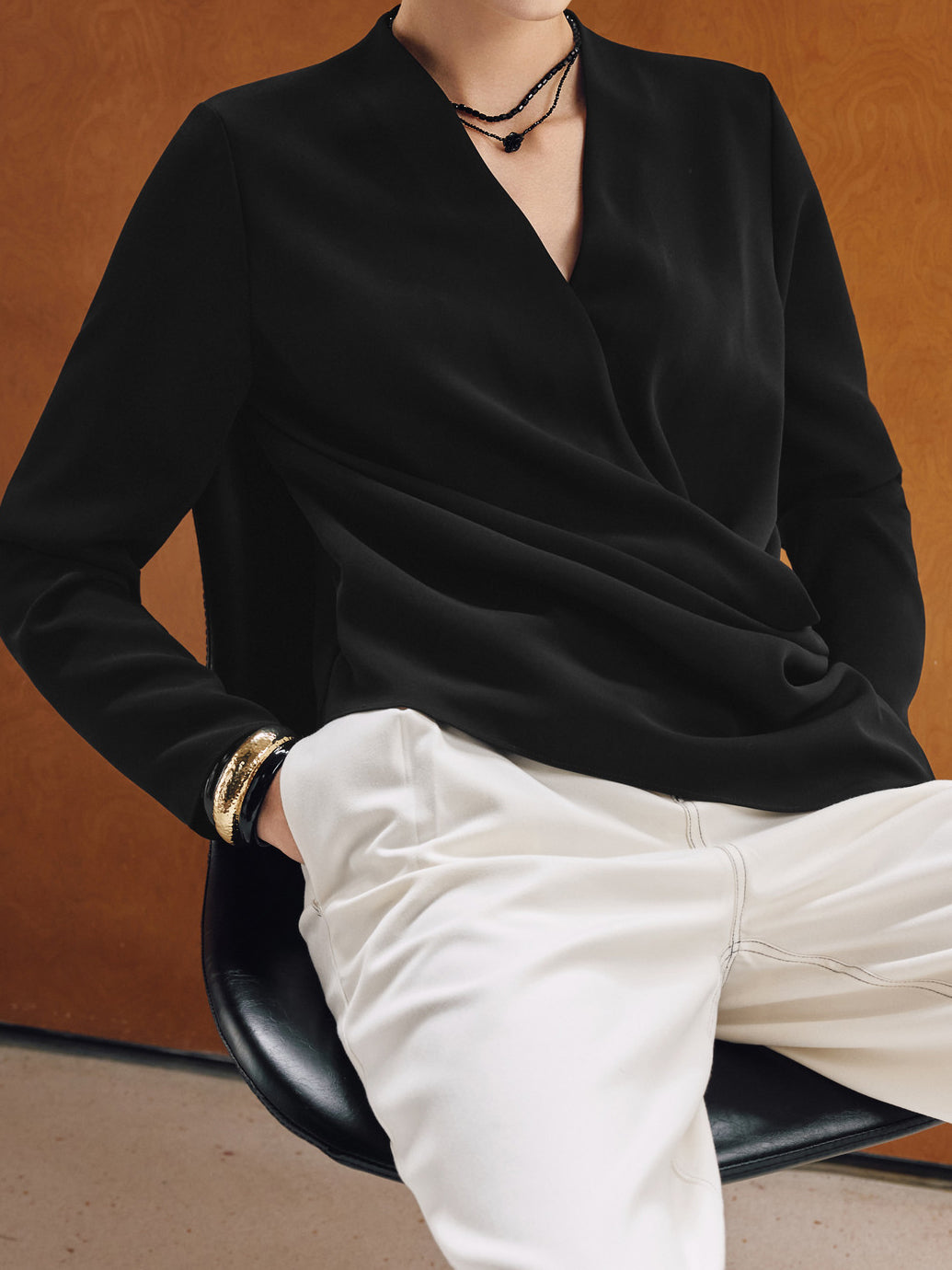 A cache-coeur style draped blouse that combines casual elegance with delicate silhouette correction.