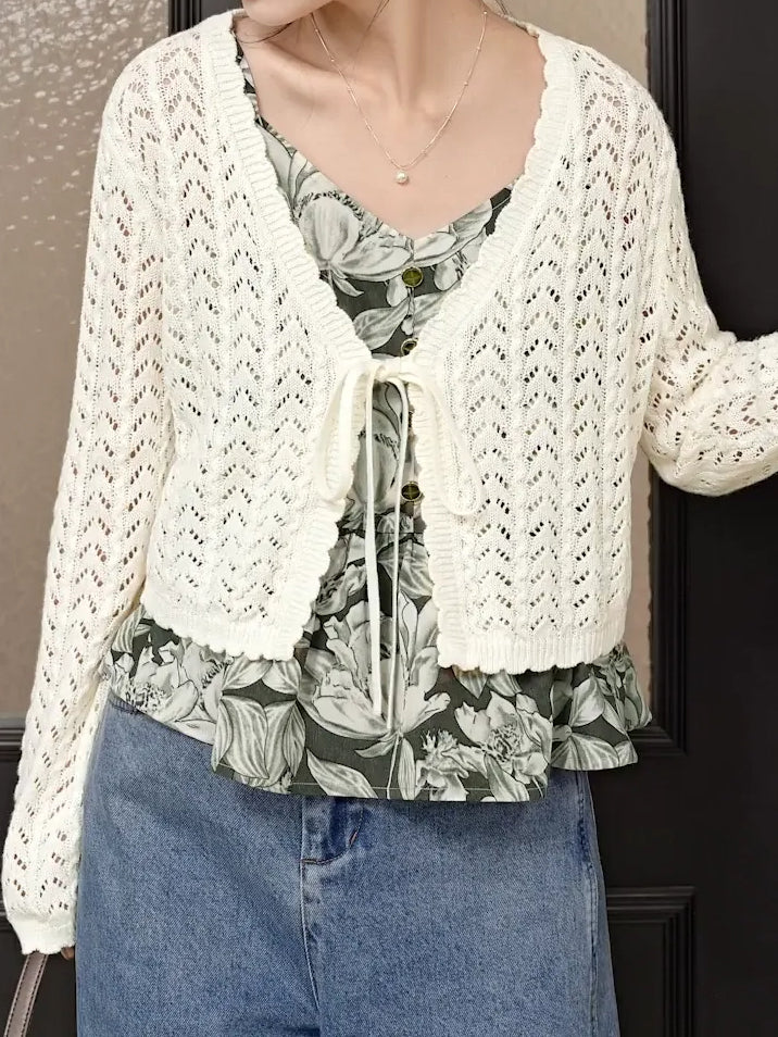 Crochet Scallop Ribbon Cardigan