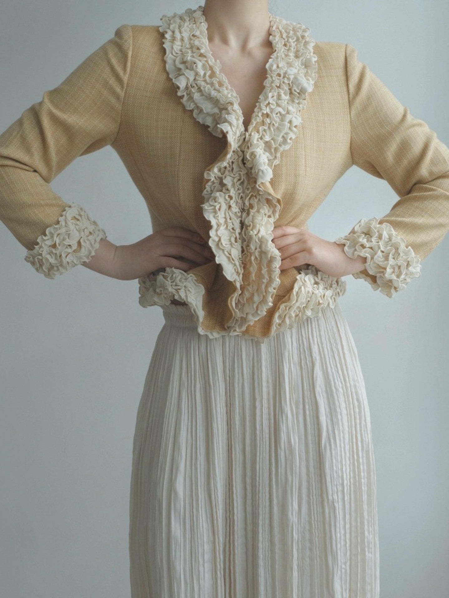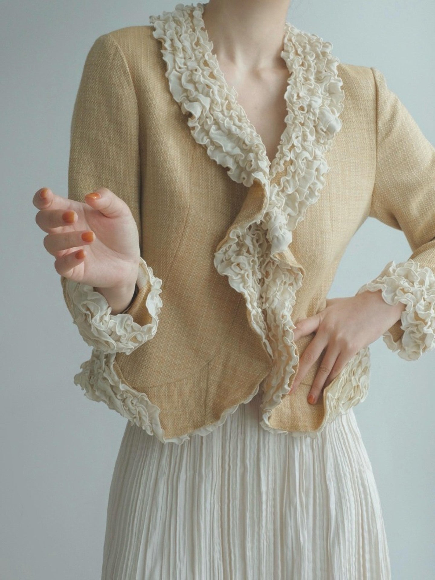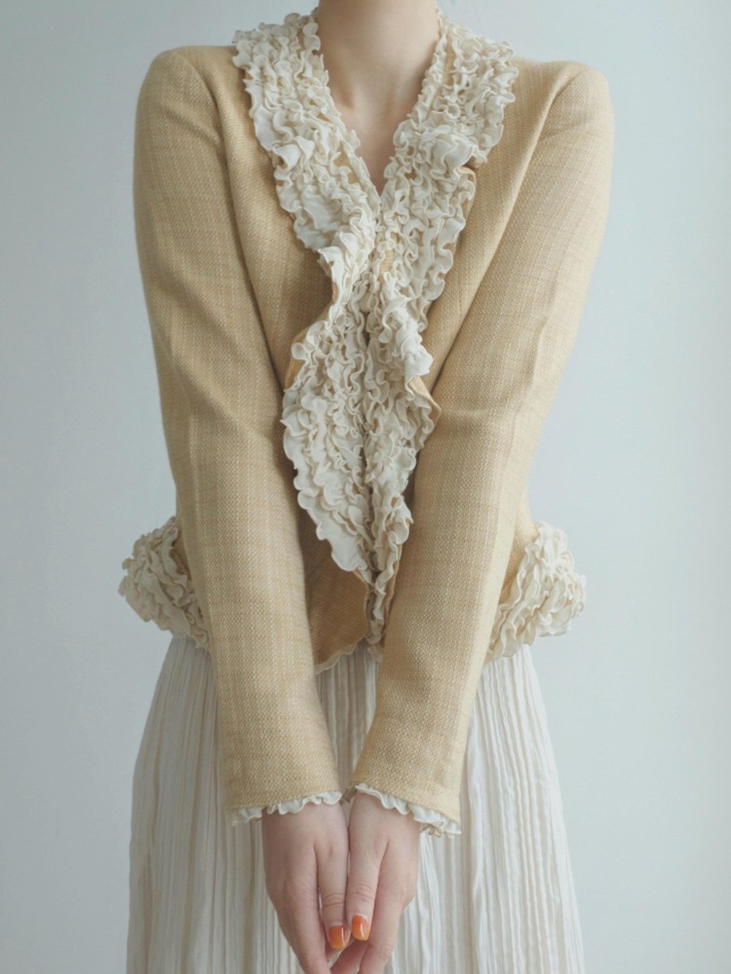 ☆Flower-like lace ruffles are applied to the edges from the collar to the placket and hem, and combined with the ruffle design, they make the area around the face look gorgeous and also give the appearance of delicateness.