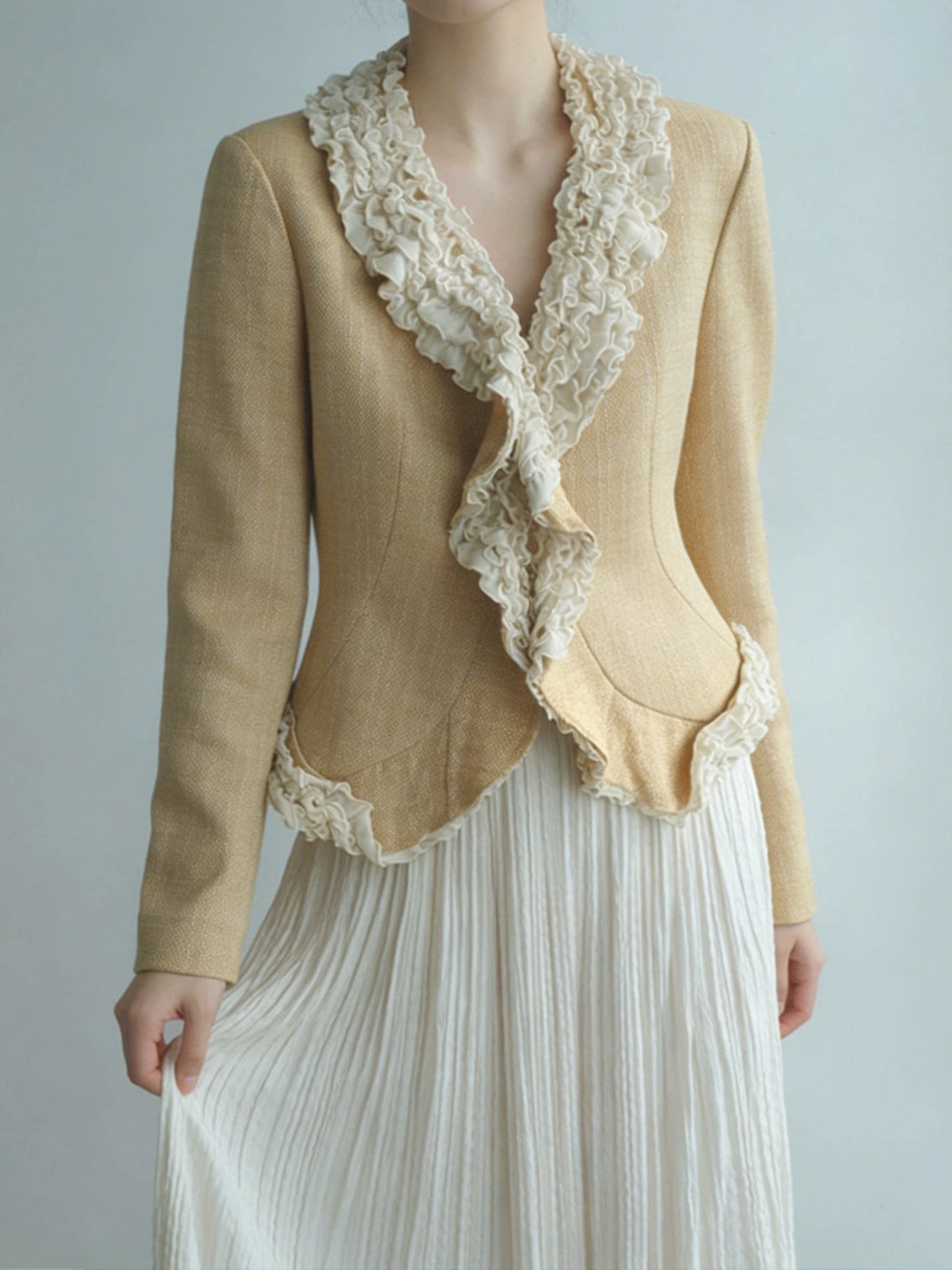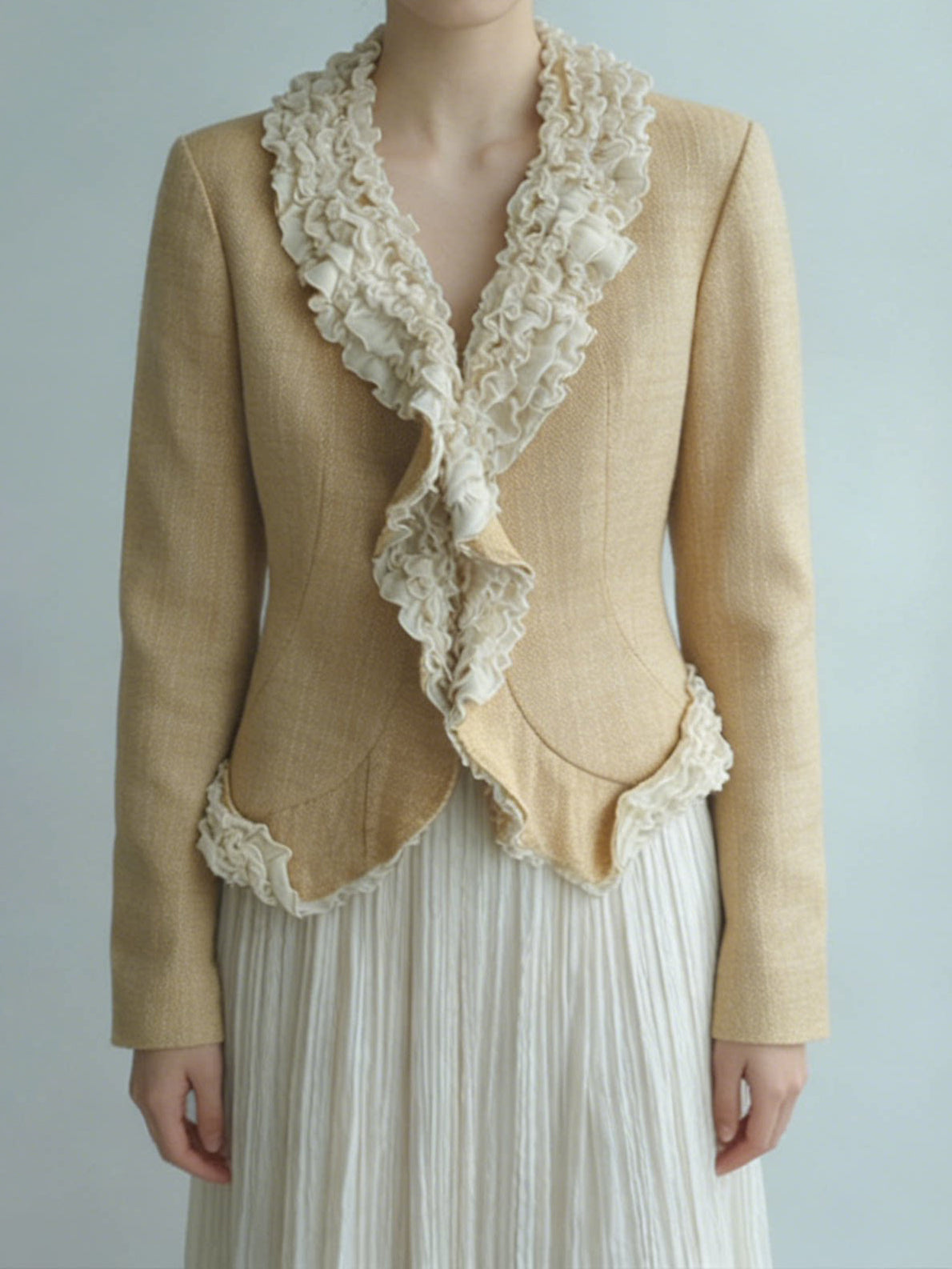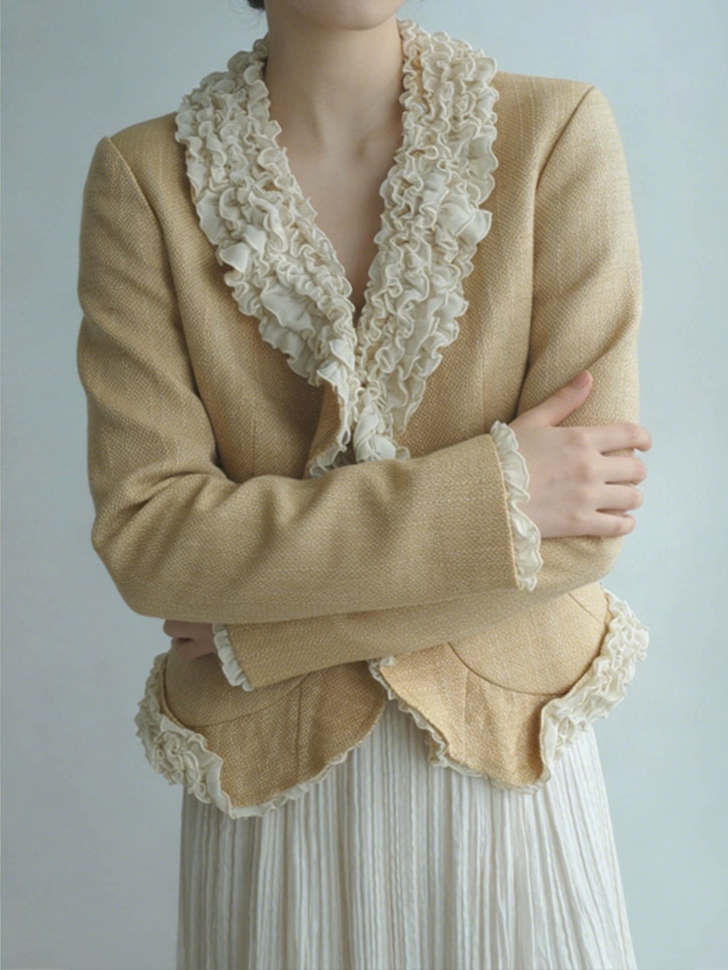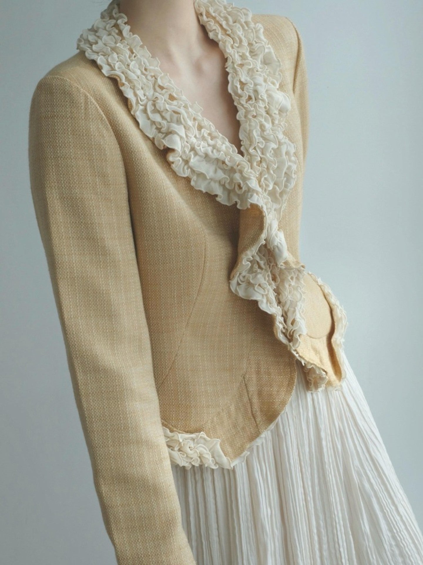☆Flower-like lace ruffles are applied to the edges from the collar to the placket and hem, and combined with the ruffle design, they make the area around the face look gorgeous and also give the appearance of delicateness.