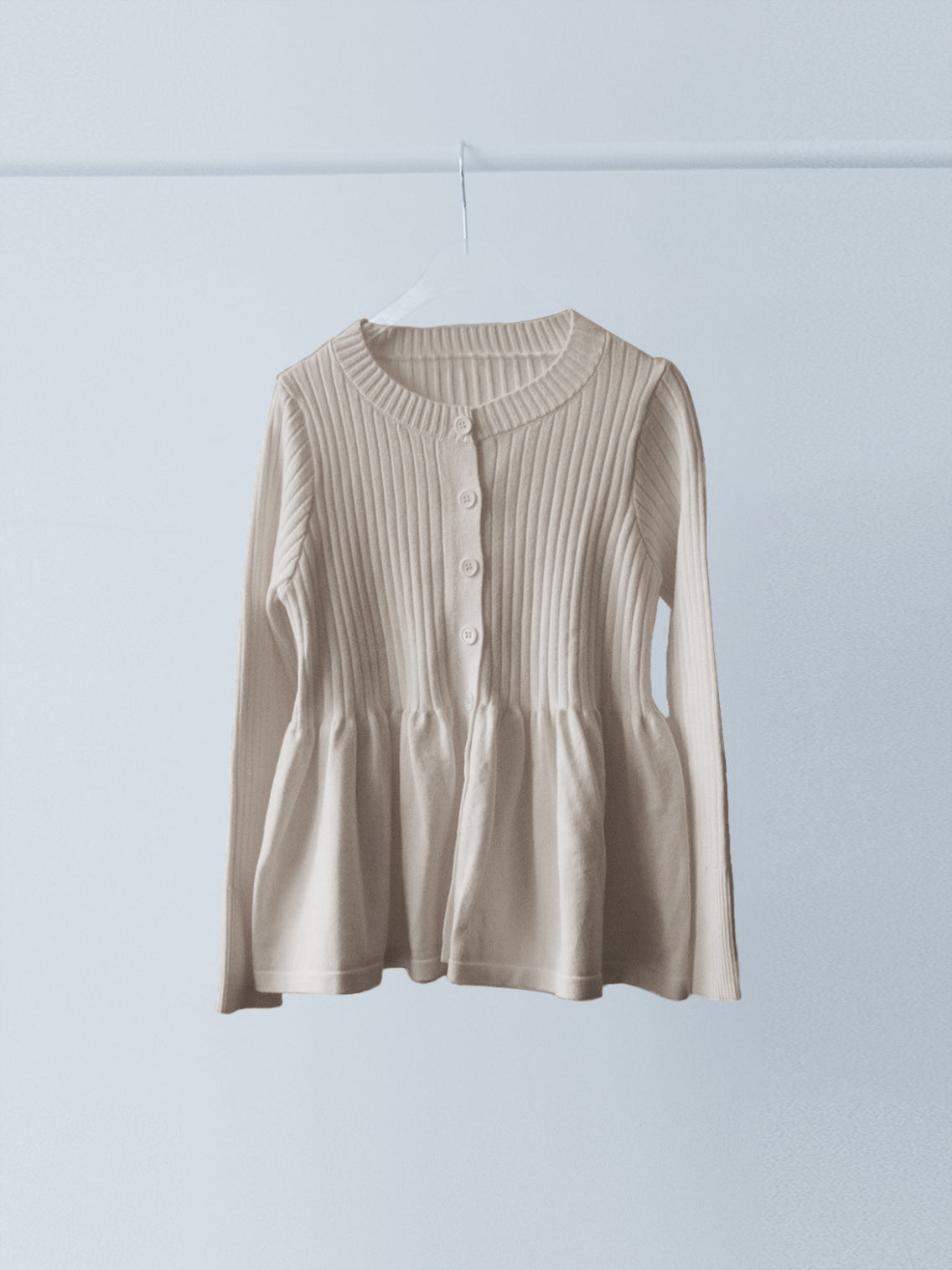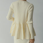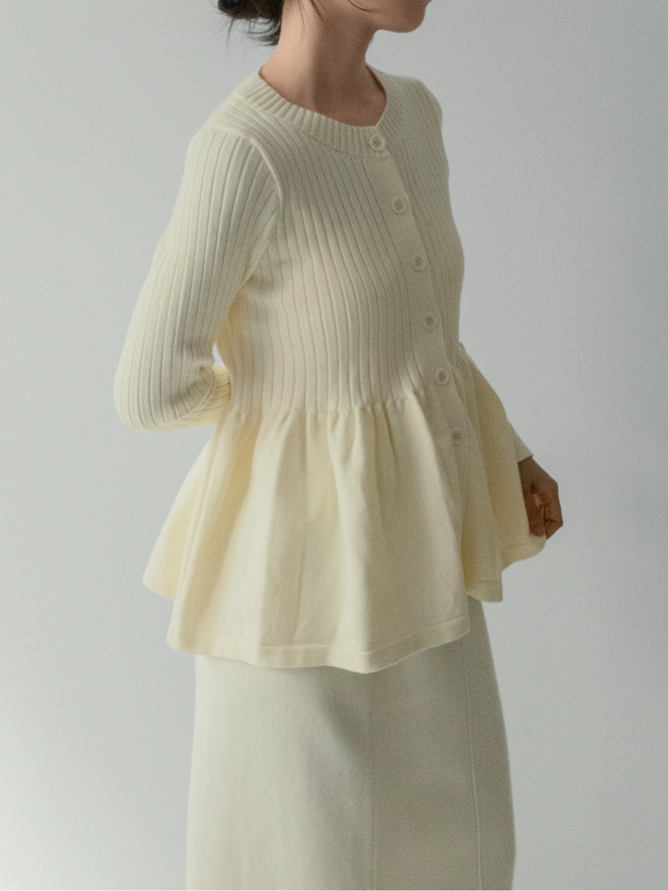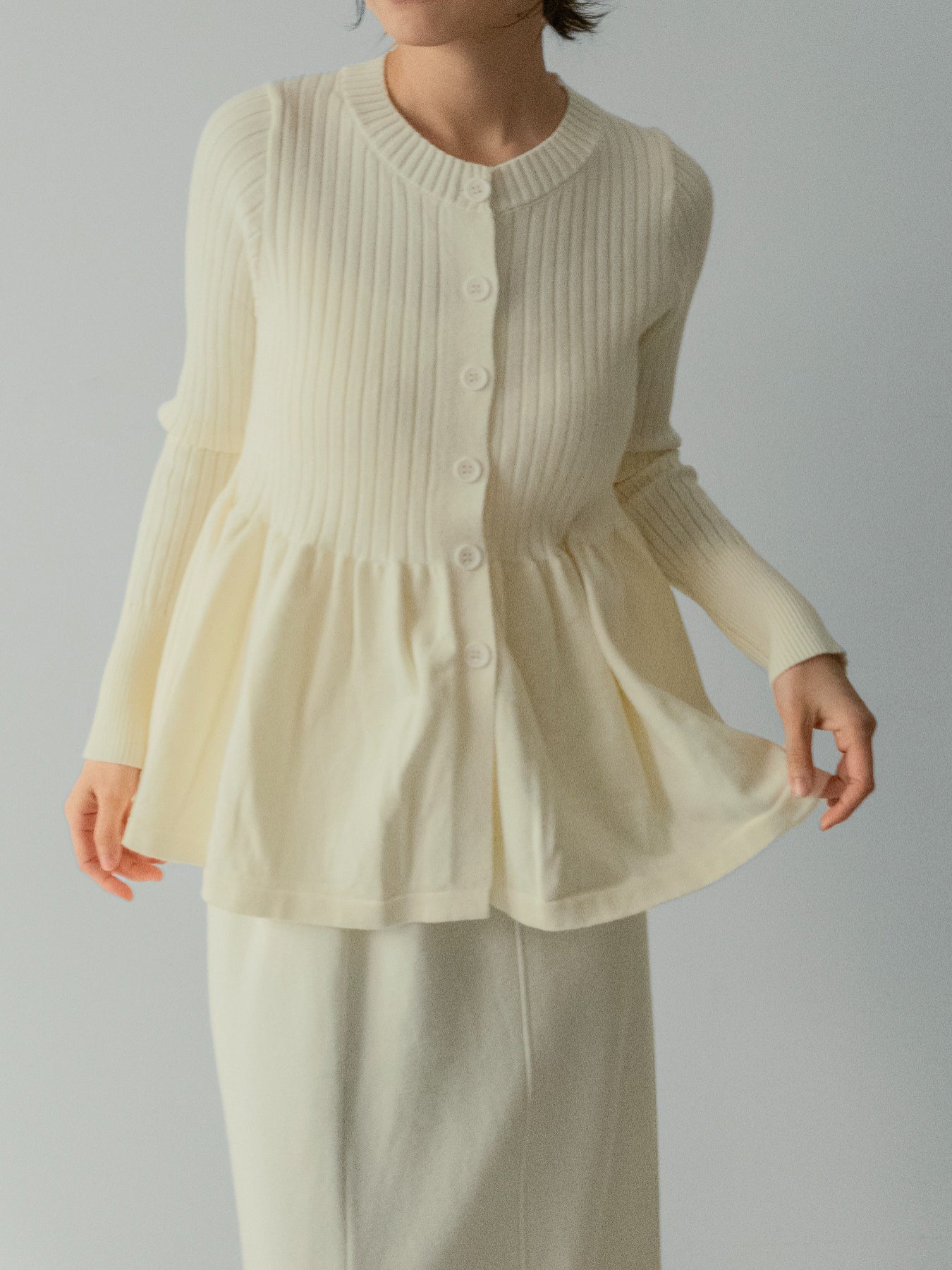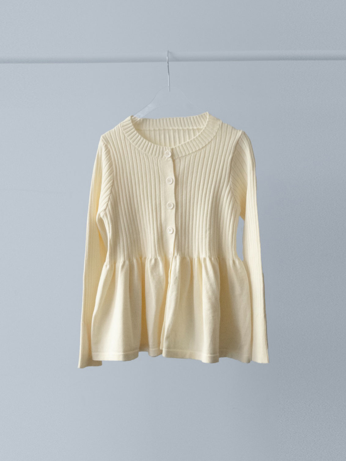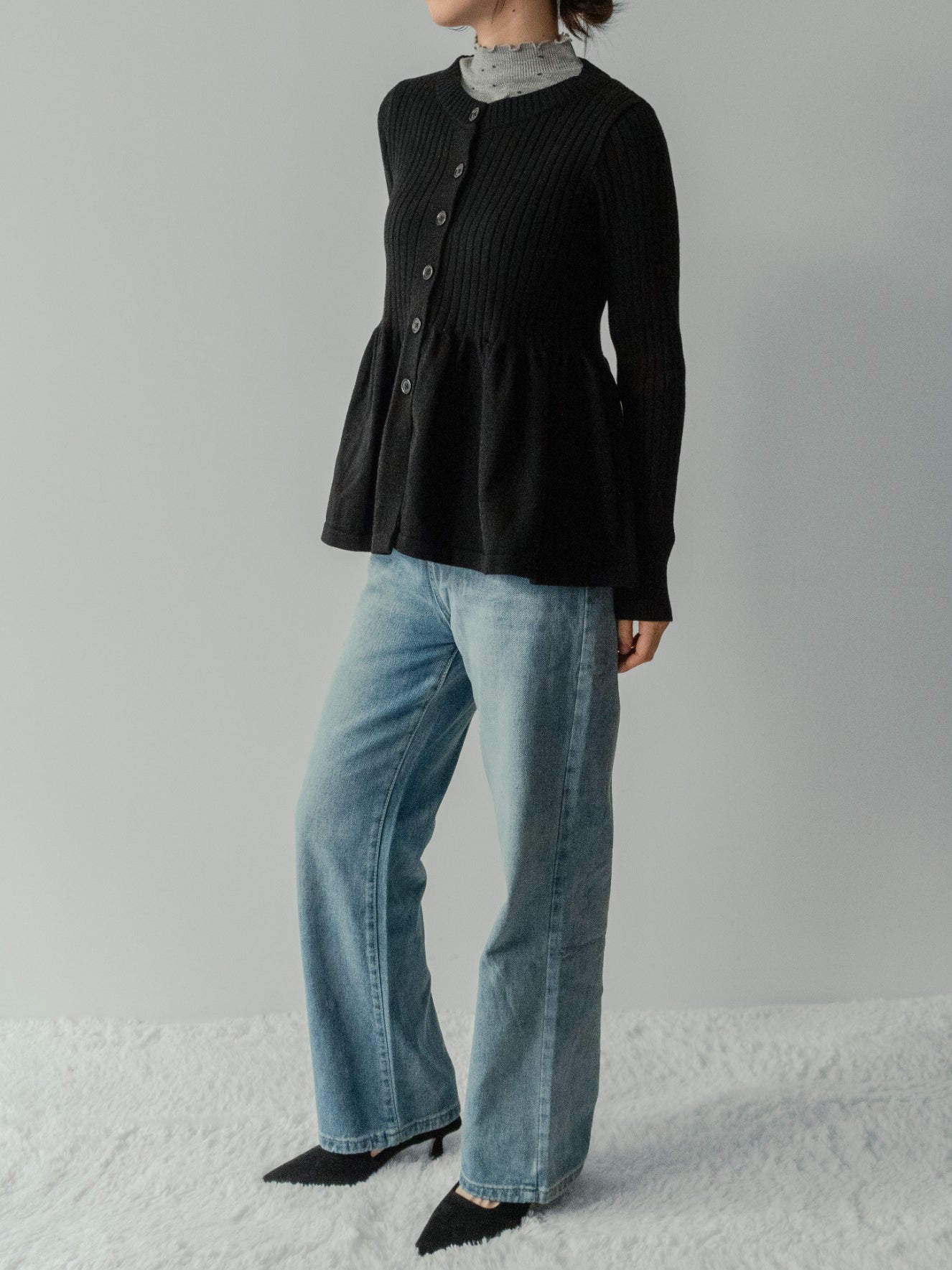 A cardigan with ruffles and a peplum that adds a touch of elegance and femininity.