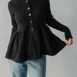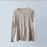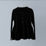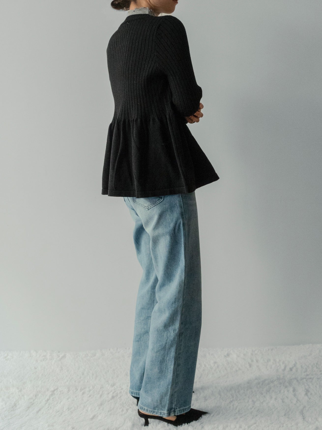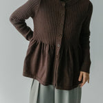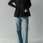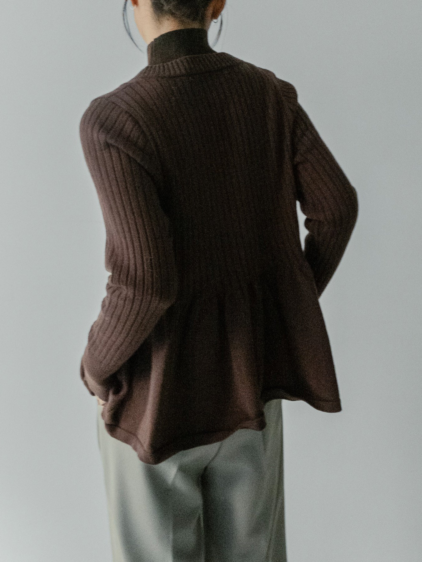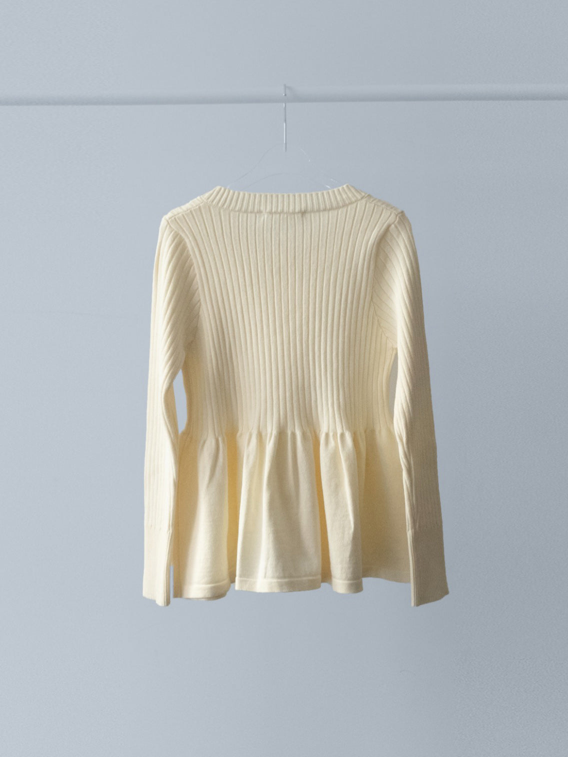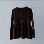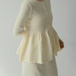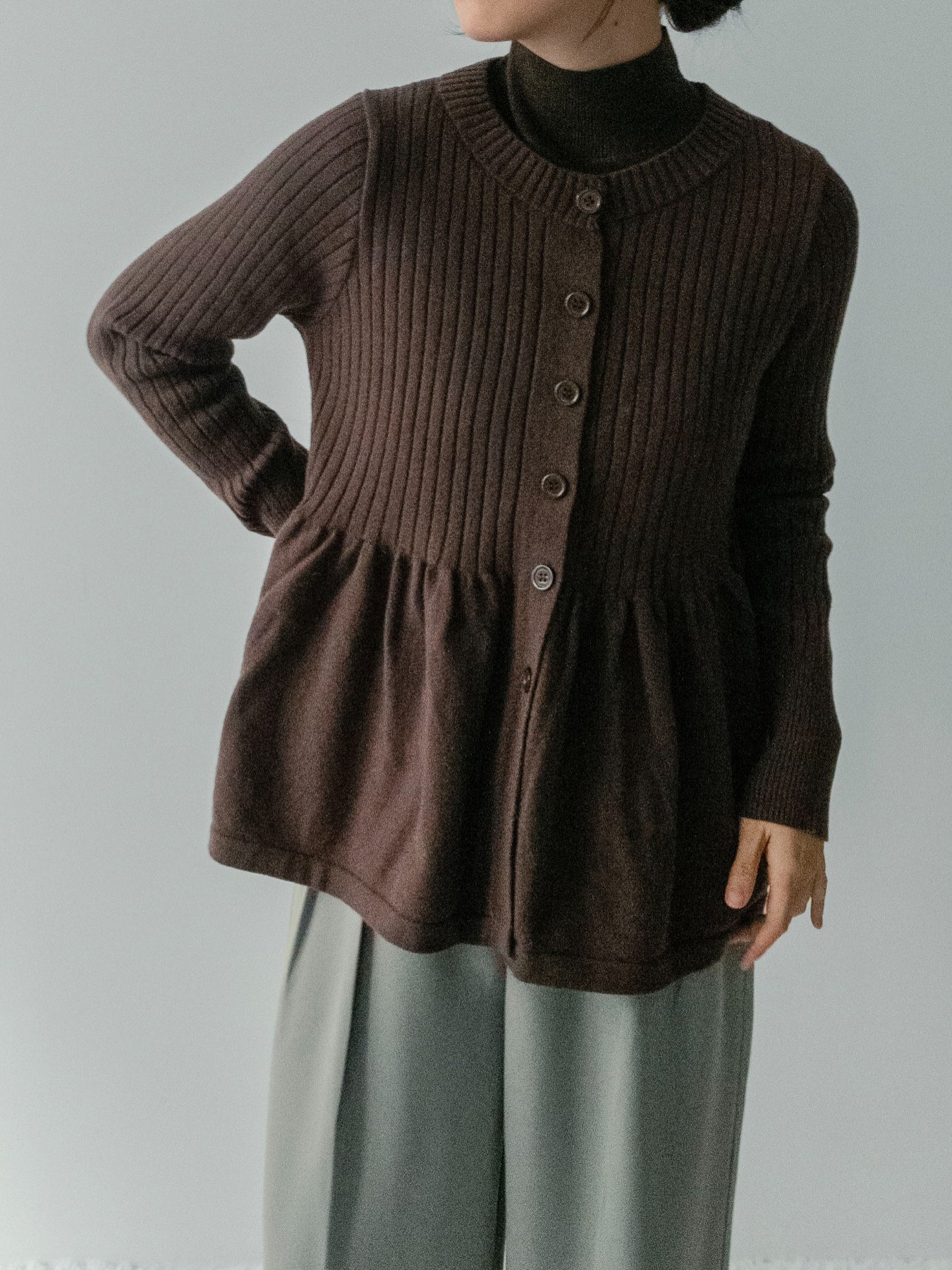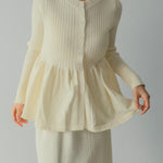 A cardigan with ruffles and a peplum that adds a touch of elegance and femininity.