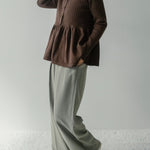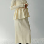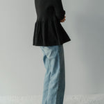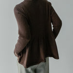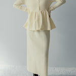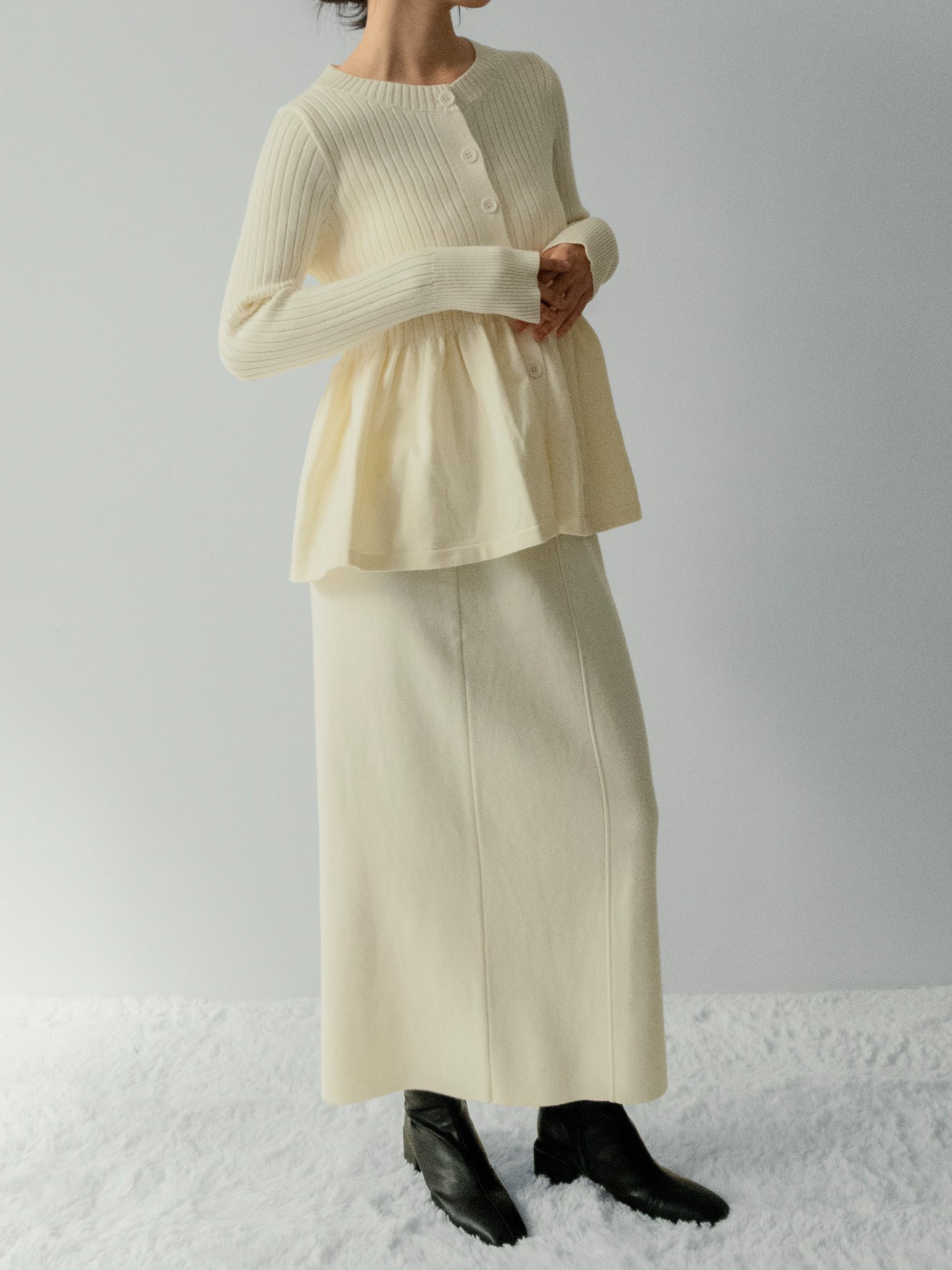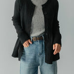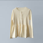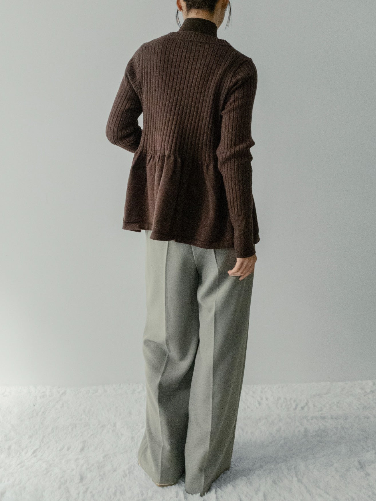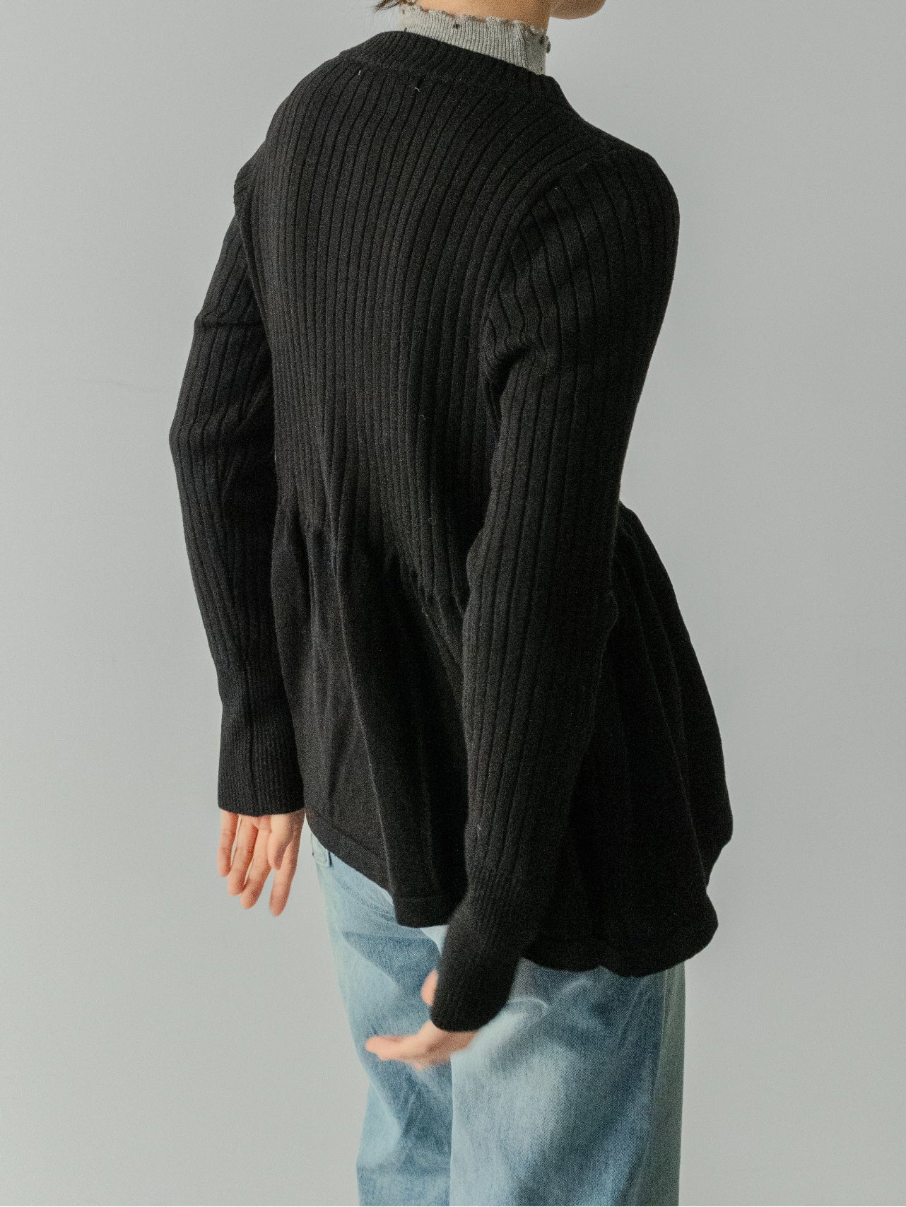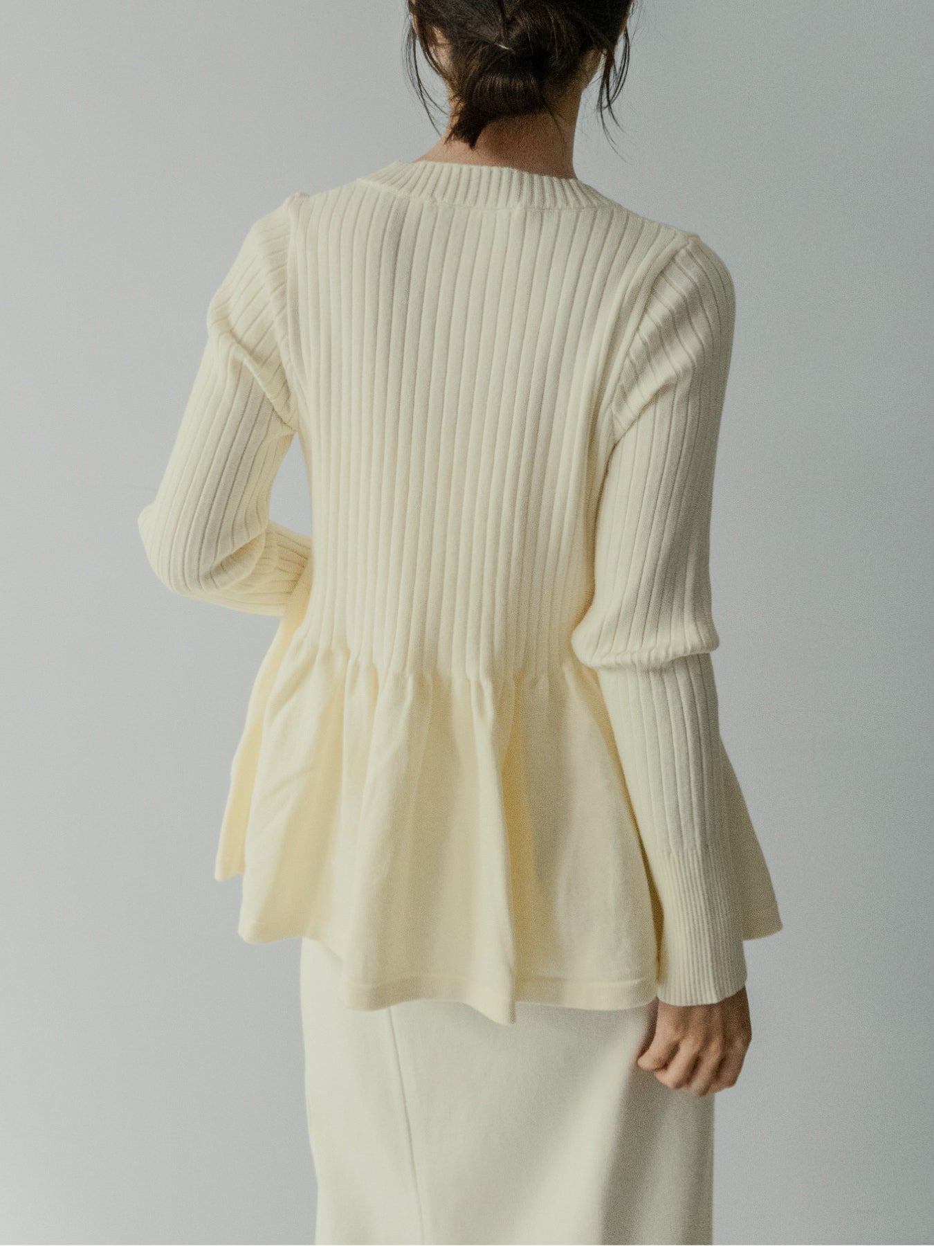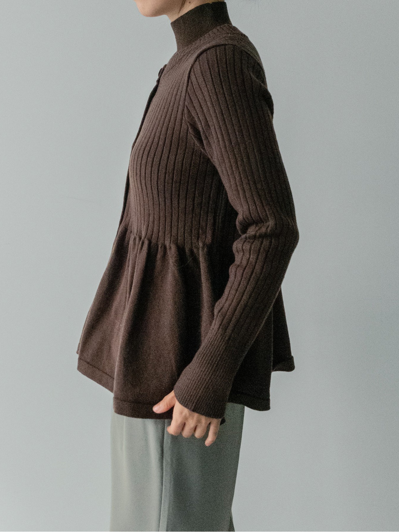 A cardigan with ruffles and a peplum that adds a touch of elegance and femininity.