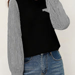 Striped shirt fabric is docked to the sleeves, adding a relaxed and light feel .
