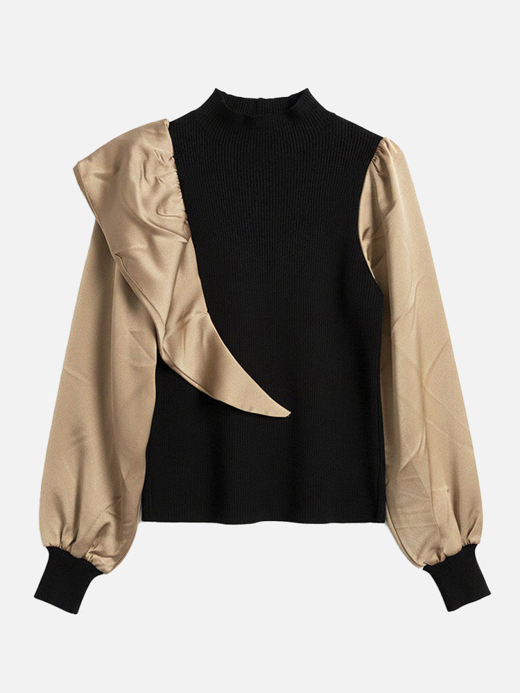 The two-tone ruffles and sleeves make this a very trendy piece.