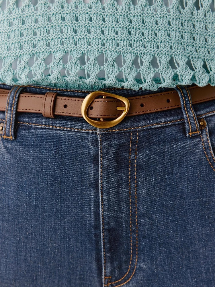 The buckle part has an irregular circle shape with a retro feel, making it a great accent for everyday outfits!