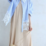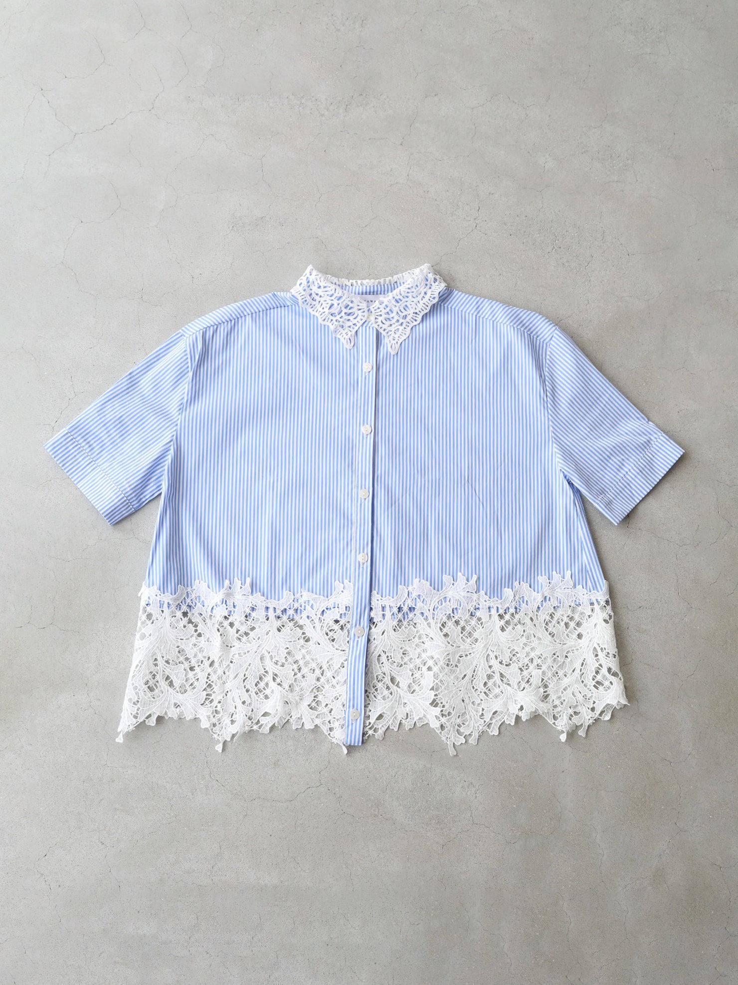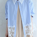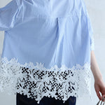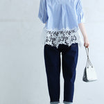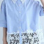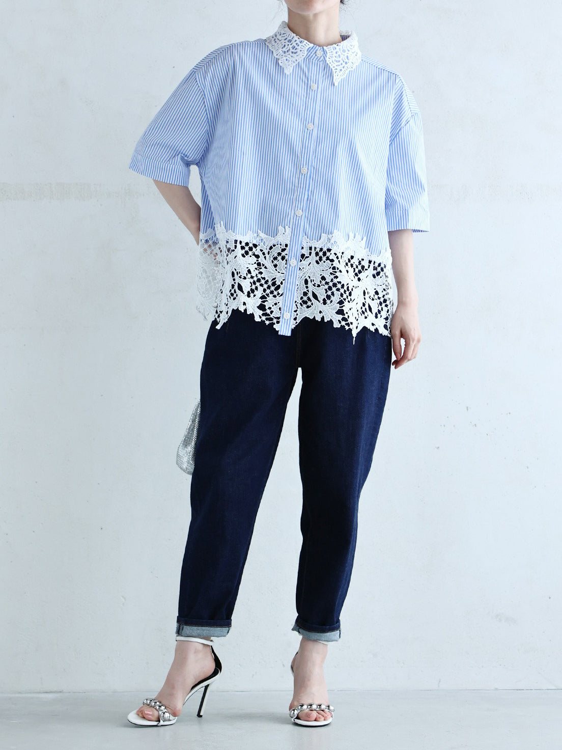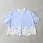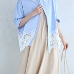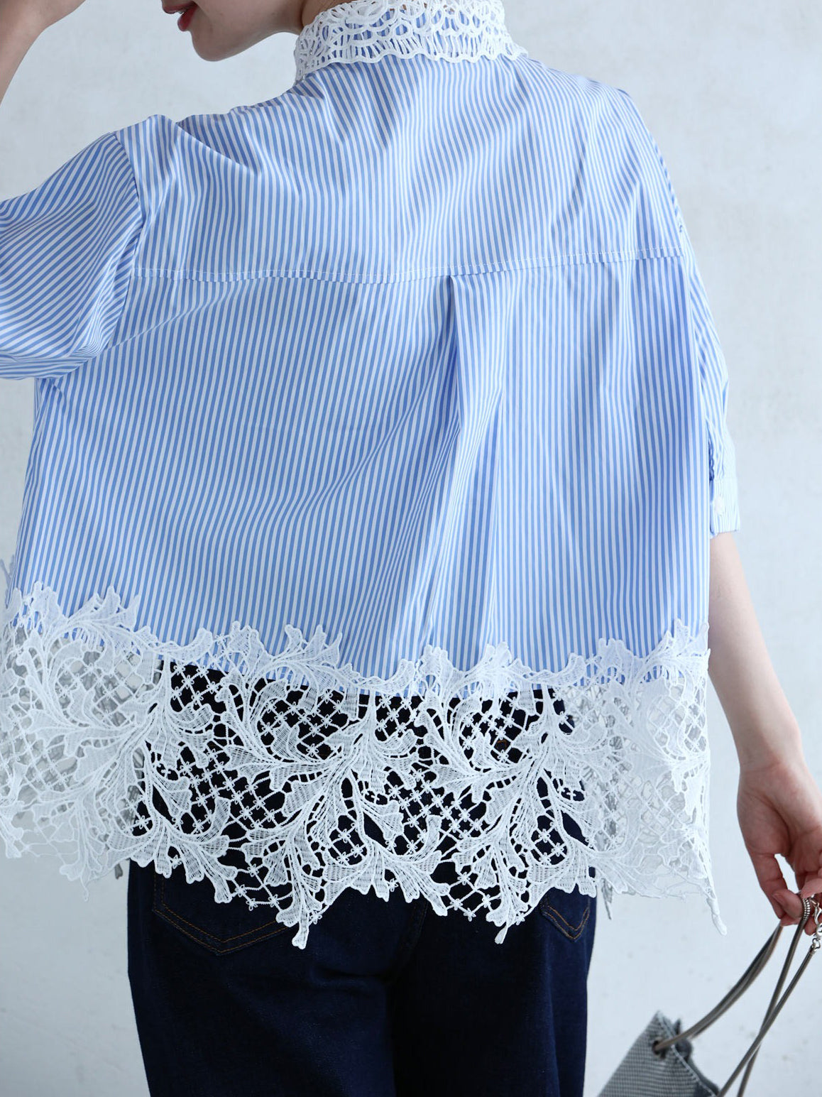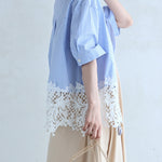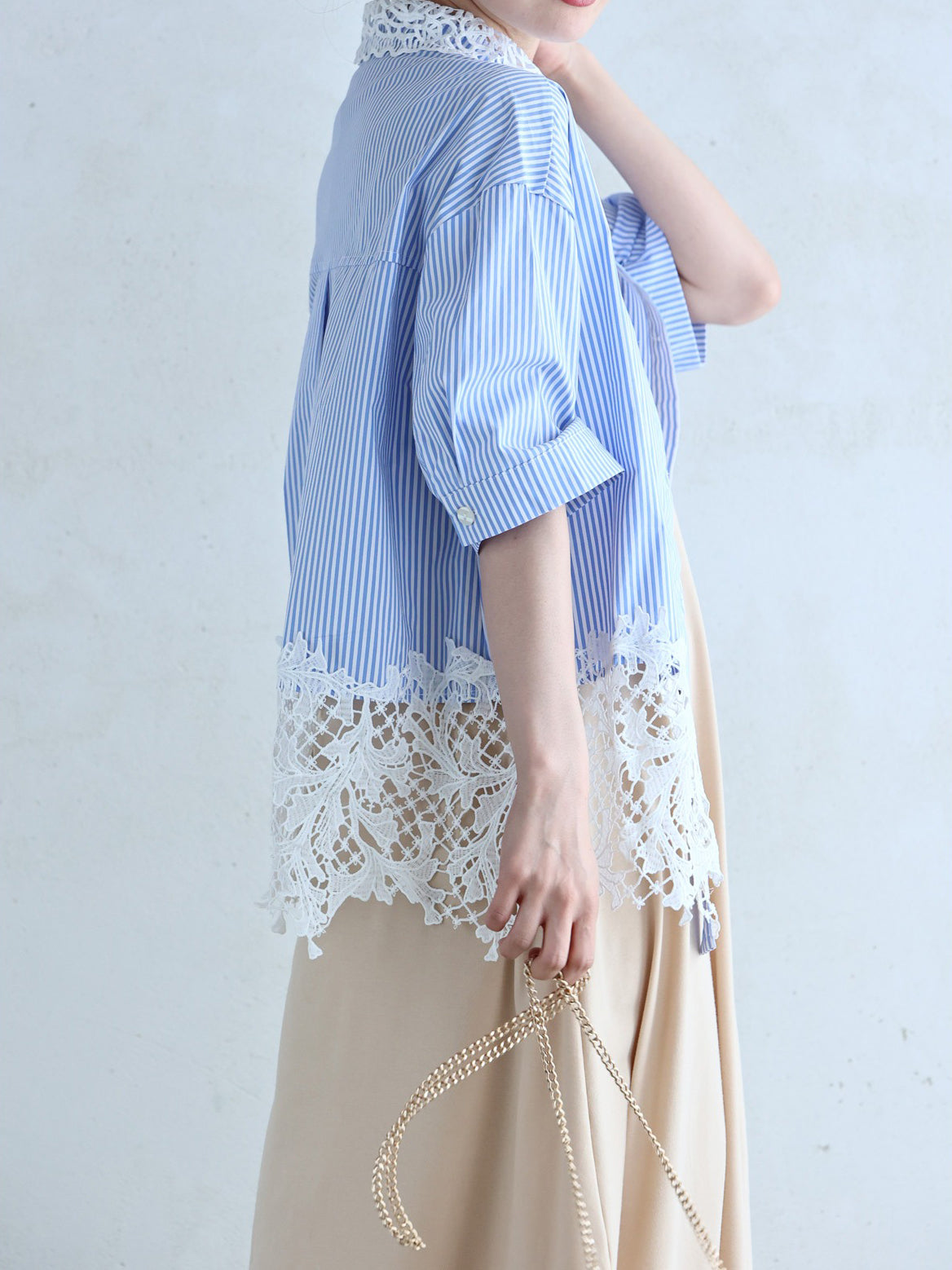 ☆ The striped pattern and lace collar and hem give it a mature and cute look without being too sweet, and the transparency of the lace gives it a cool feel, making it perfect for the hot season .