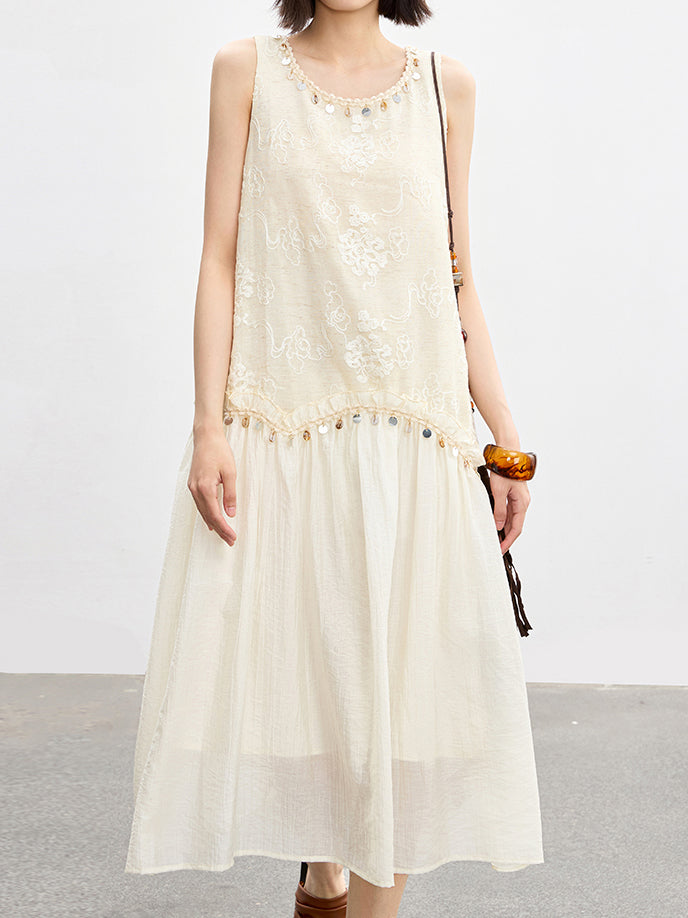 Shell bead lace docking long dress, 2 colors