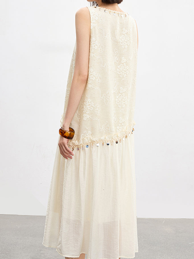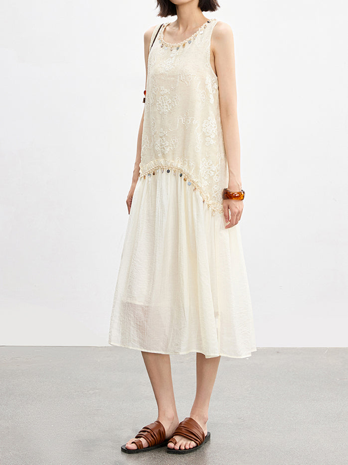 Flower lace long tank dress
