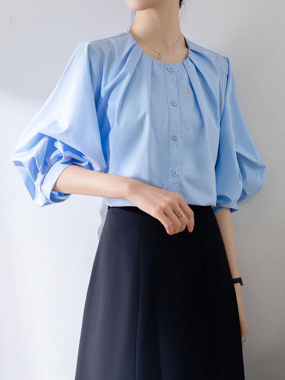 Rounded short sleeve sweatshirt cut and sew + diamond pressed easy skirt SET 2 colors