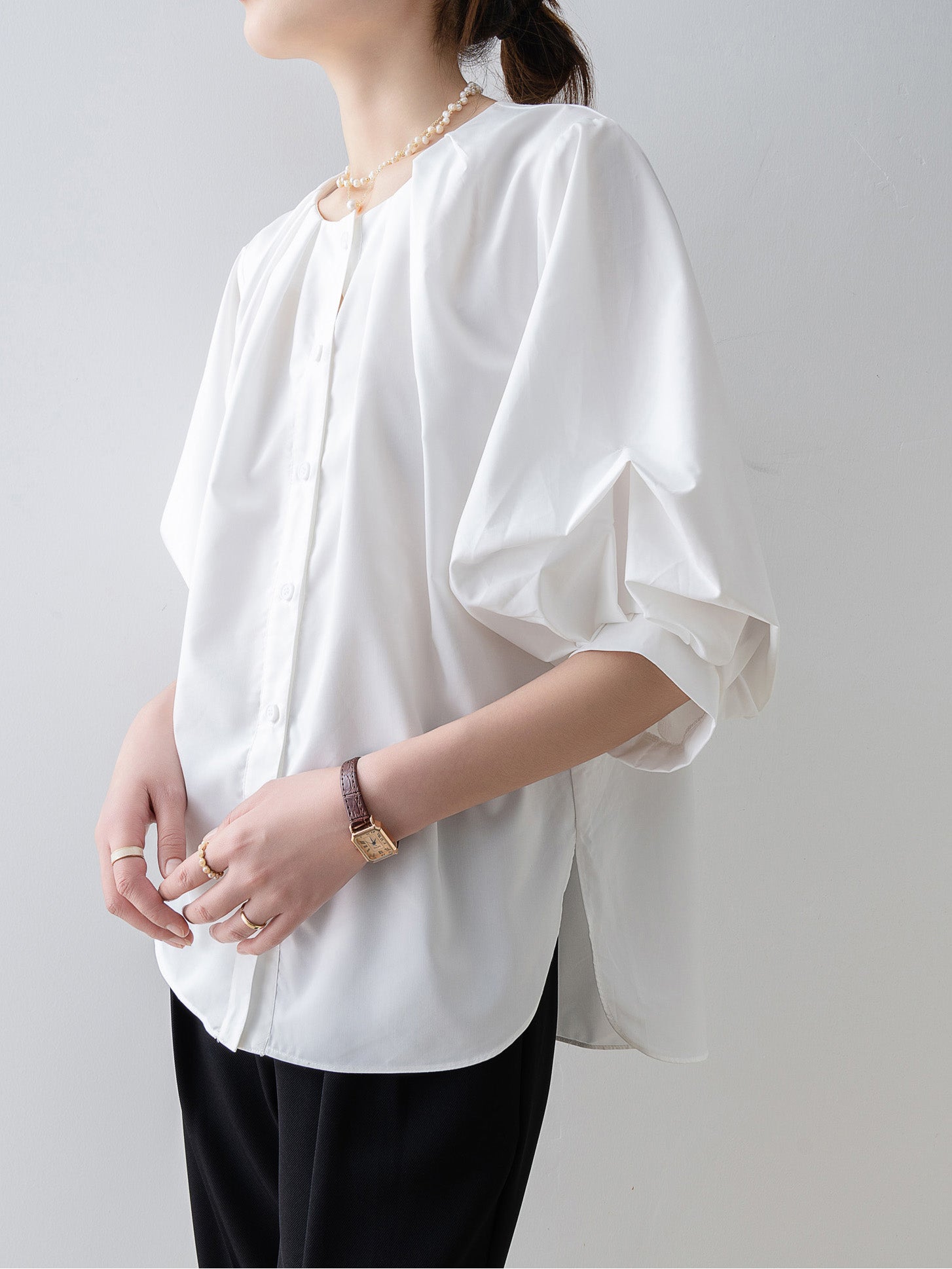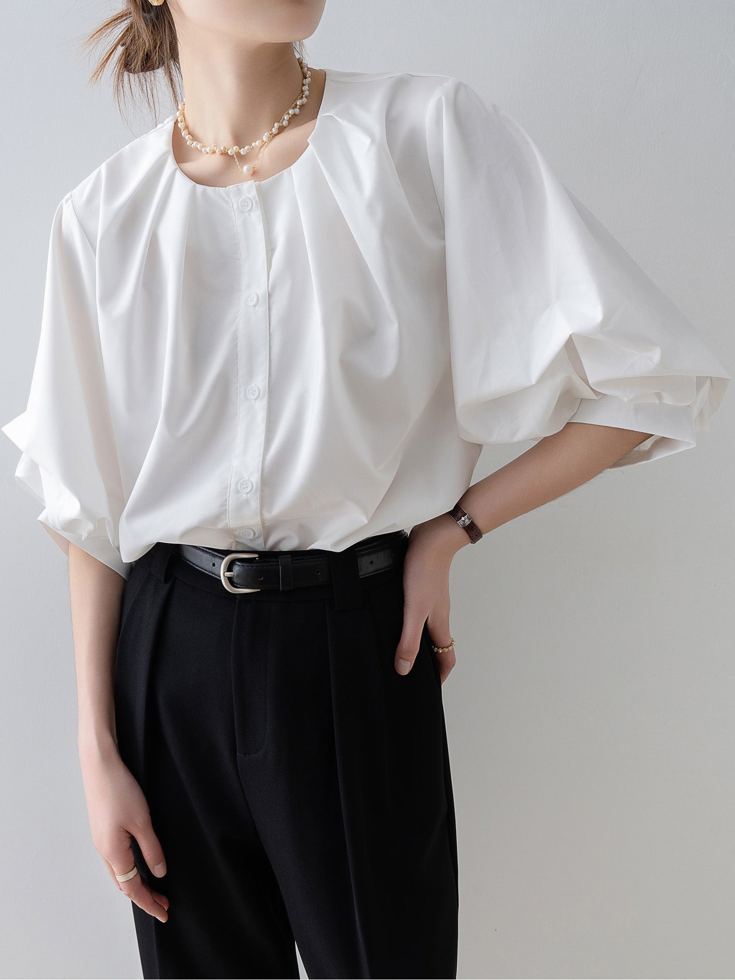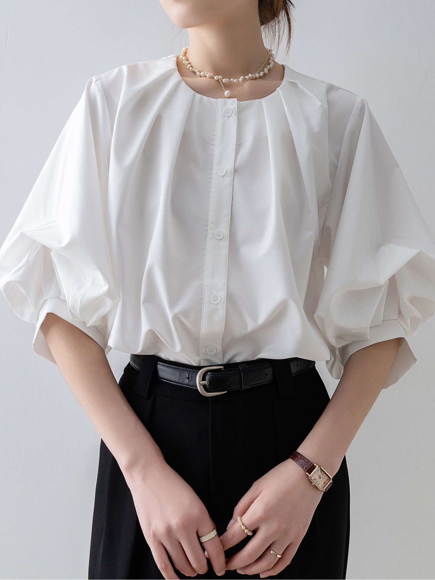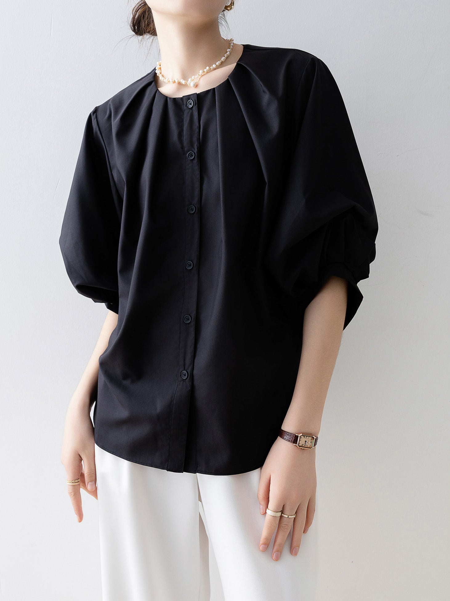 Tucked-in volume blouse in 3 colors