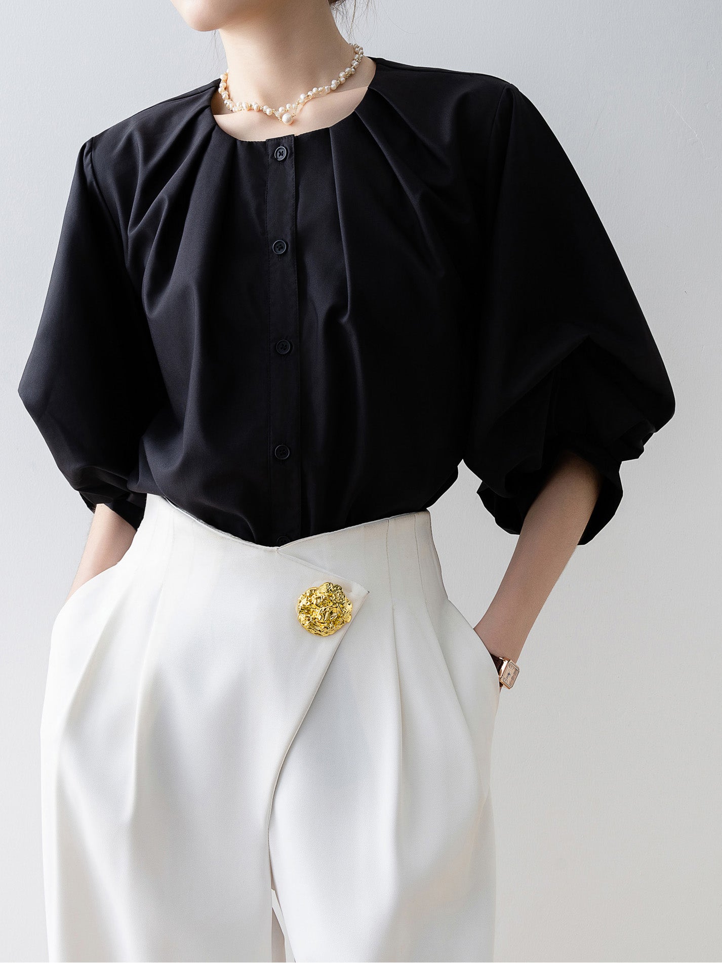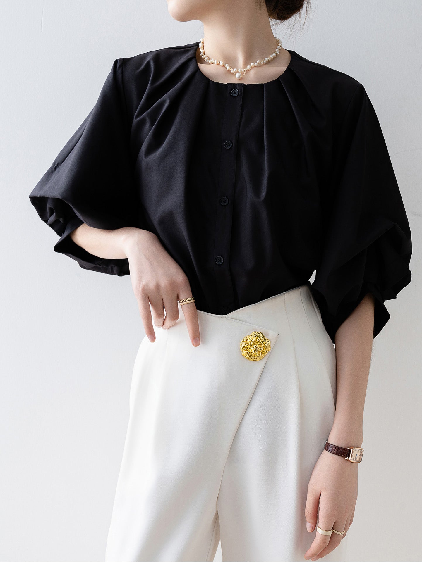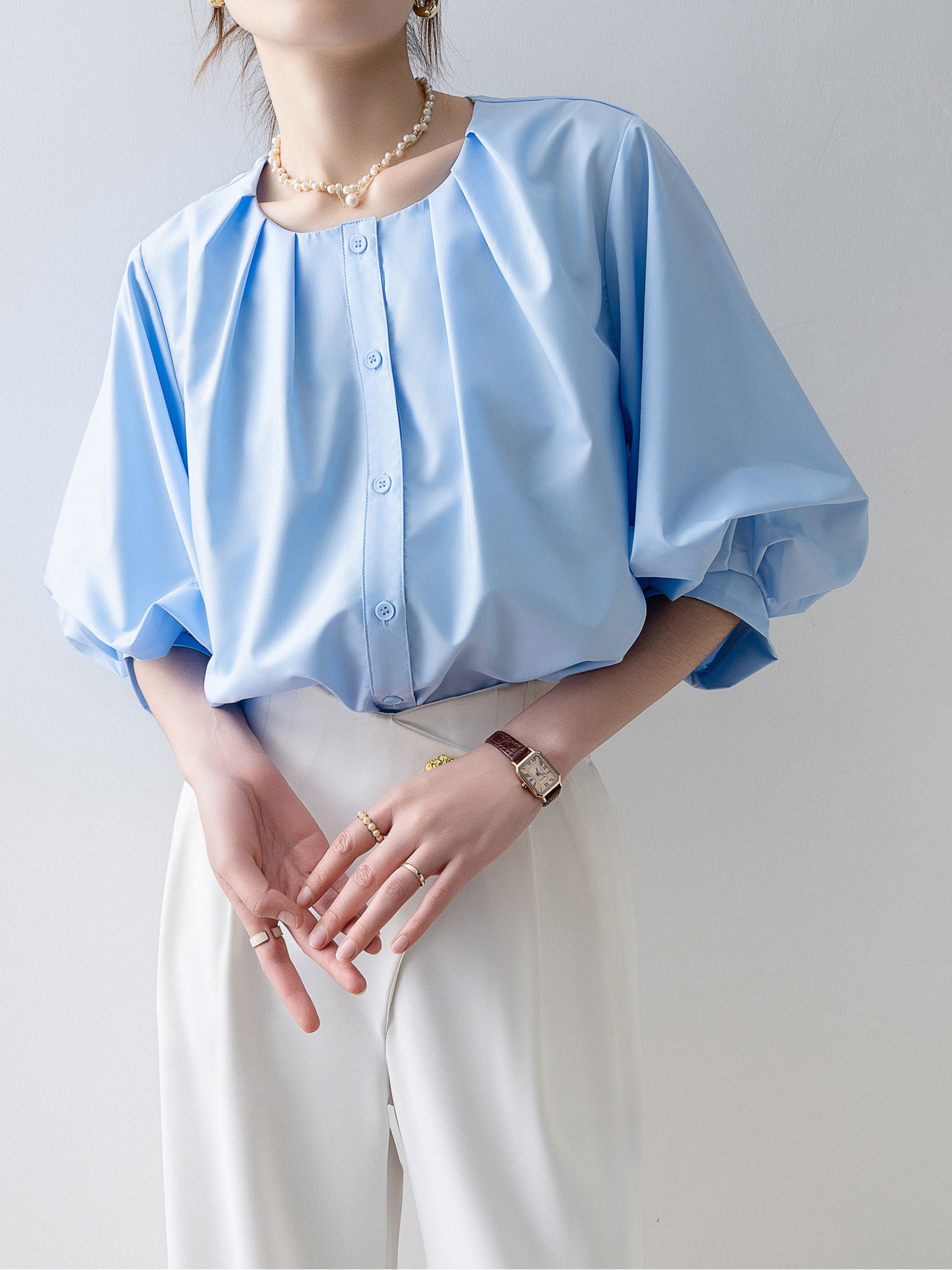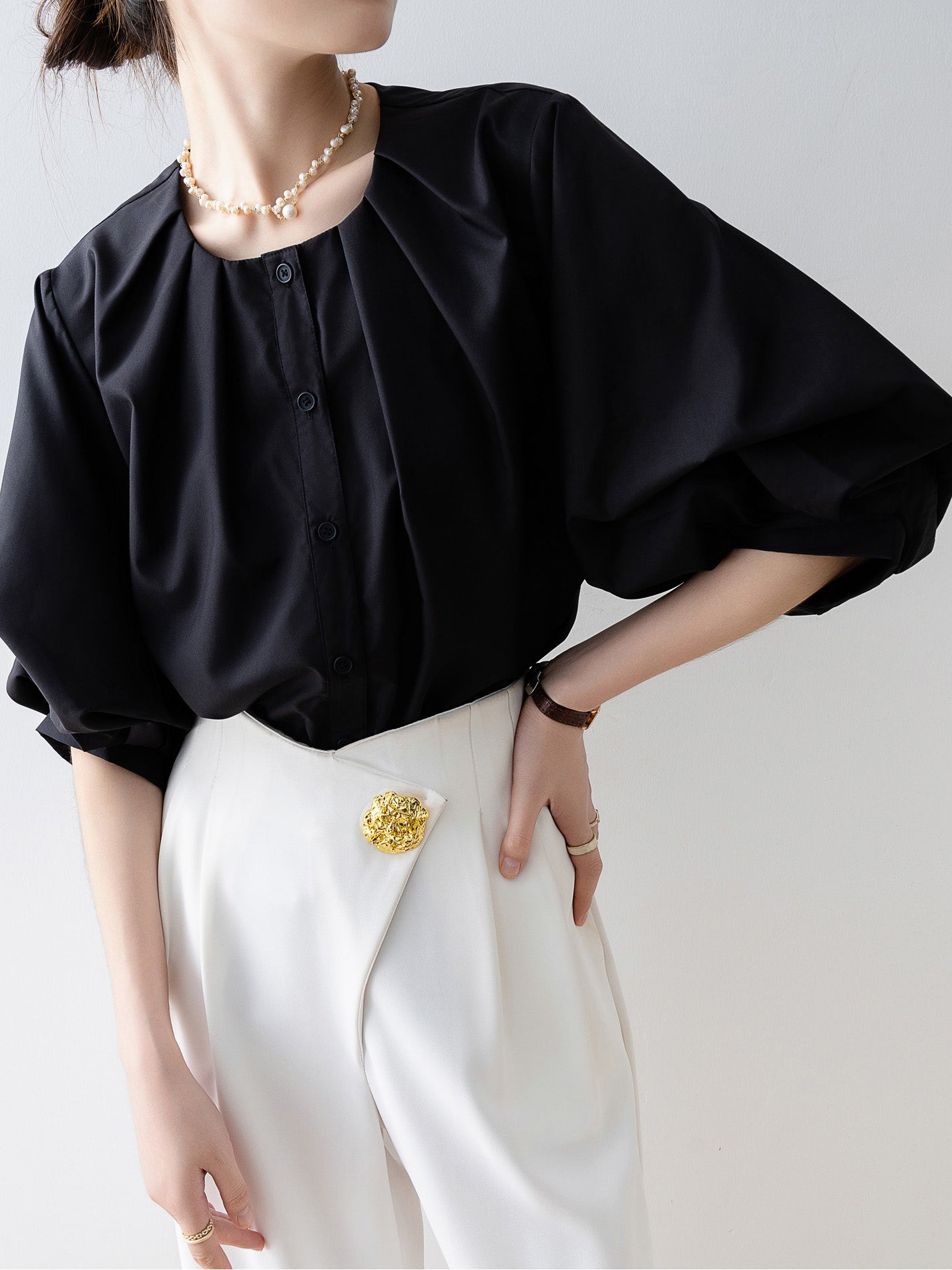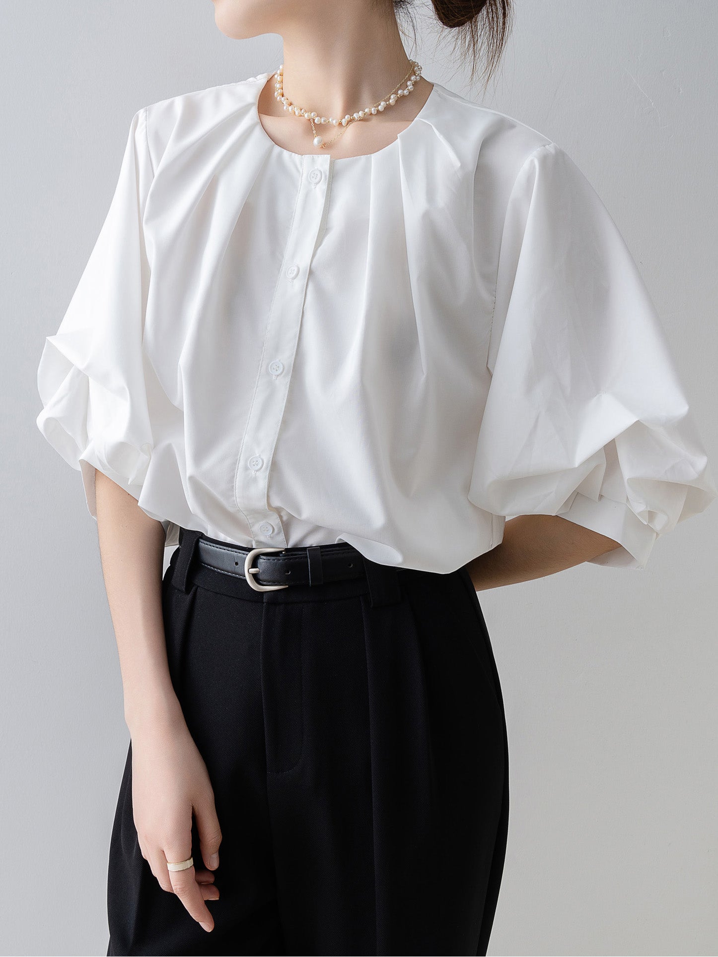 Tucked-in volume blouse in 3 colors