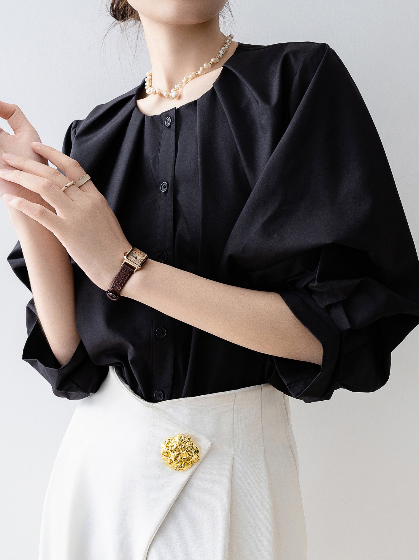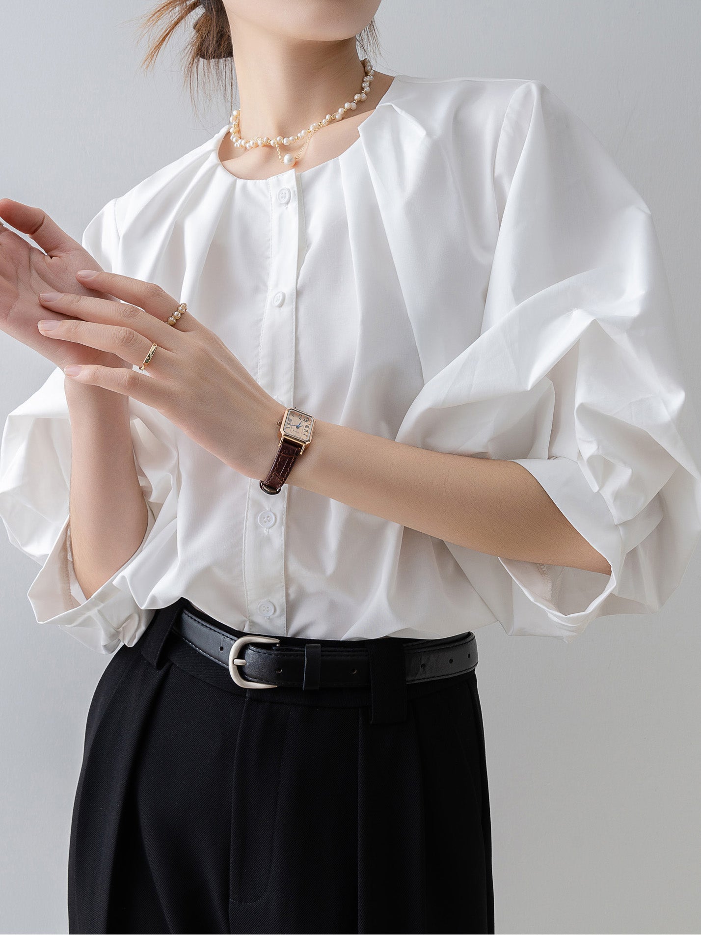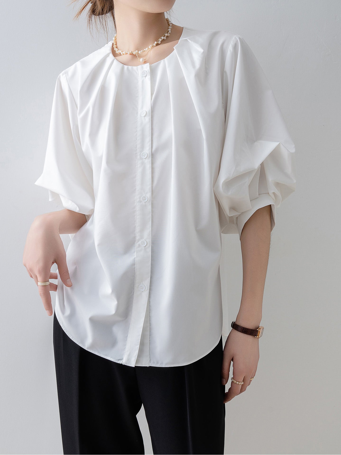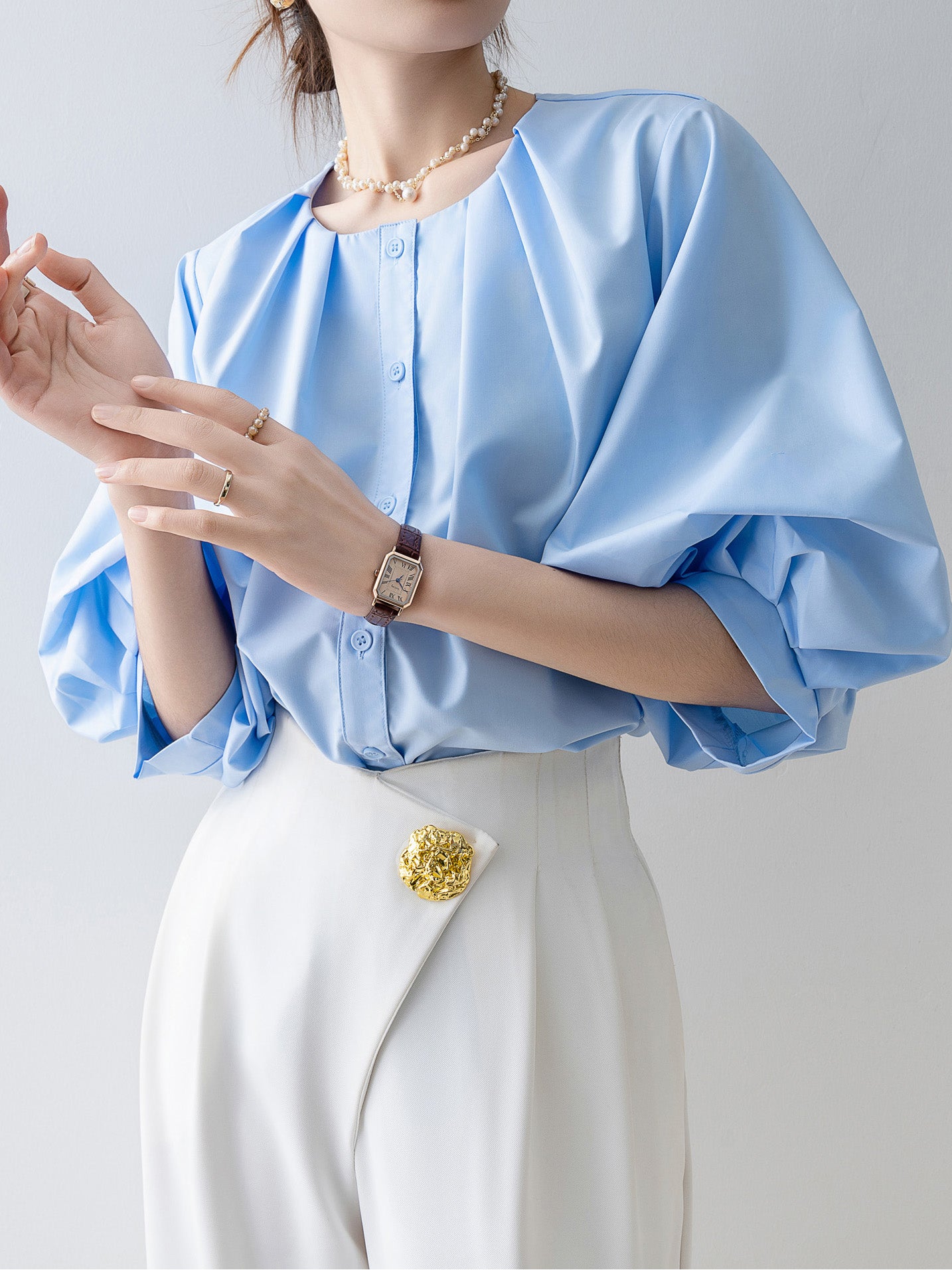 Tucked-in volume blouse in 3 colors