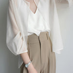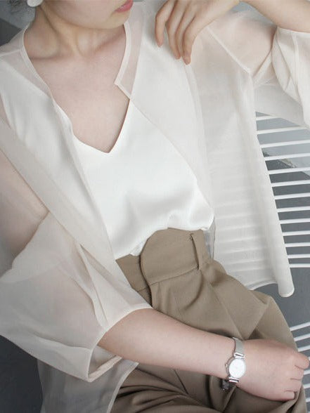 [A sheer blouse for adults that can also be worn as a light jacket]