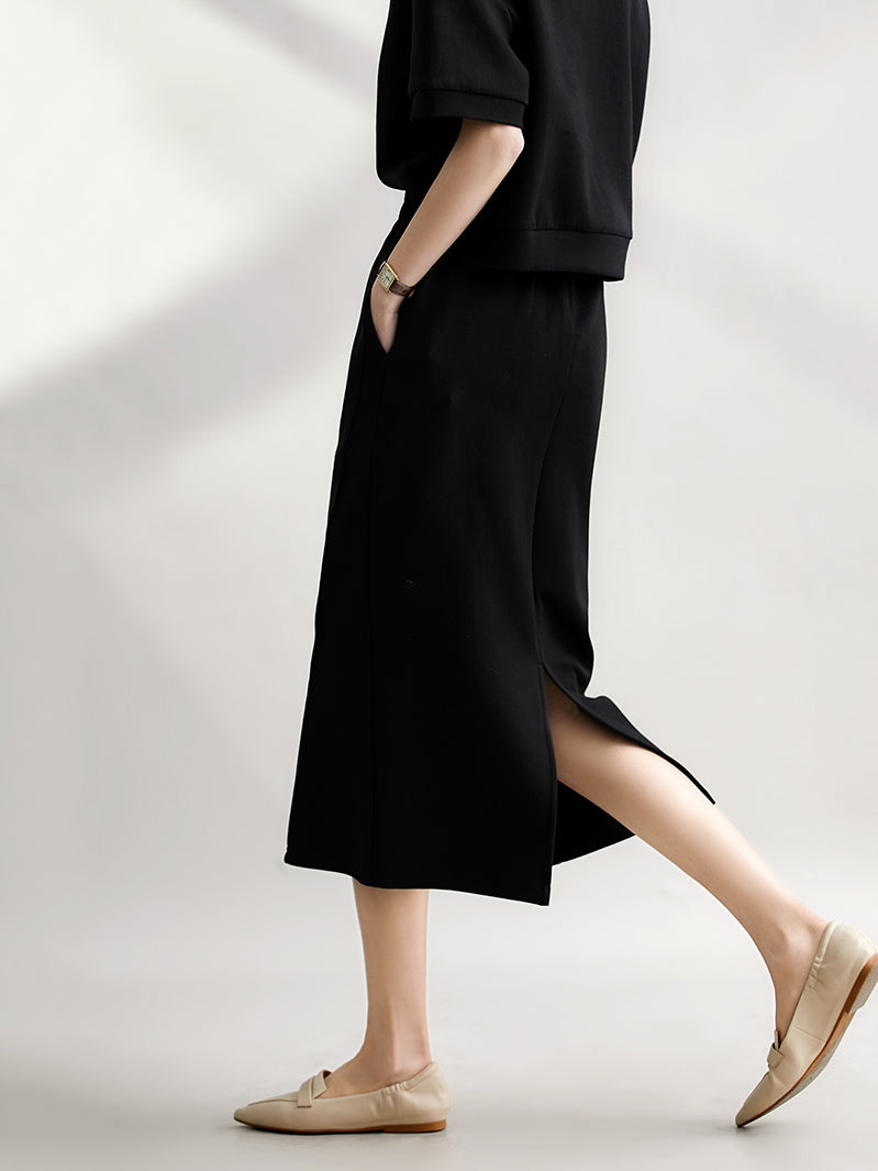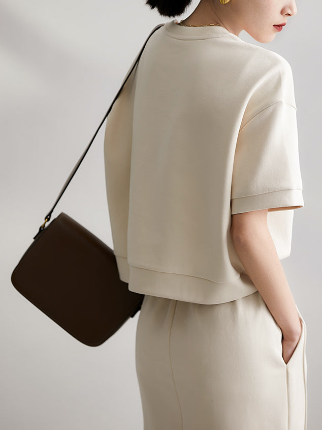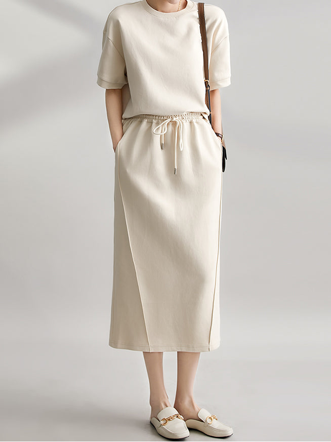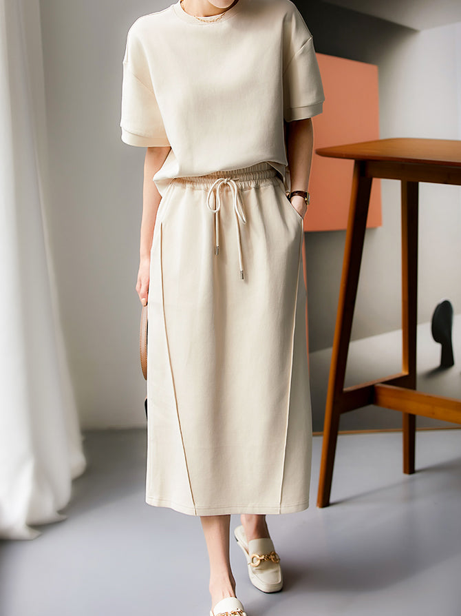 This short-sleeved T-shirt and skirt set is perfect for everyday wear.