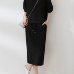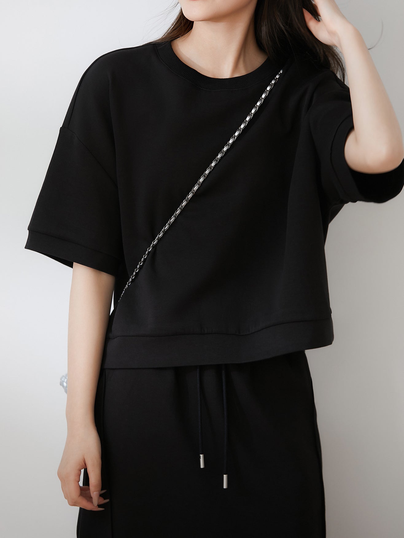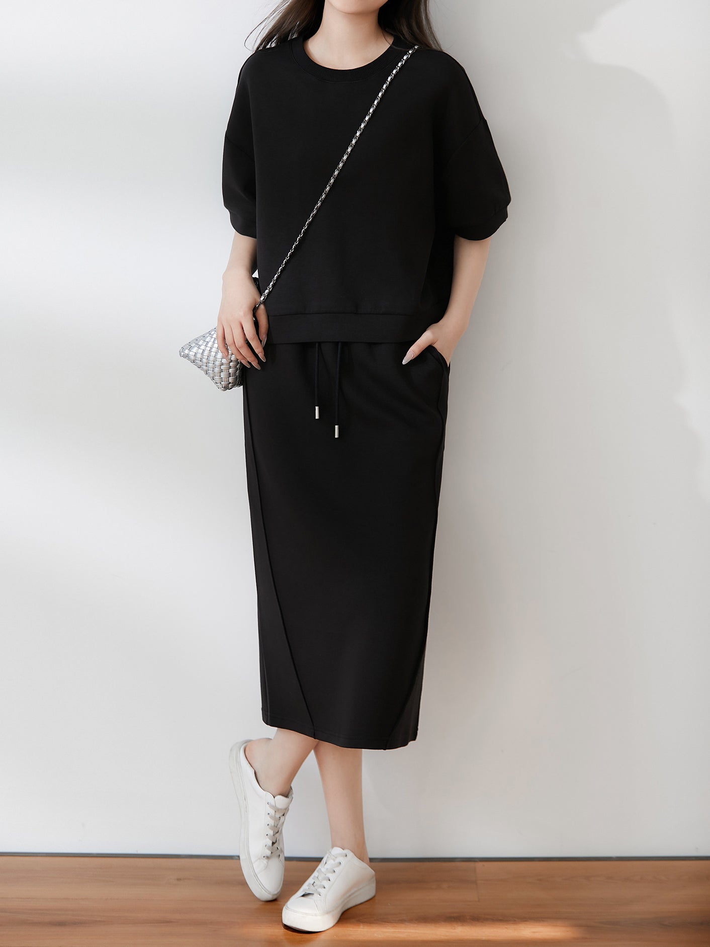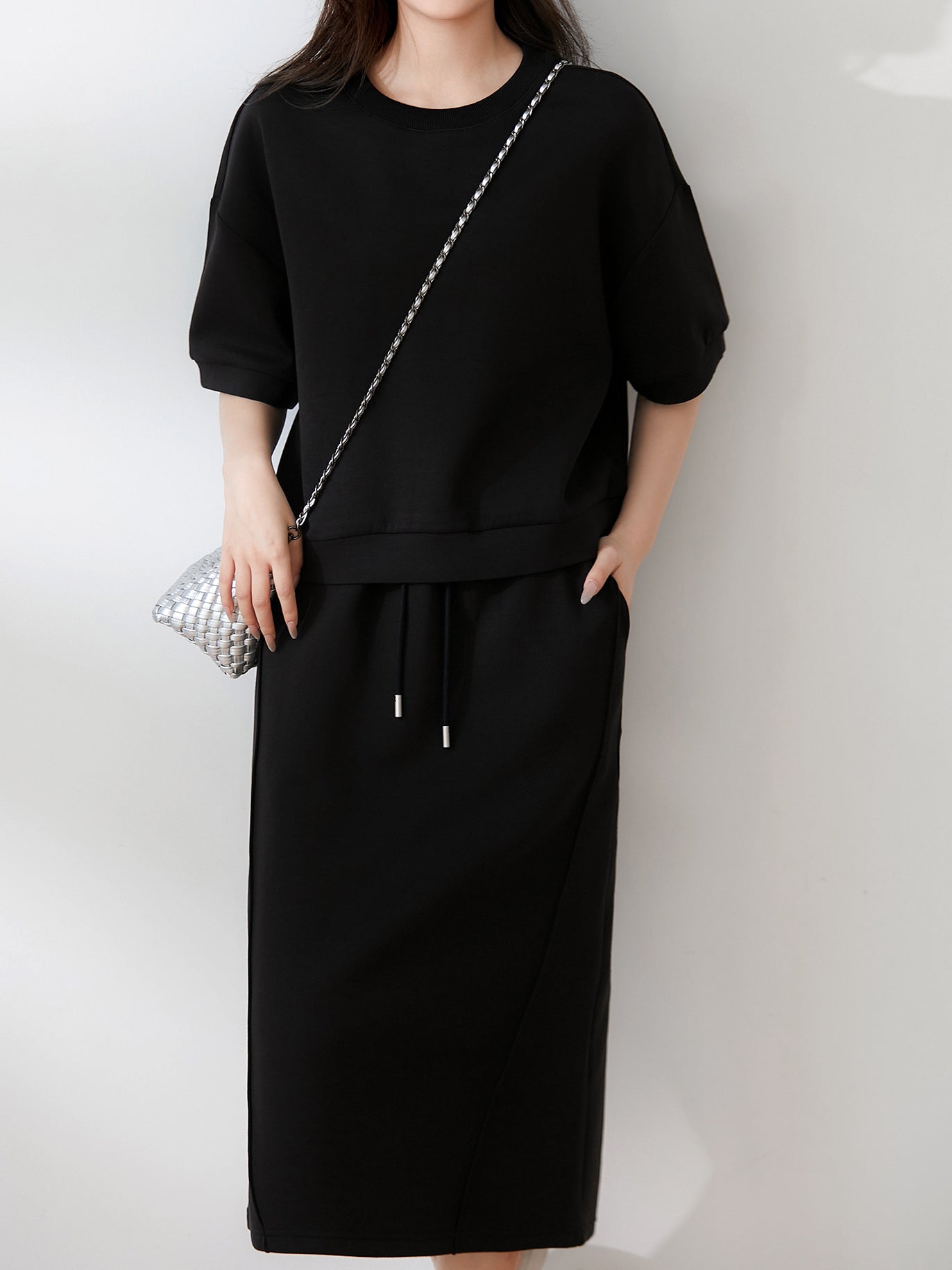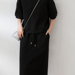 Rounded short sleeve sweatshirt cut and sew + diamond pressed easy skirt SET 2 colors