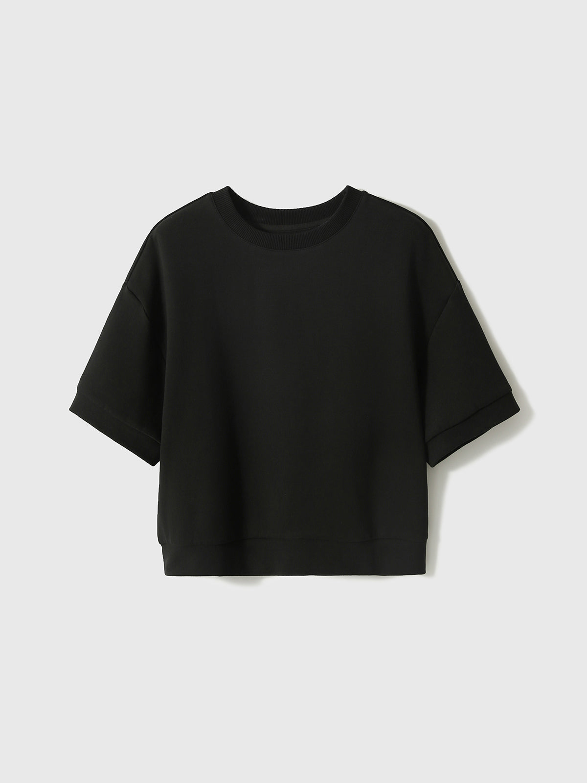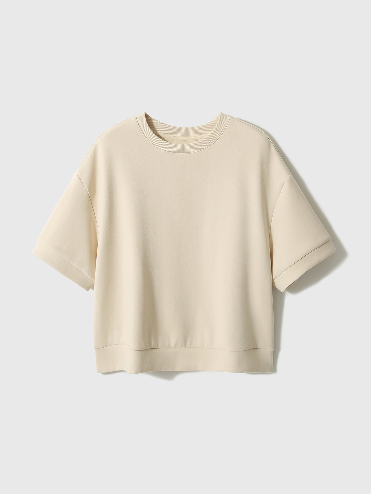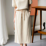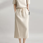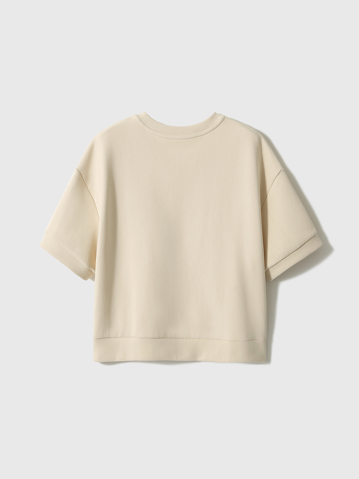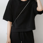Rounded short sleeve sweatshirt cut and sew + diamond pressed easy skirt SET 2 colors