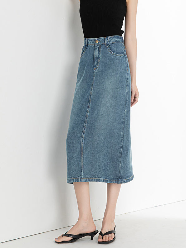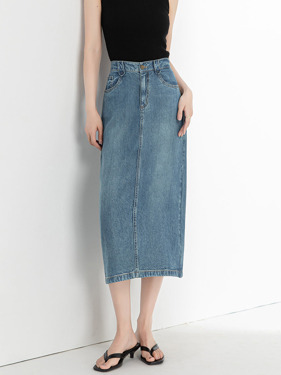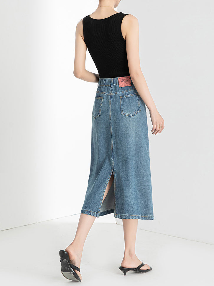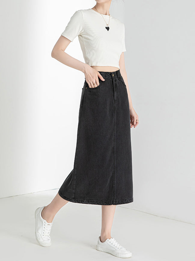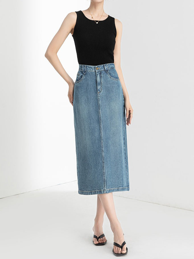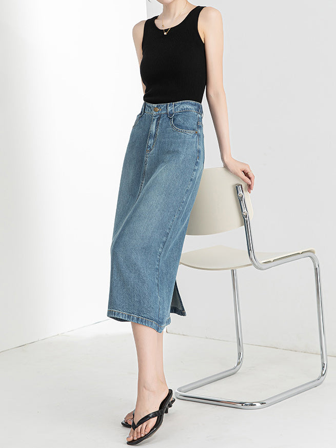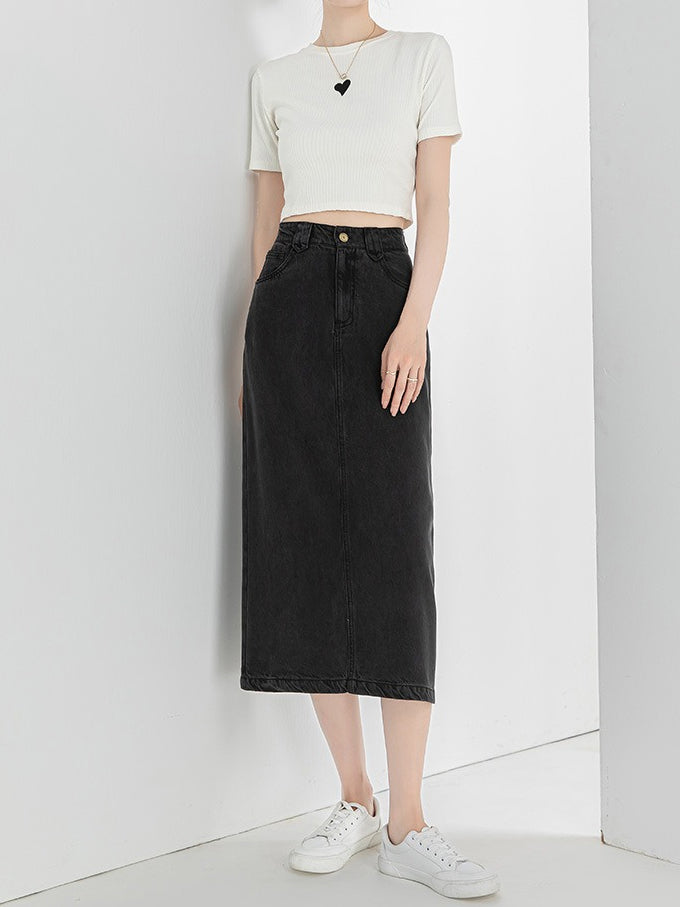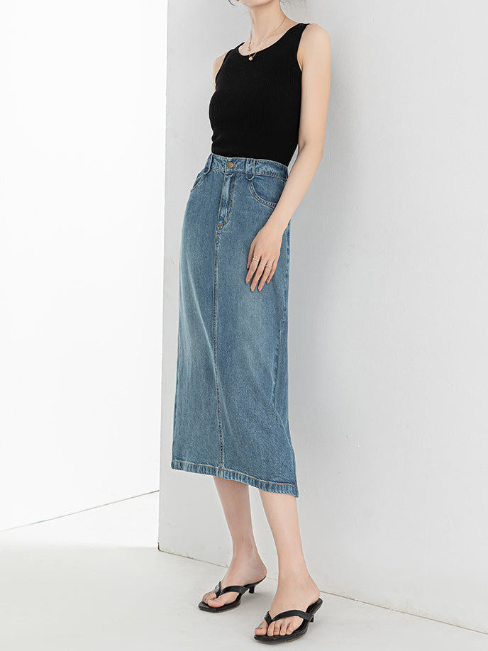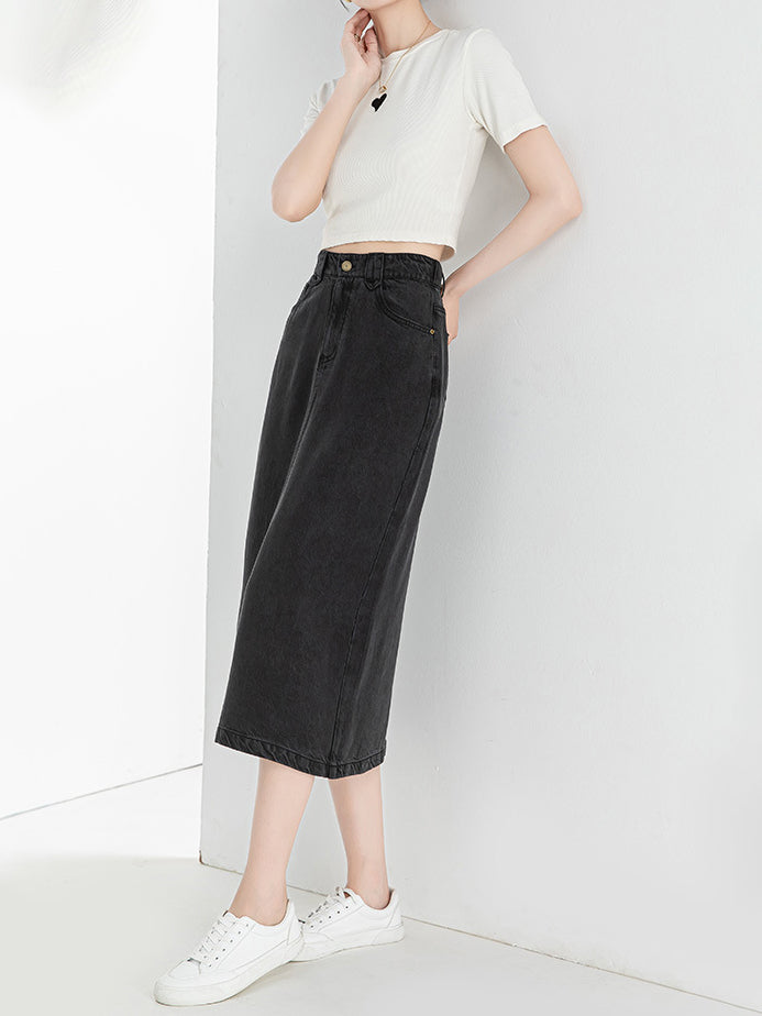 Denim Narrow Skirt, available in 2 colors