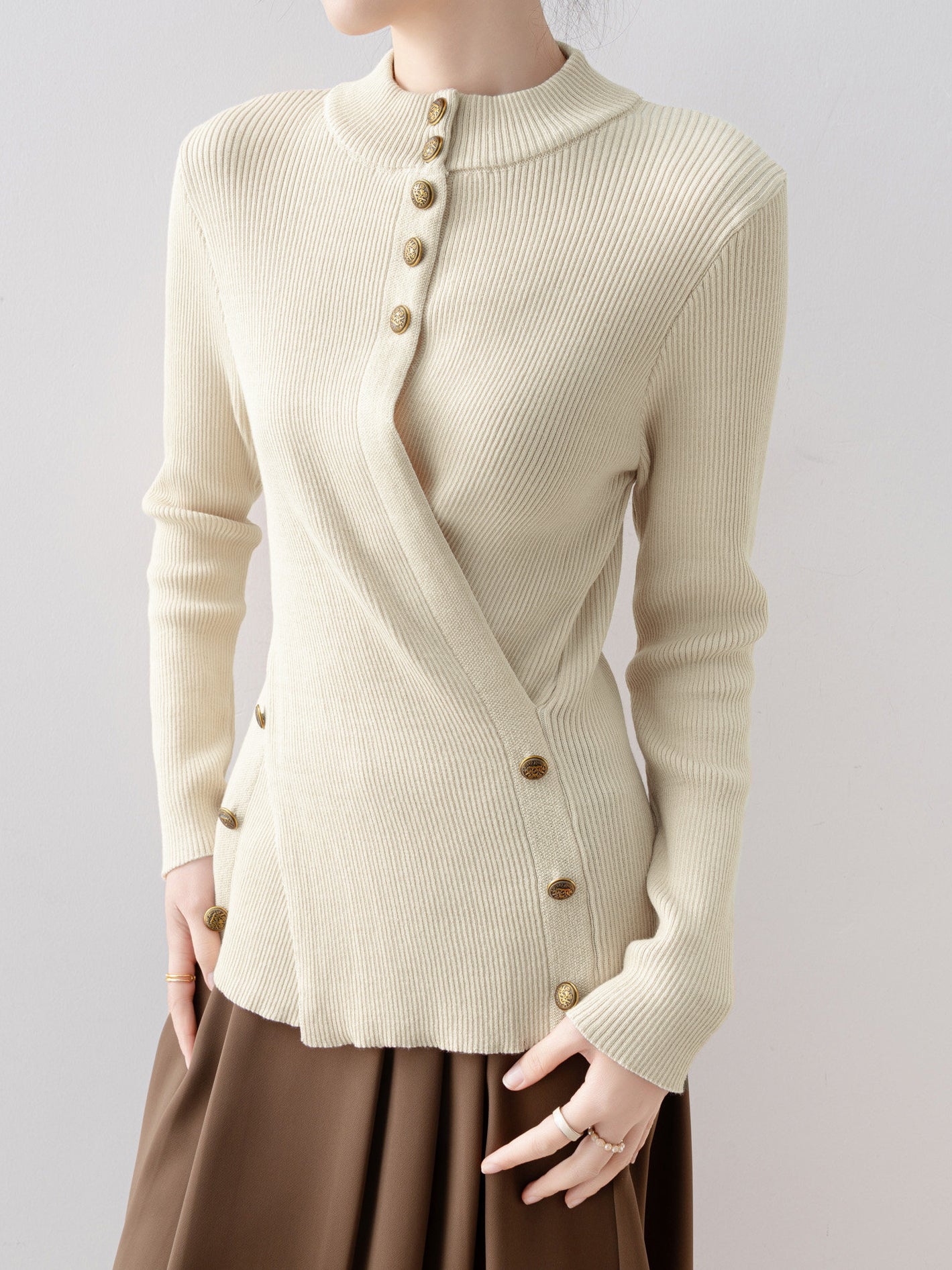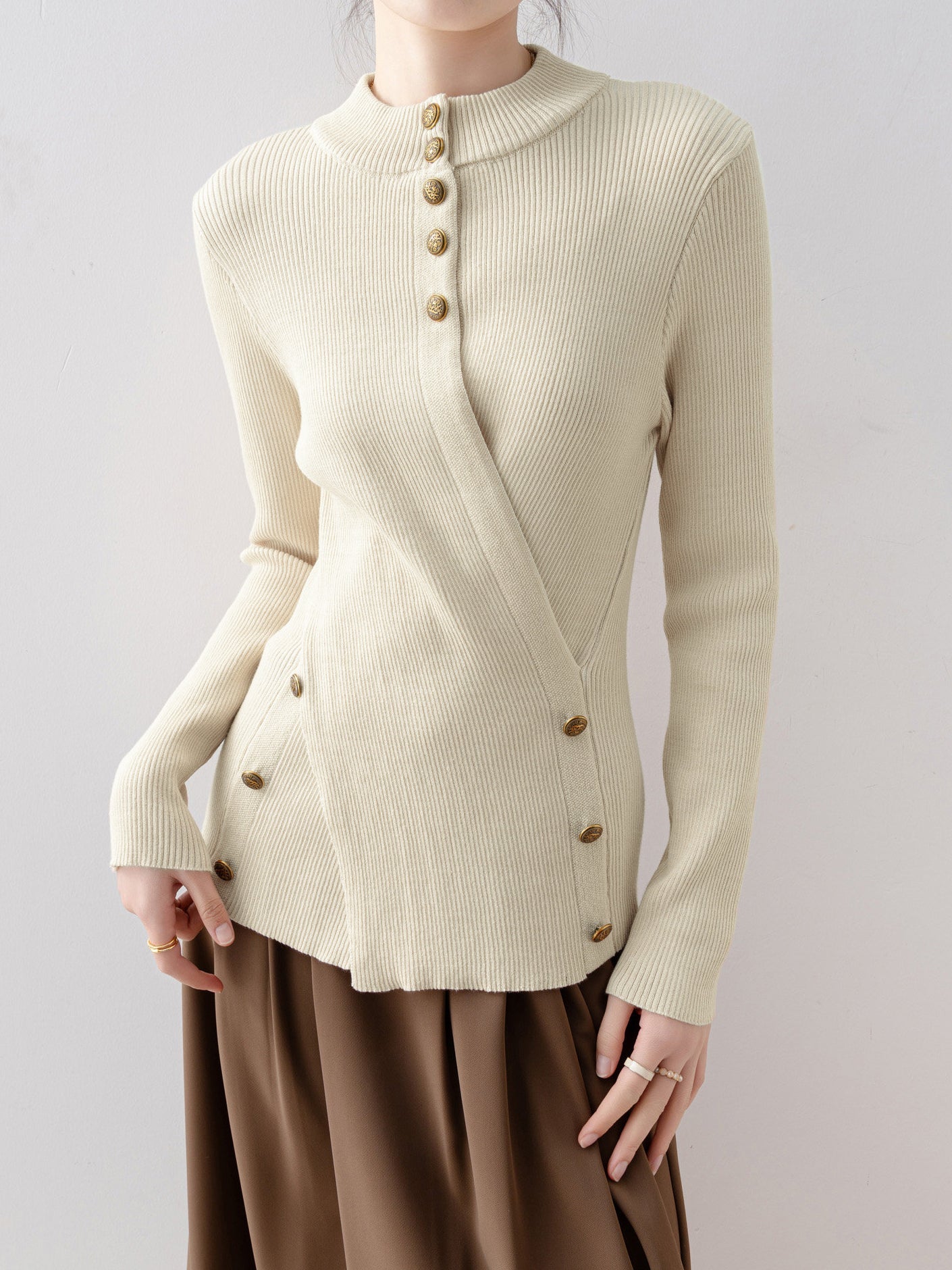 Cross button design knitwear (3 colors)
